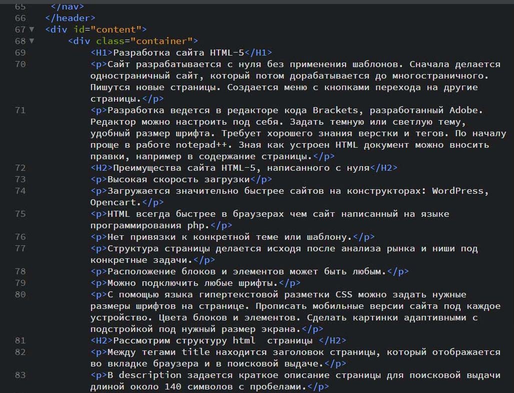 Между тегами H2 прописывается подзаголовок второго уровня.