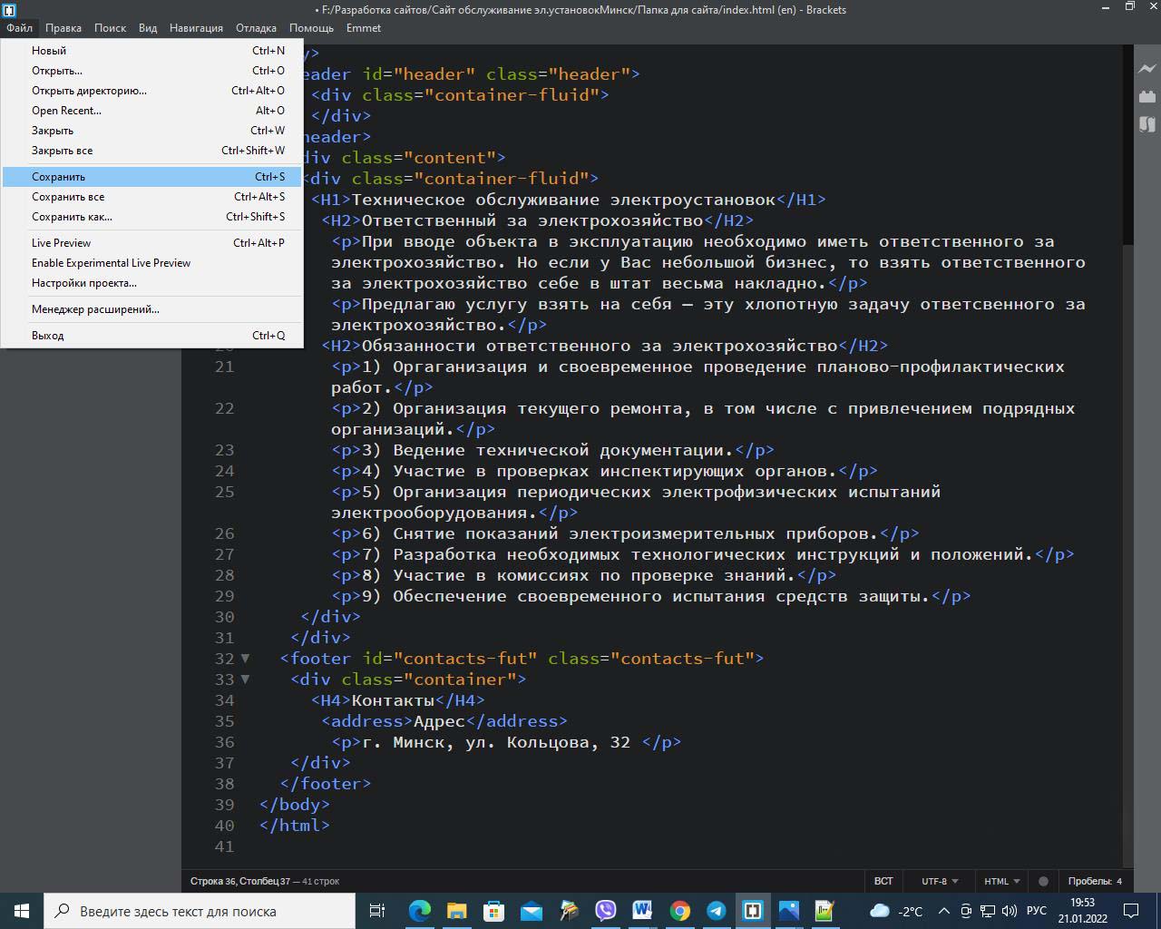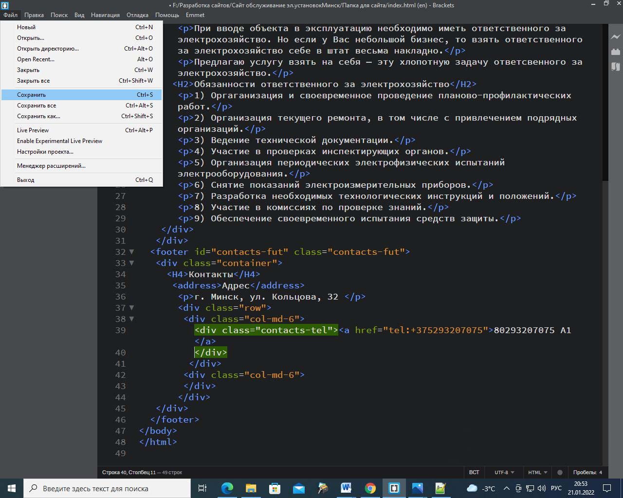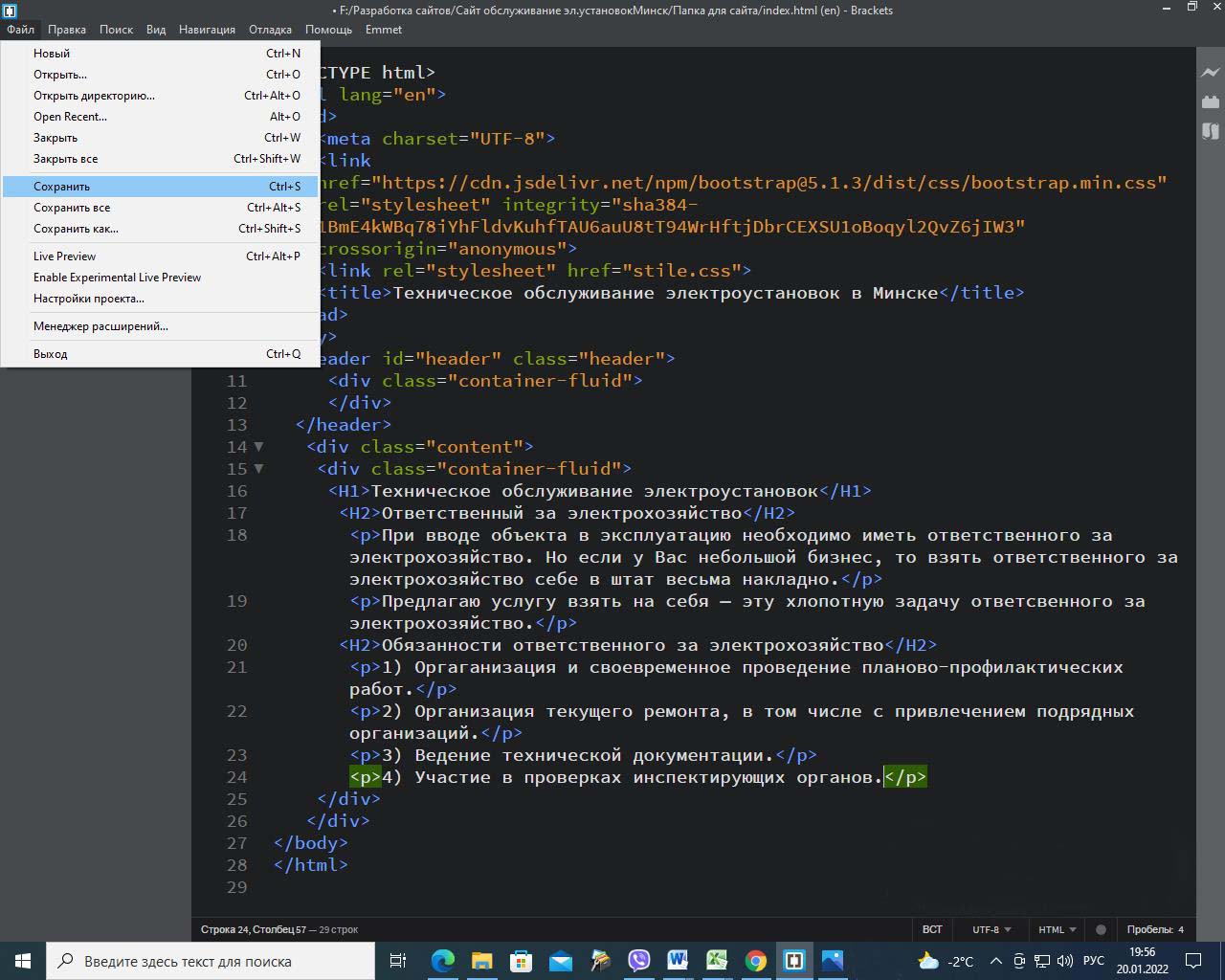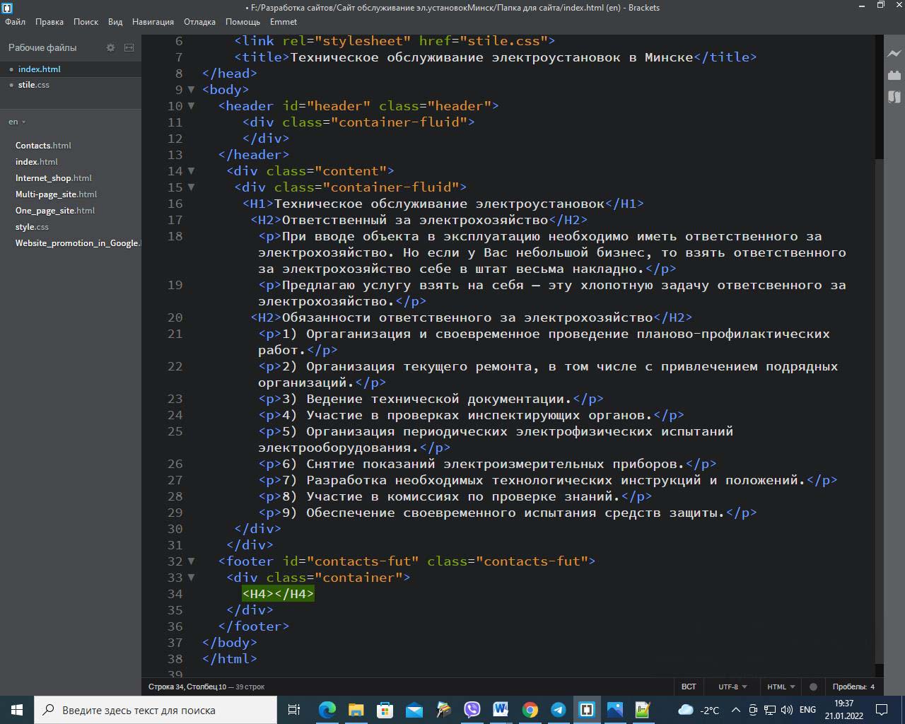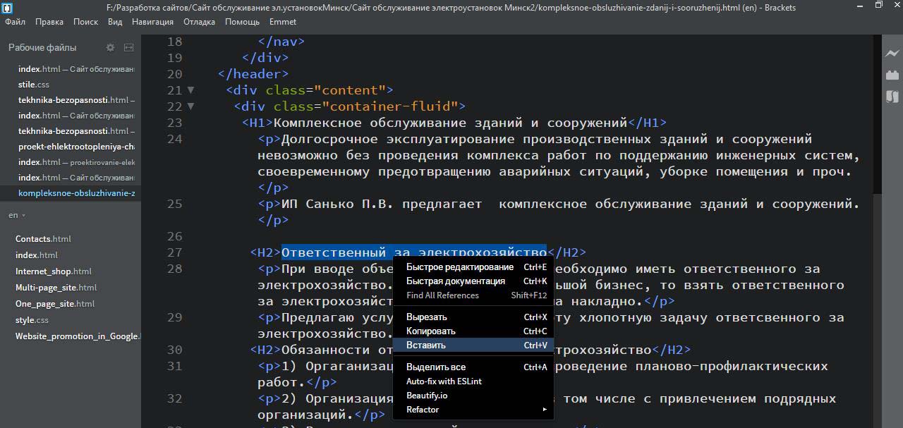 В файле index.html между тегами H2 прописываем подзаголовок "Ответственный за электрохозяйство". Жмем сохранить.