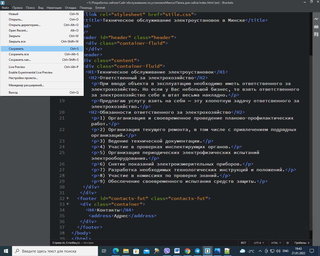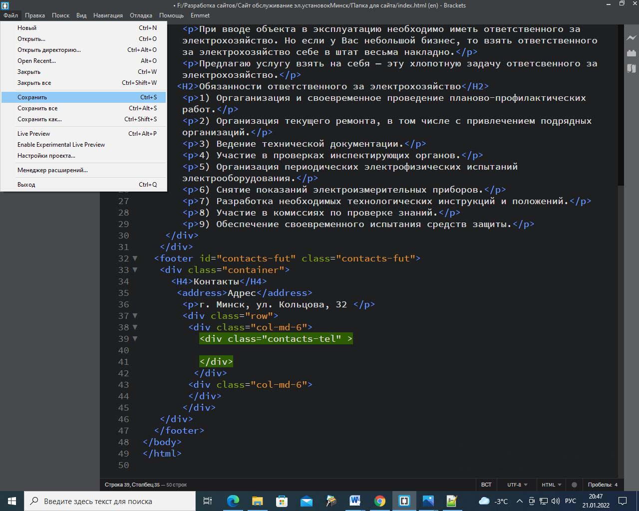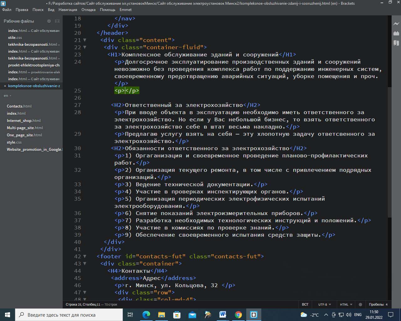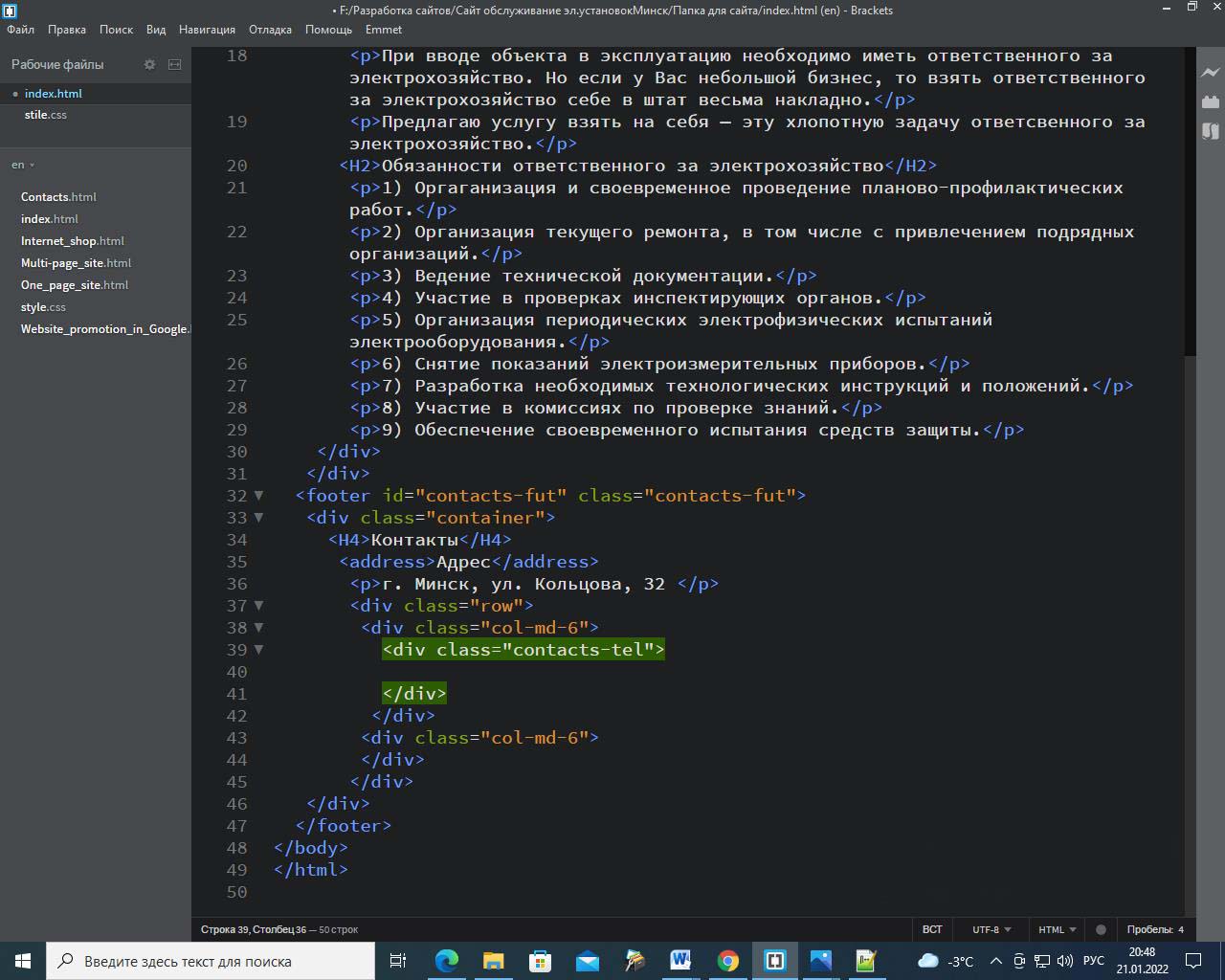 В файле index.html между тегами H2 прописываем подзаголовок "Ответственный за электрохозяйство". Жмем сохранить.