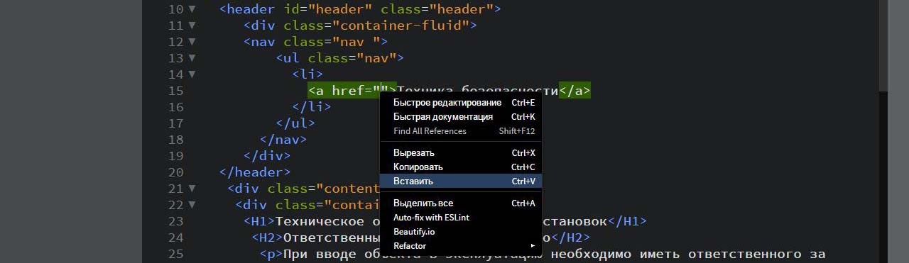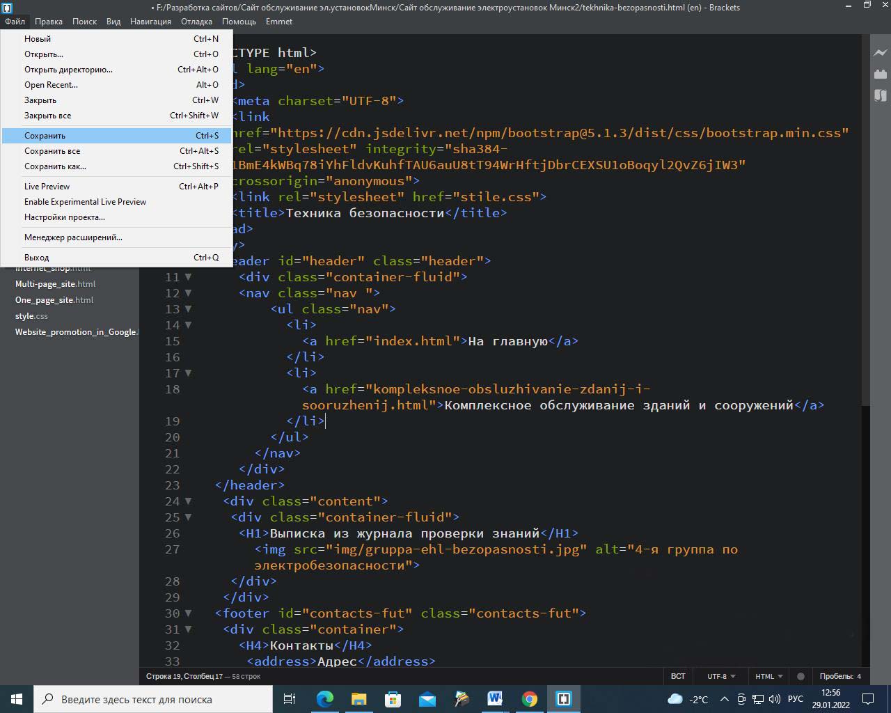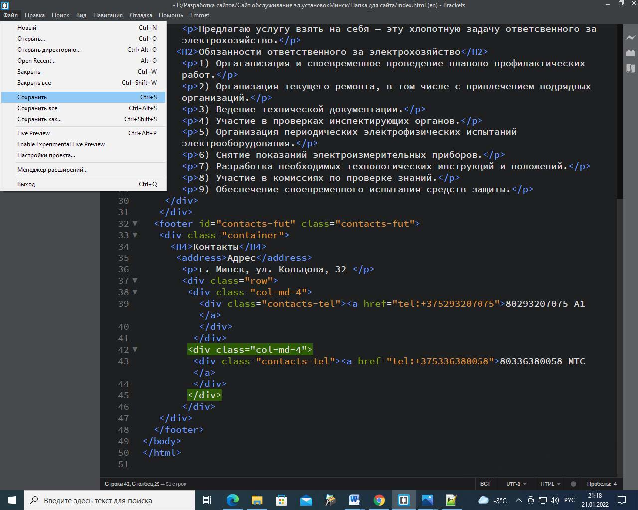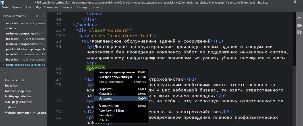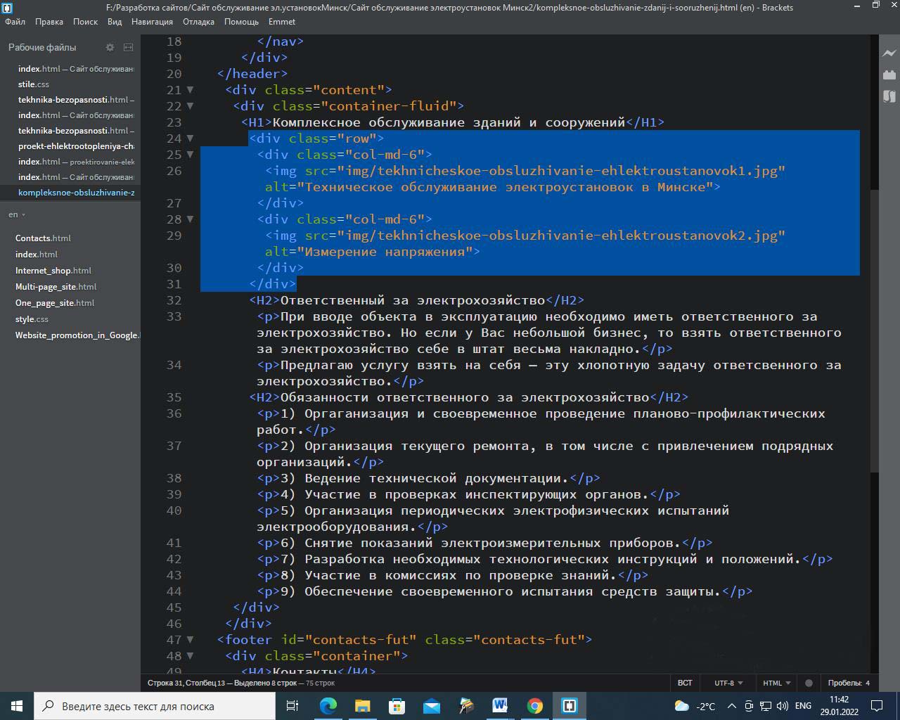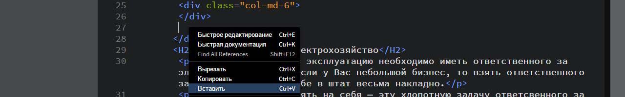 В файле index.html между тегами H2 прописываем подзаголовок "Ответственный за электрохозяйство". Жмем сохранить.