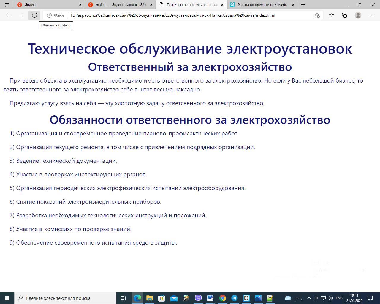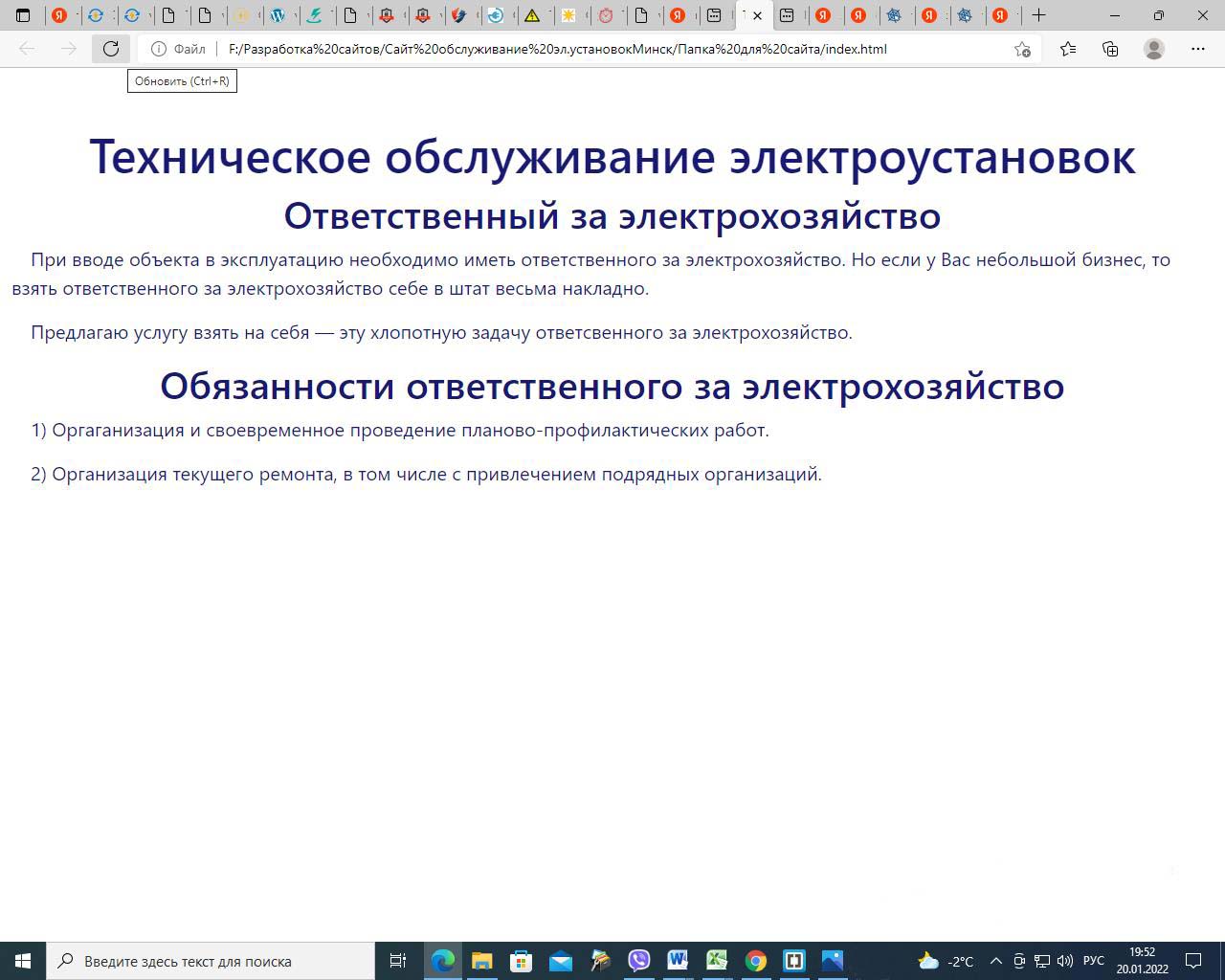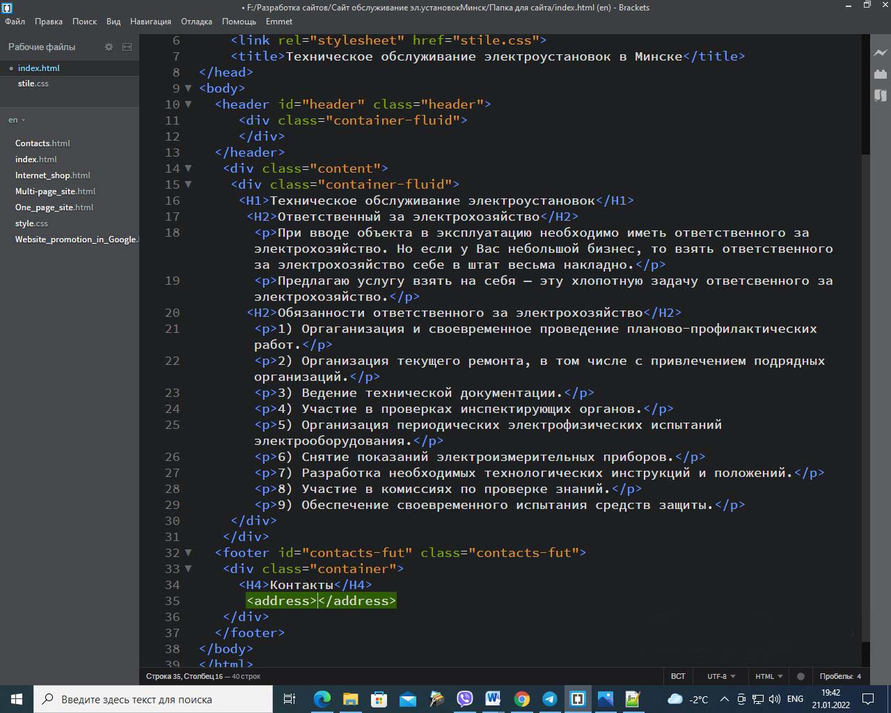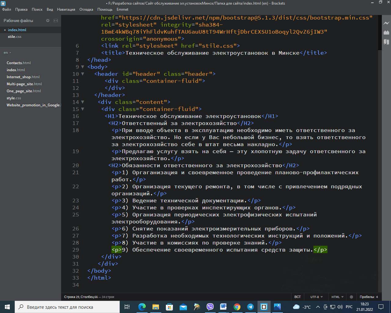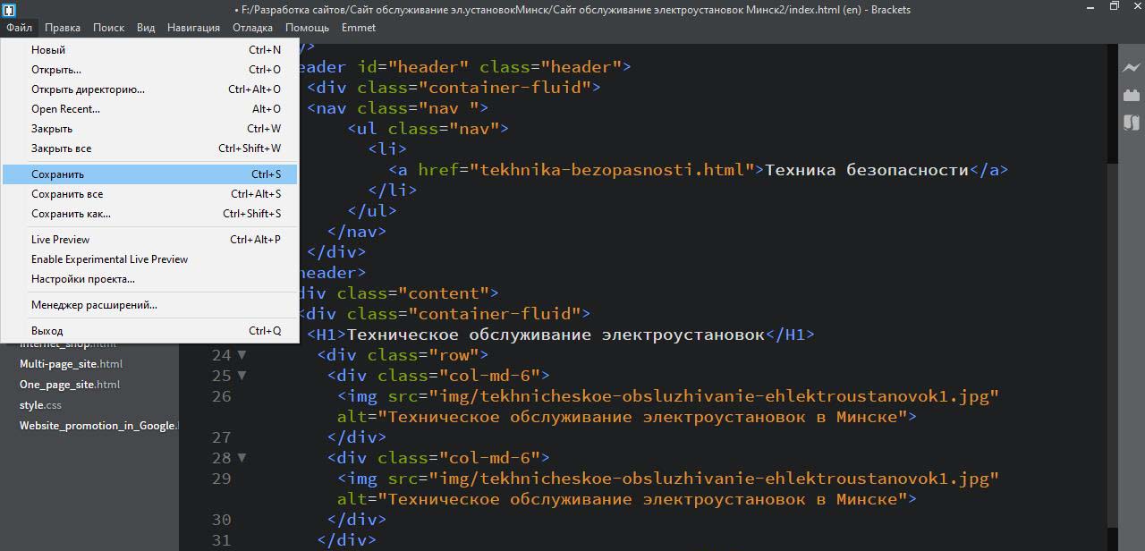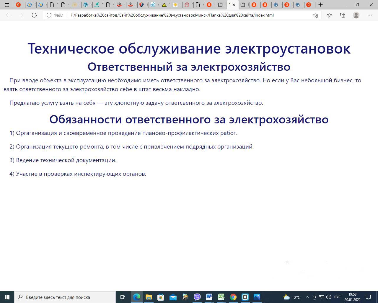 В файле index.html между тегами H1 пропишем заголовок страницы "Техническое обслуживание электроустановок".