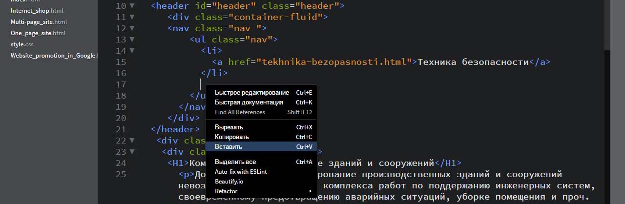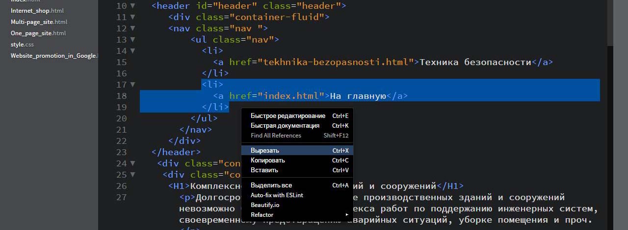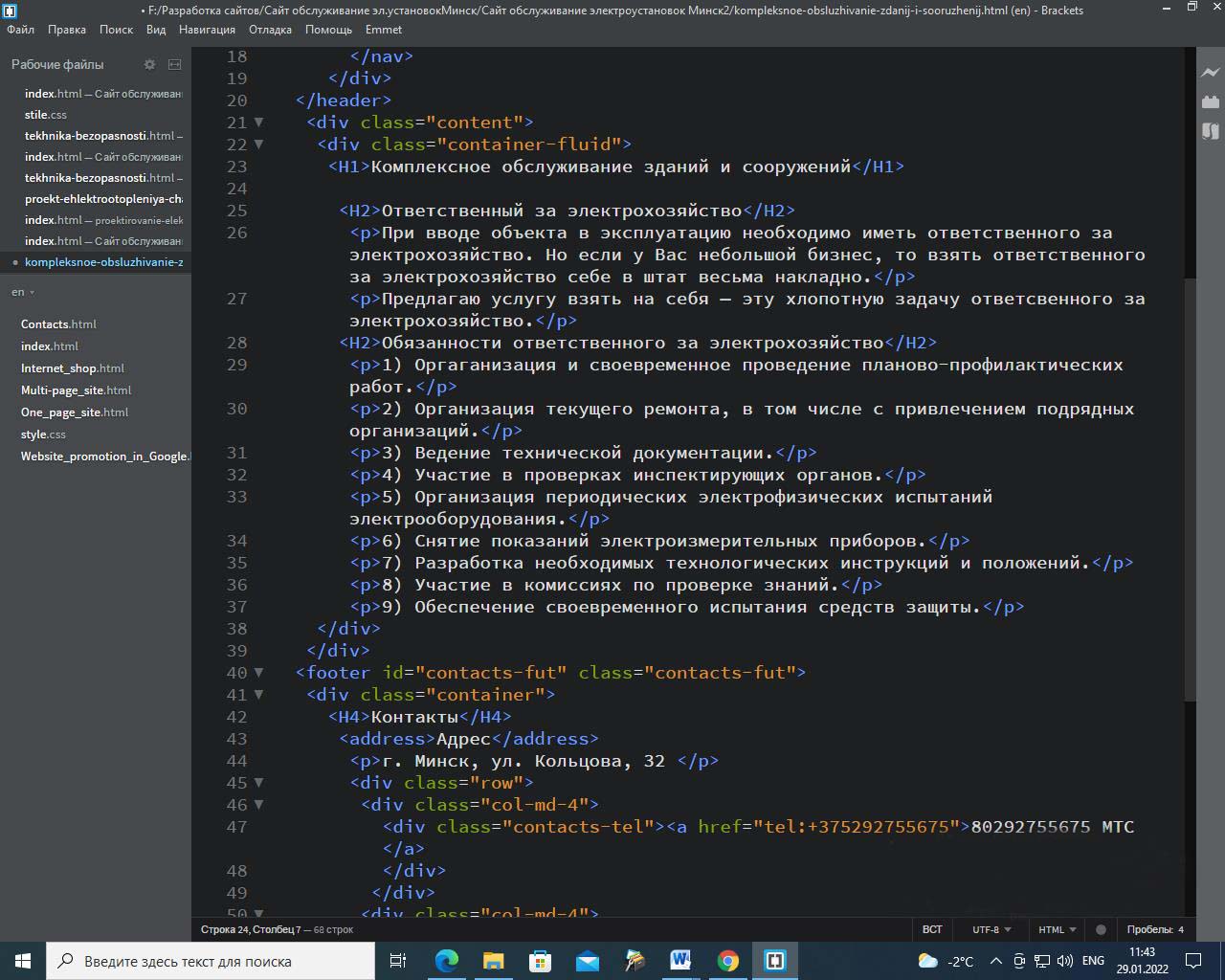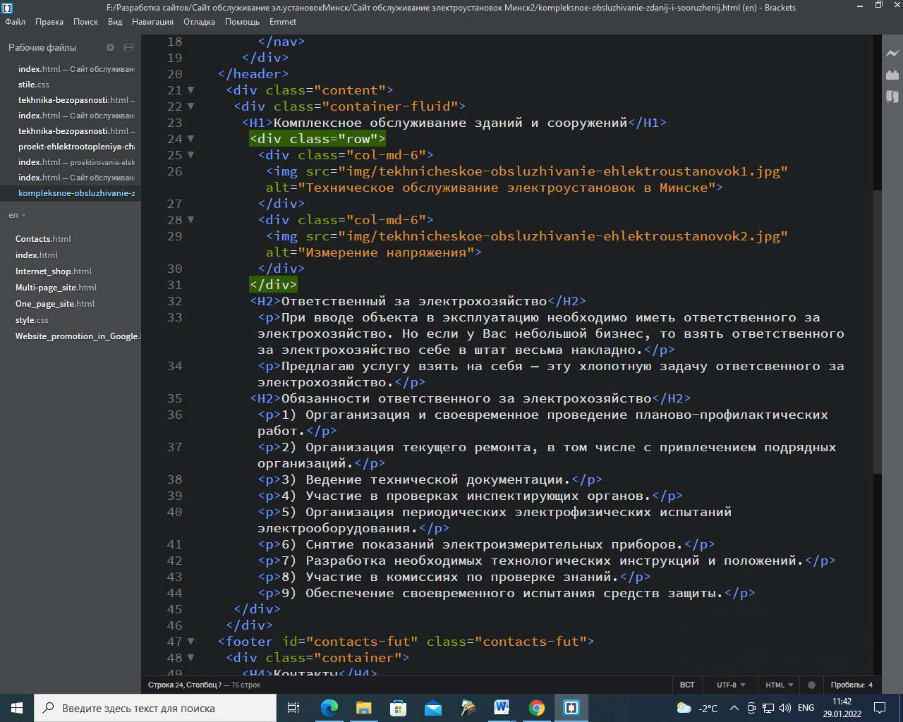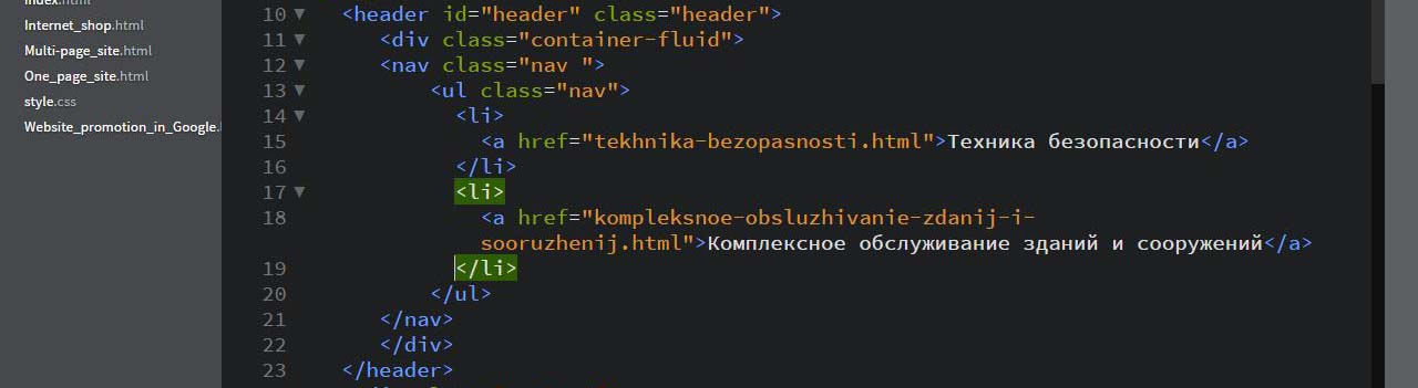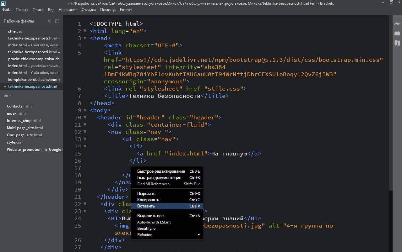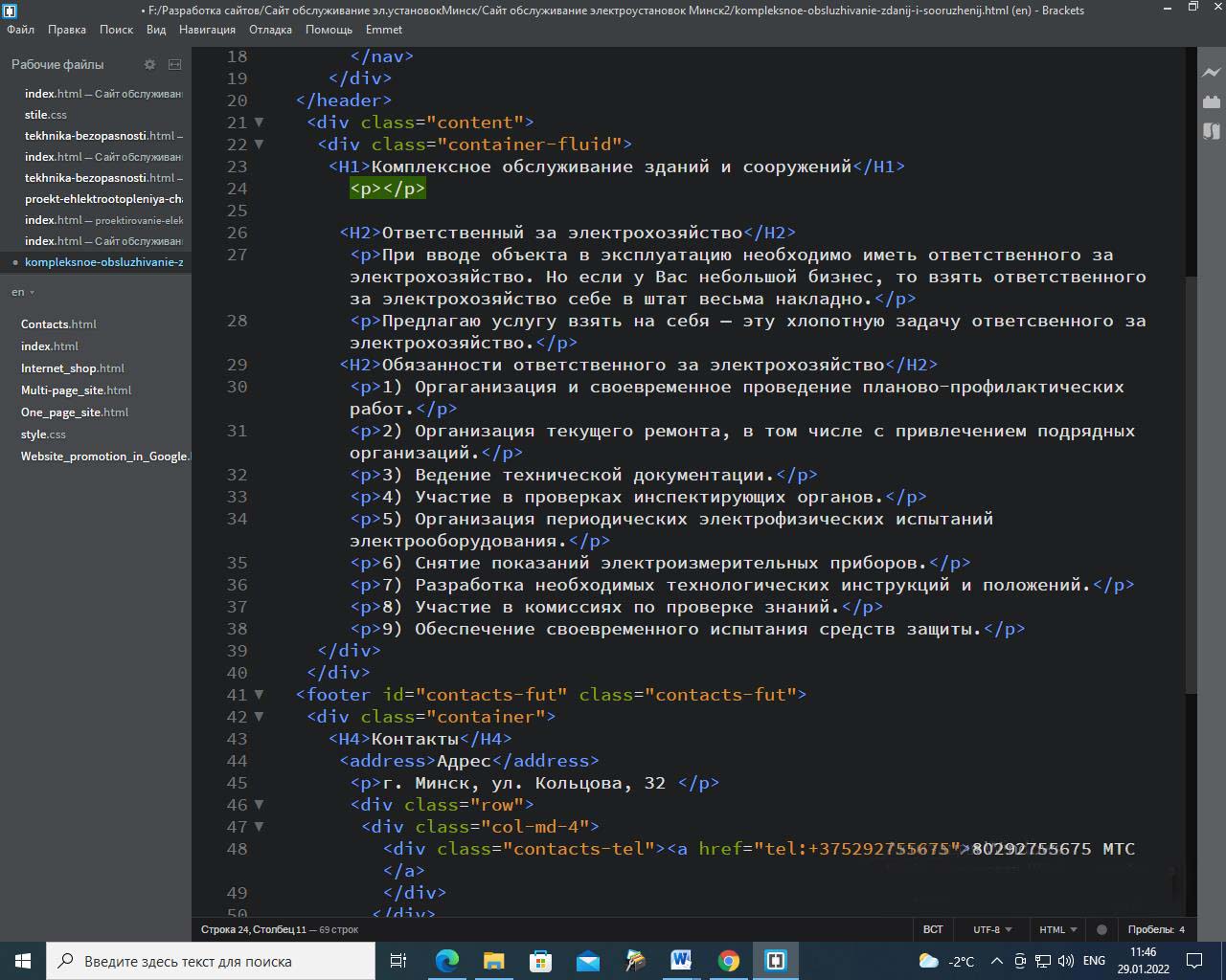 В файле index.html между тегами H1 пропишем заголовок страницы "Техническое обслуживание электроустановок".