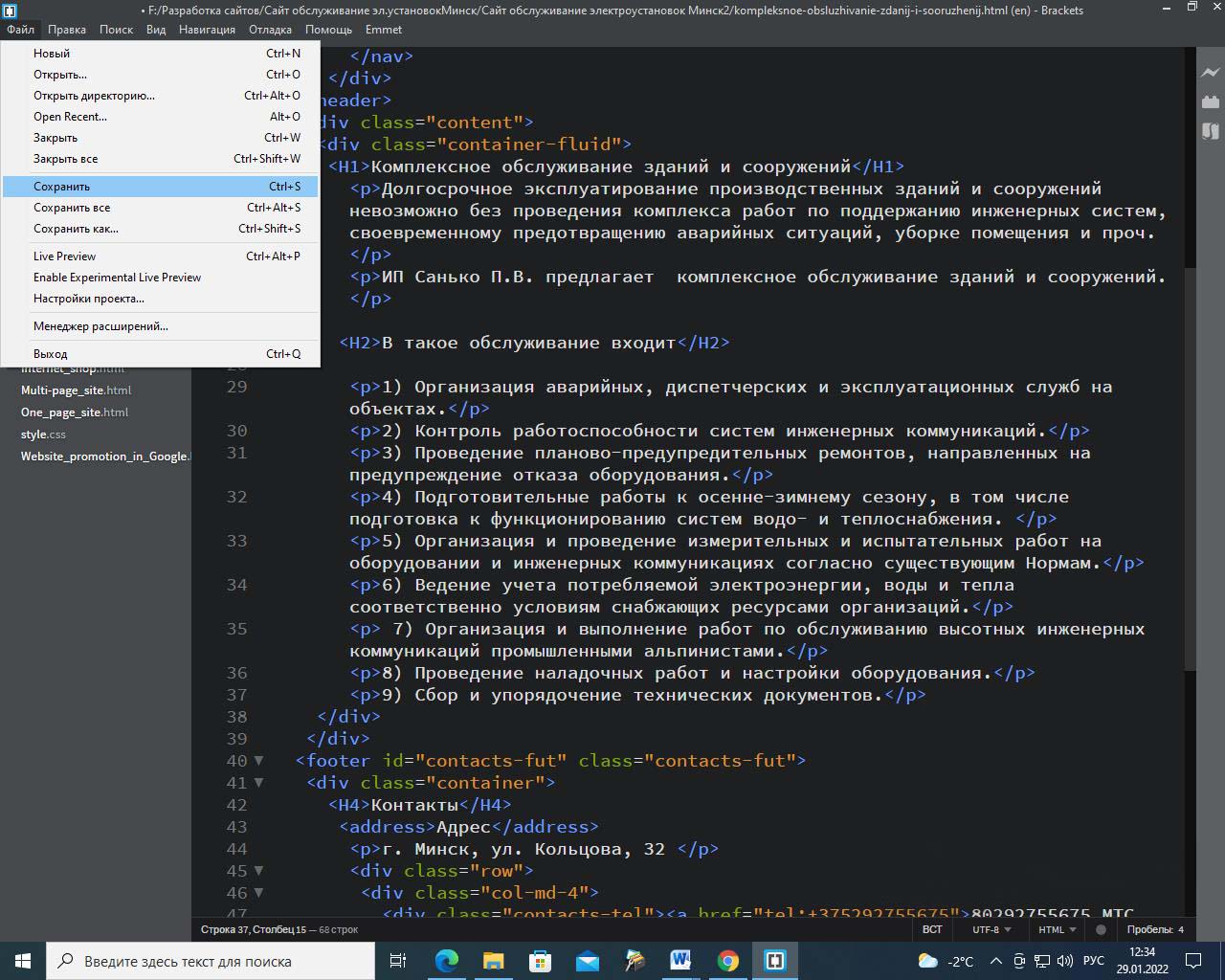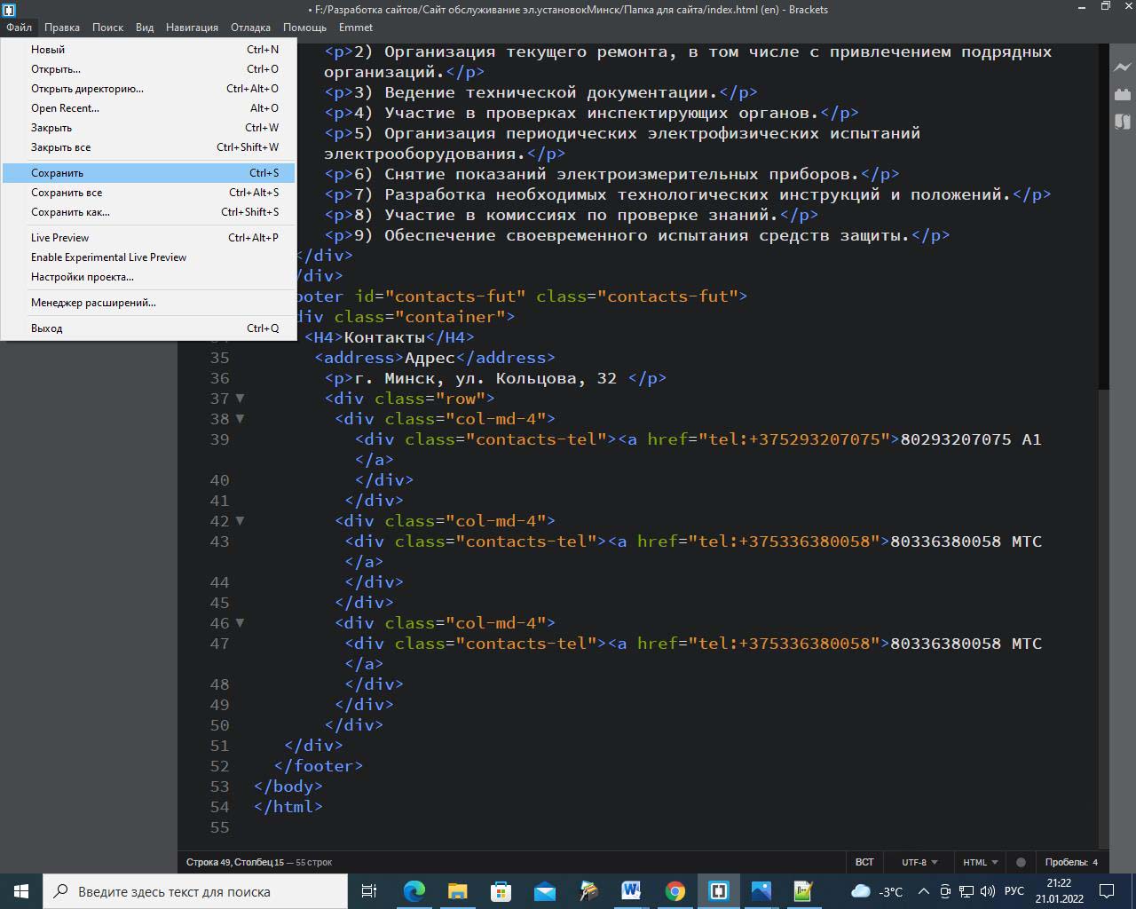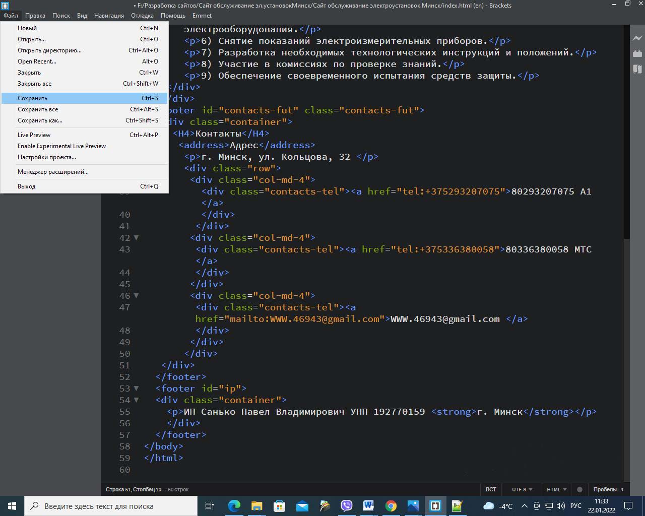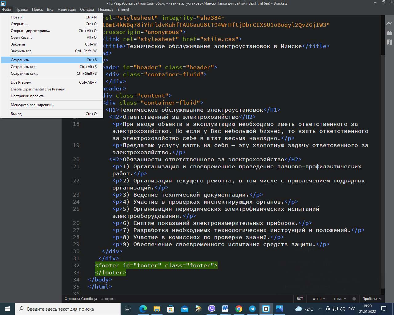 В файле index.html прописывем текст параграфа. Жмем сохранить.
