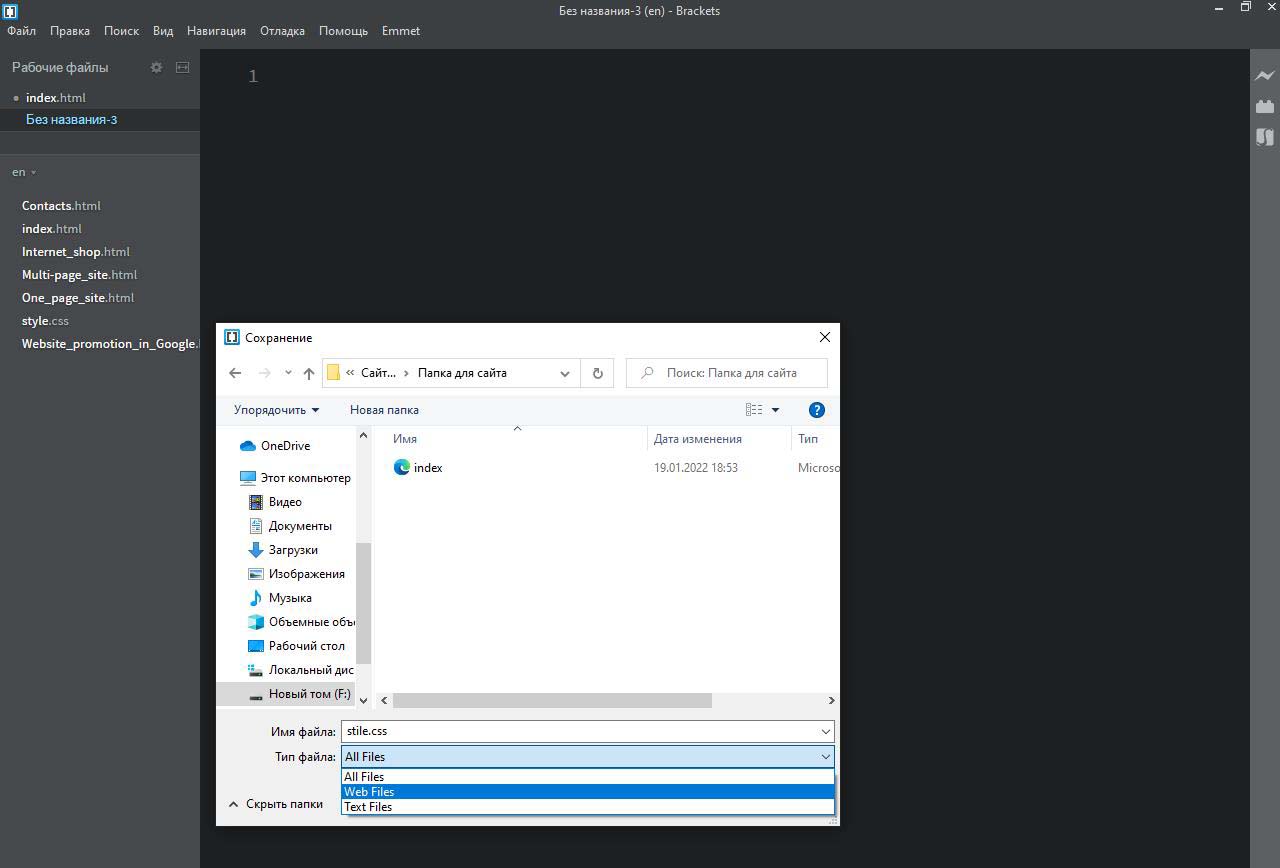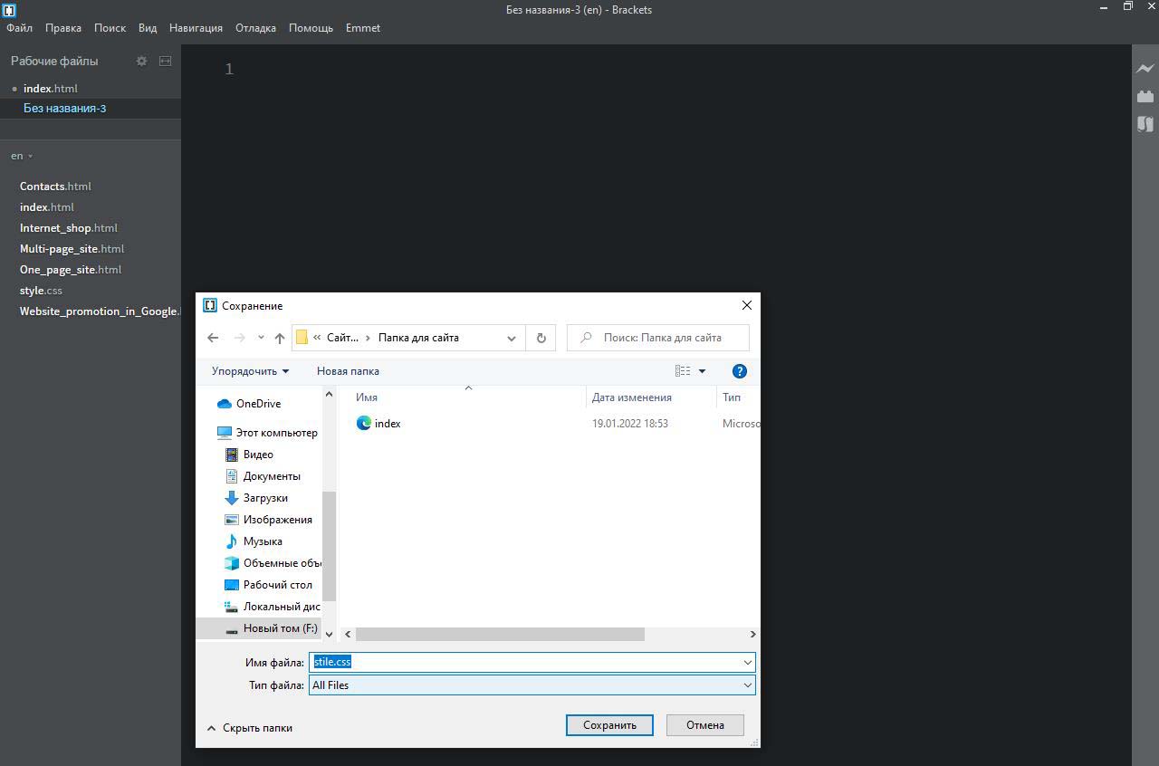 Выбираем файл, сохранить и в названии файла указываем stile.css.