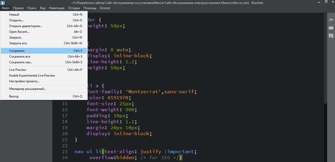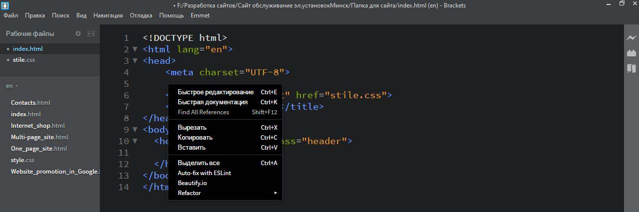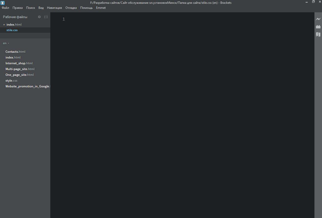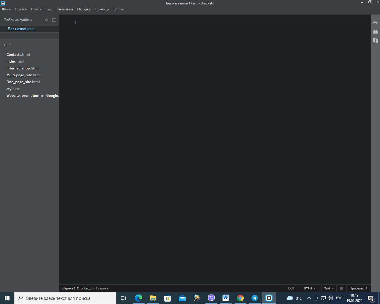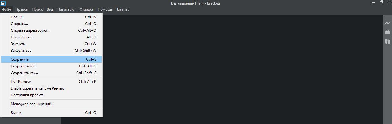 Откроем редактор кода Брэкетс и создадим новый файл.