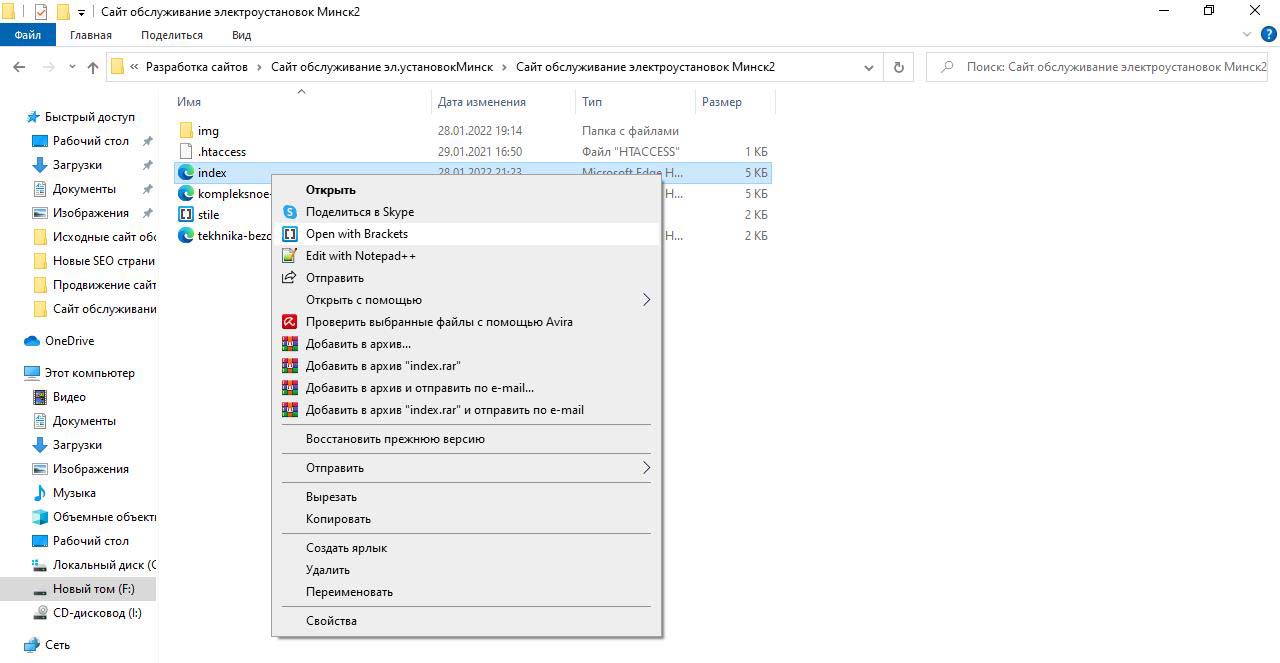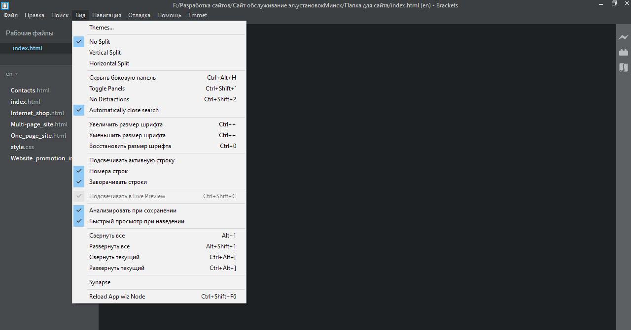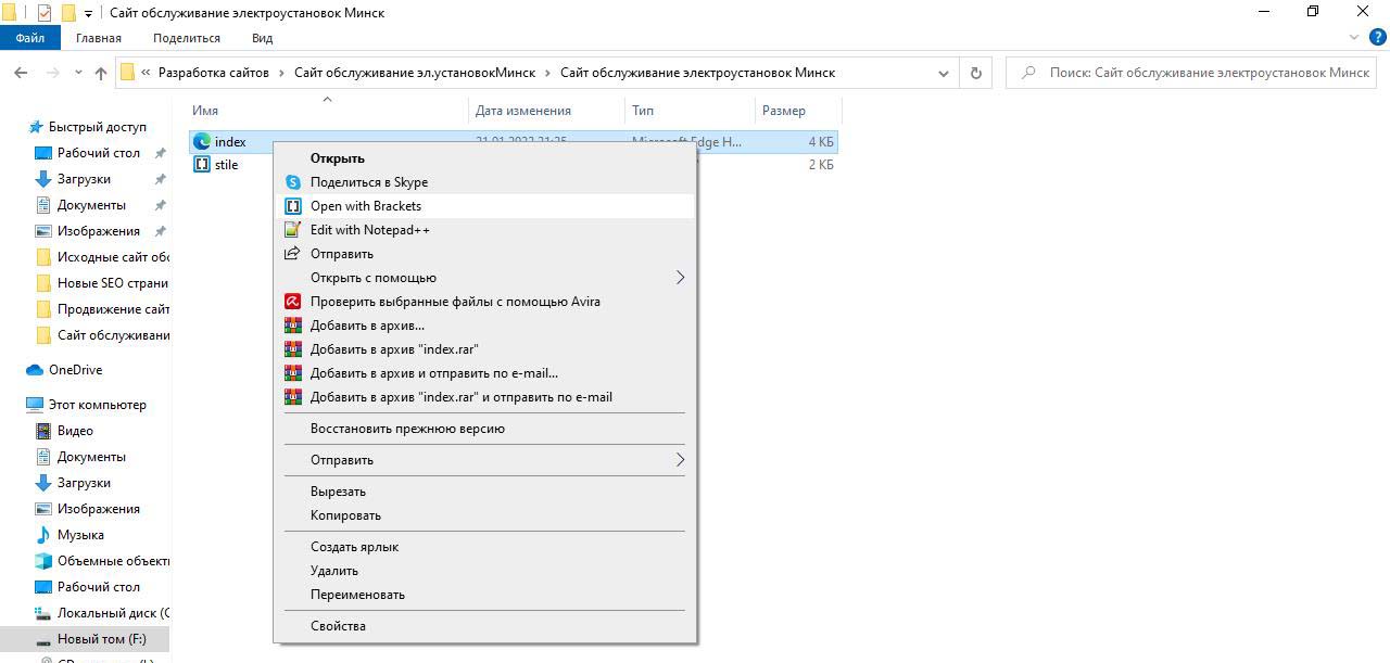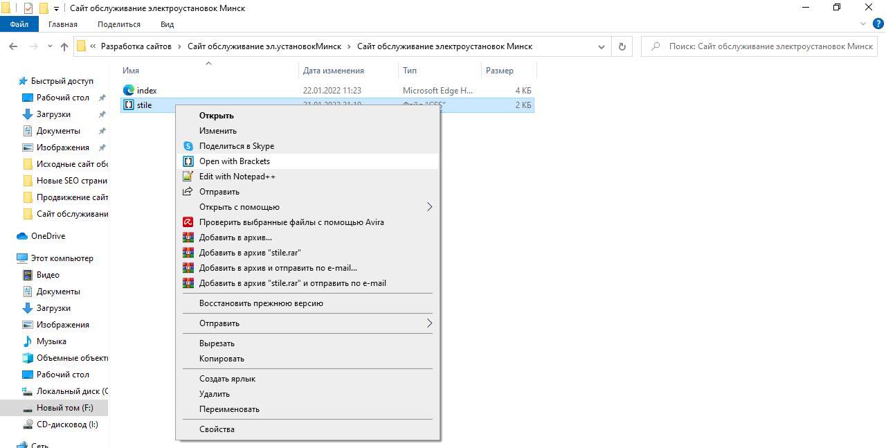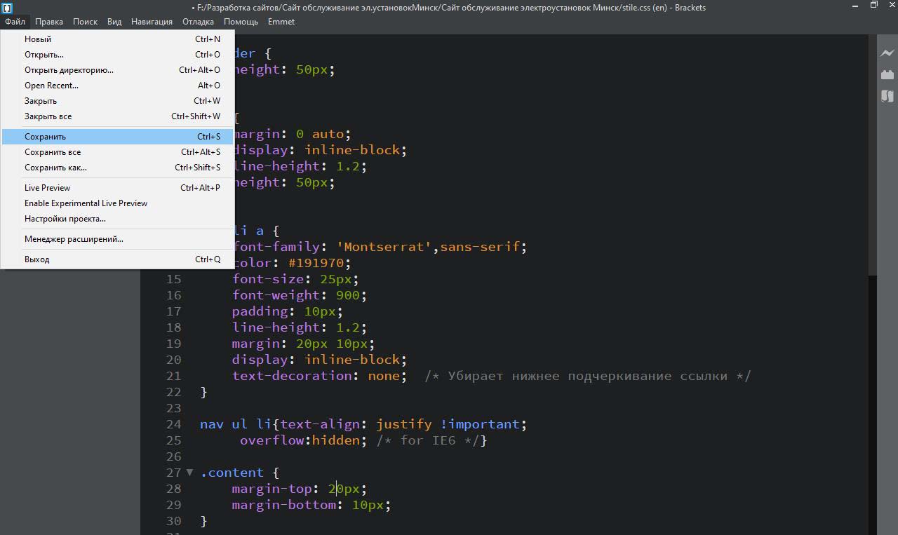 Откроем редактор кода Брэкетс и создадим новый файл.