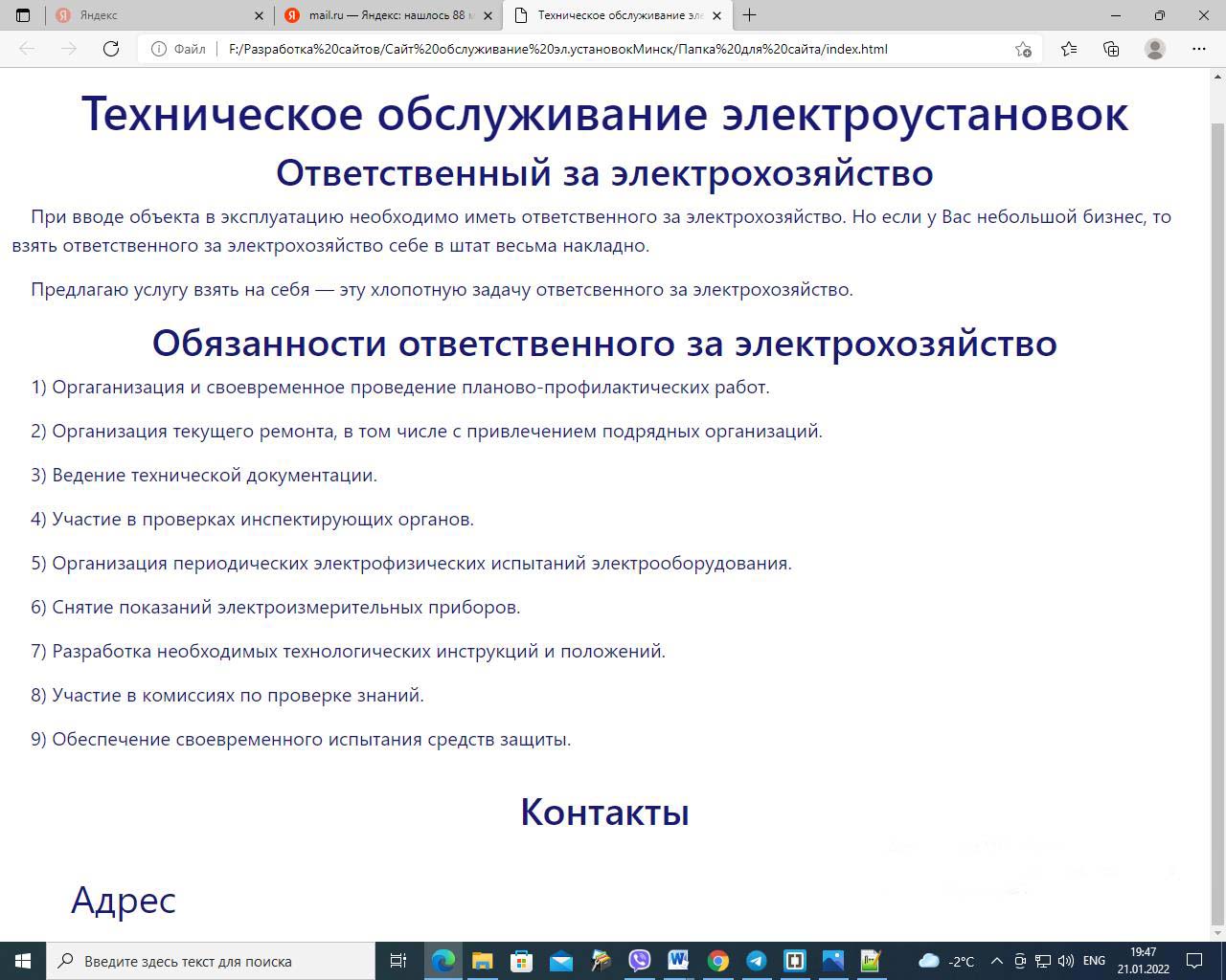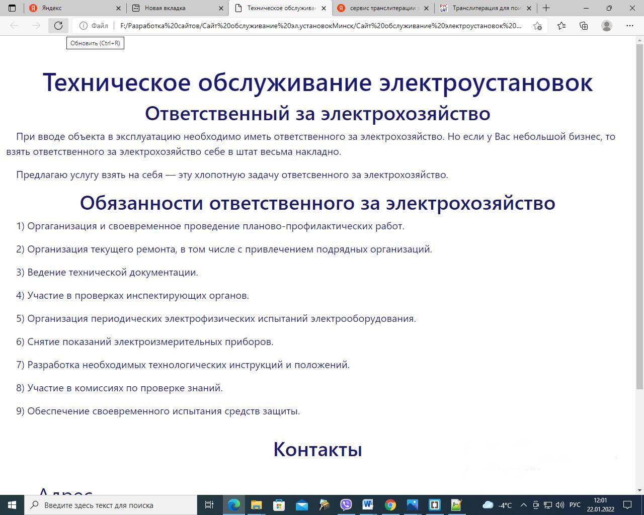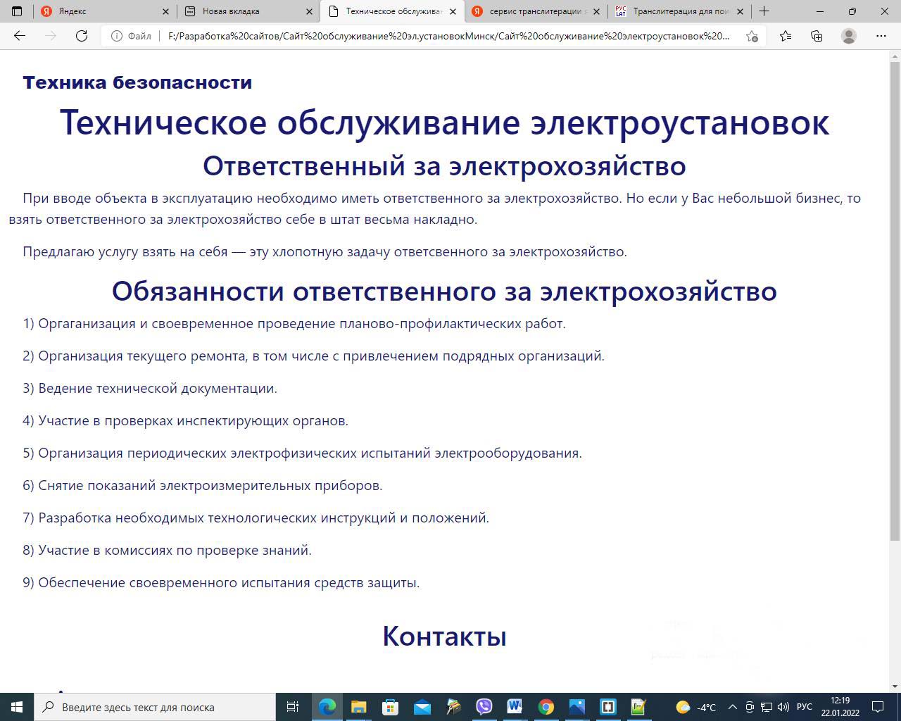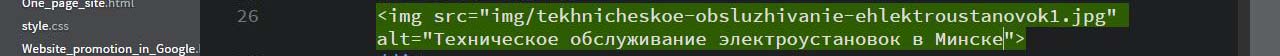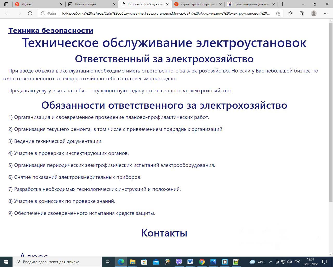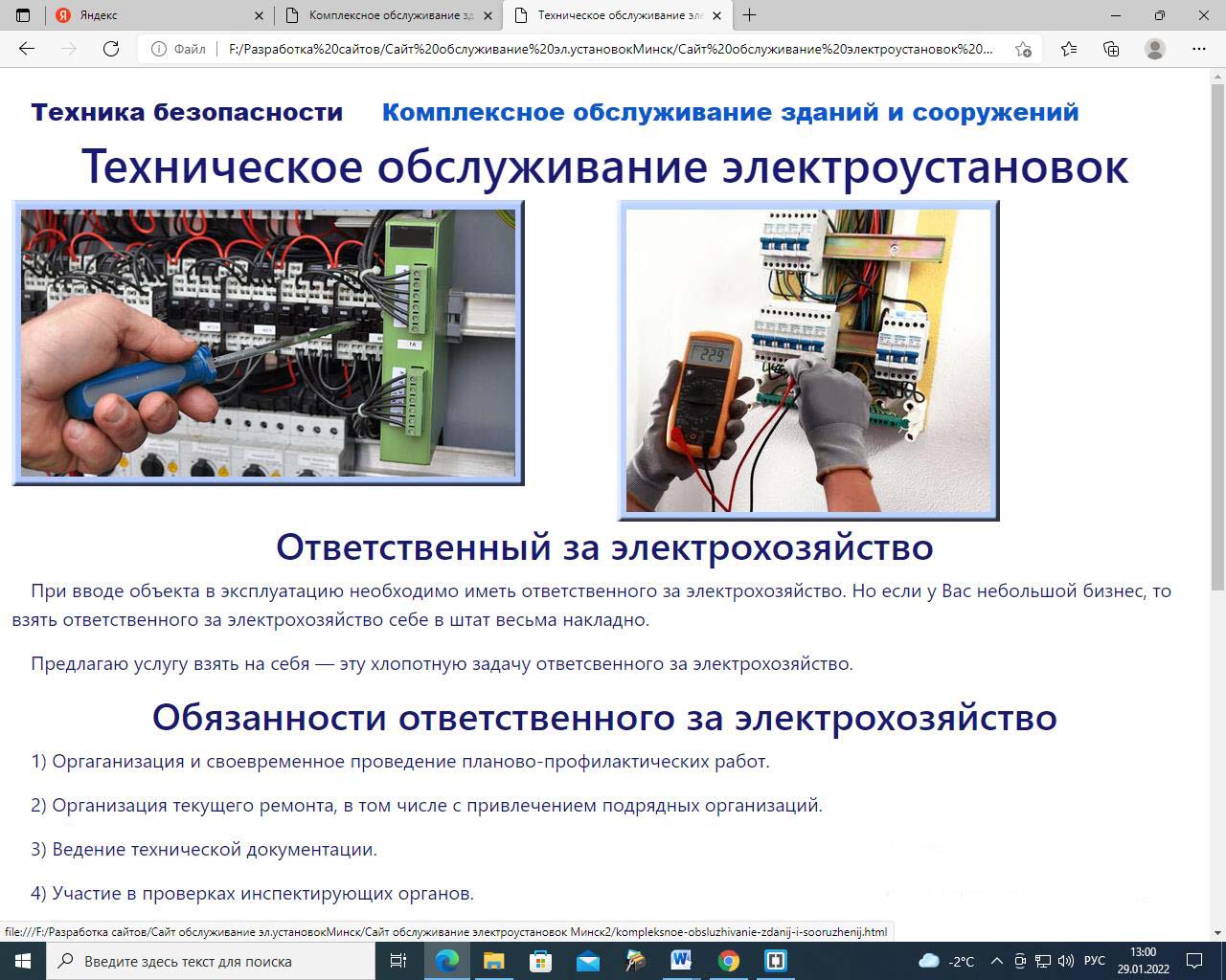 Между тегами title напишем более подходящий заголовок для поисковой выдачи "Техническое обслуживание электроустановок в Минске".