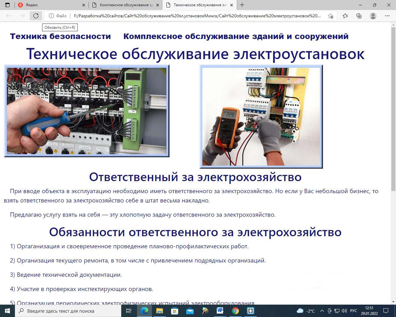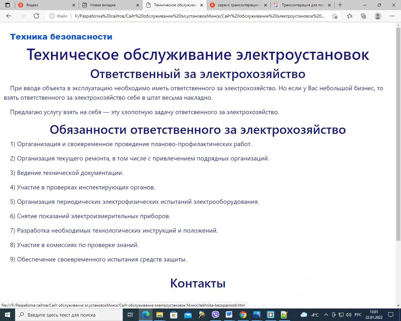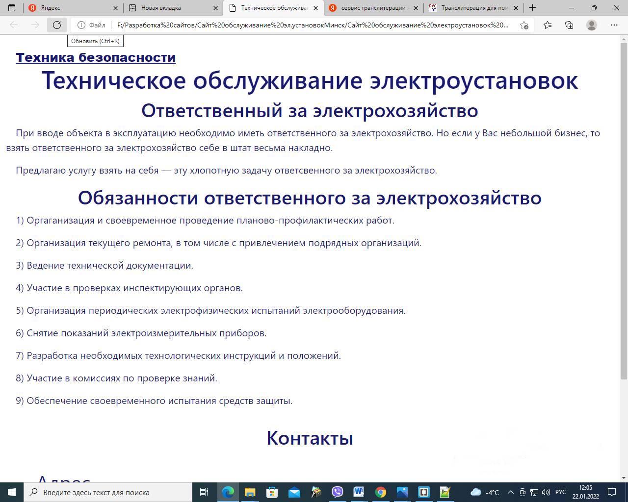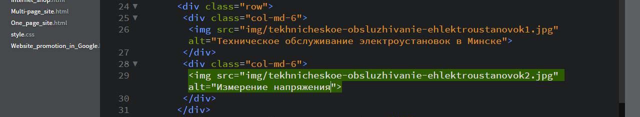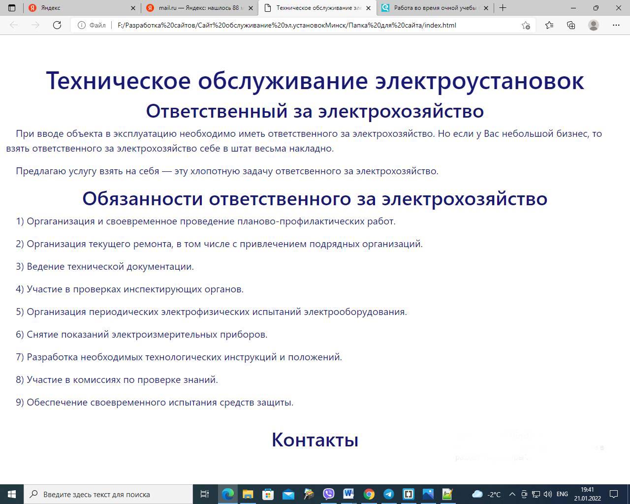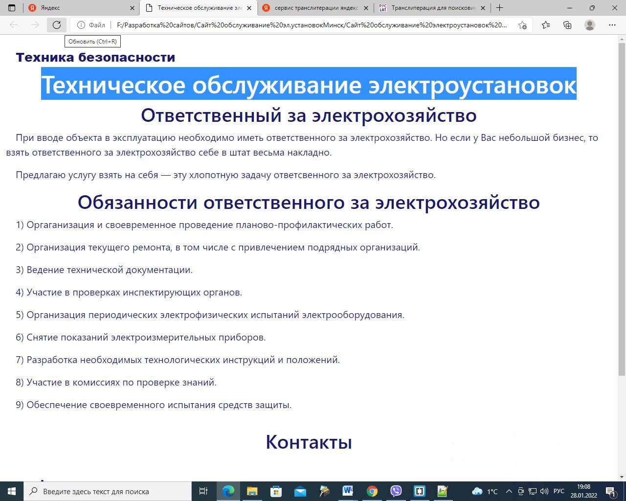 Между тегами title напишем более подходящий заголовок для поисковой выдачи "Техническое обслуживание электроустановок в Минске".