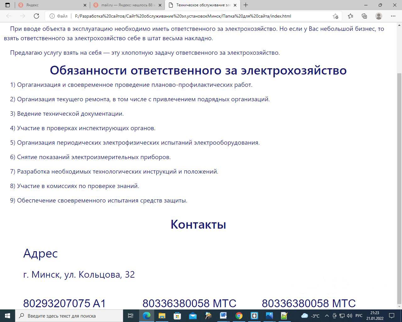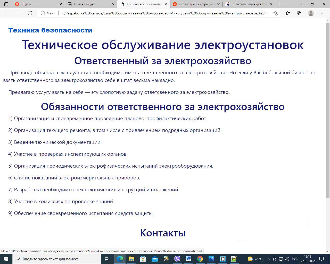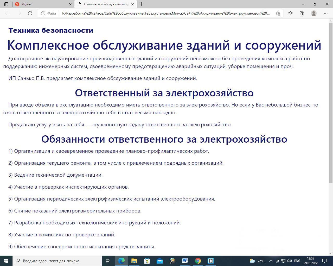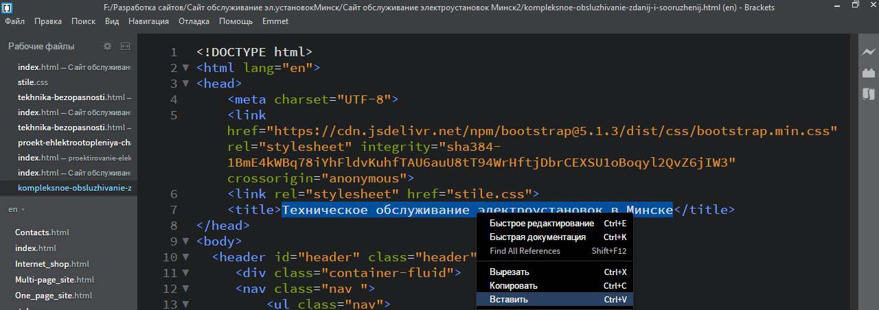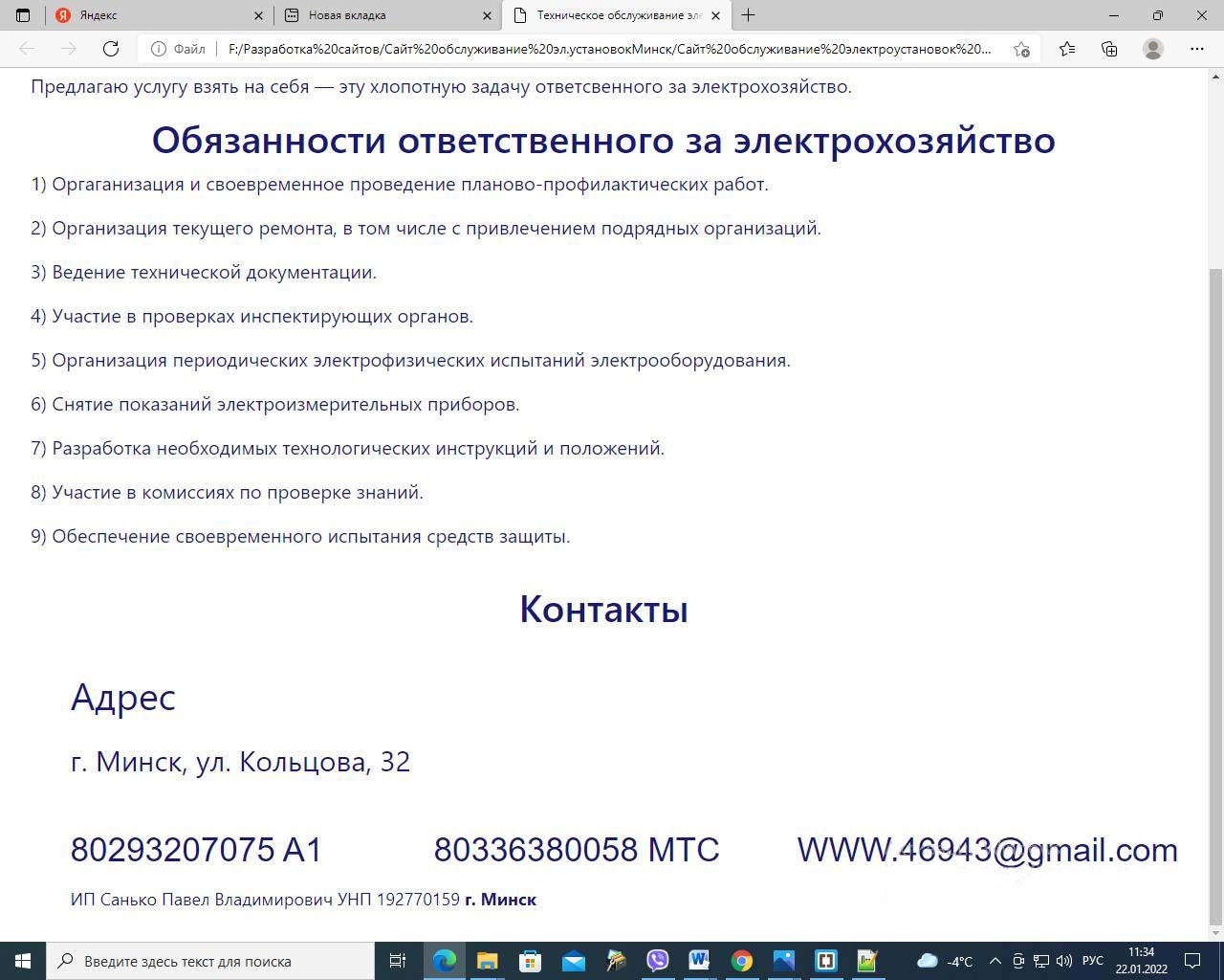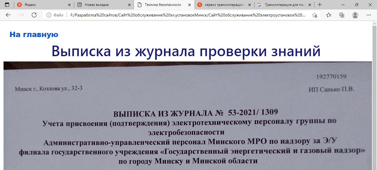 Между тегами title напишем более подходящий заголовок для поисковой выдачи "Техническое обслуживание электроустановок в Минске".
