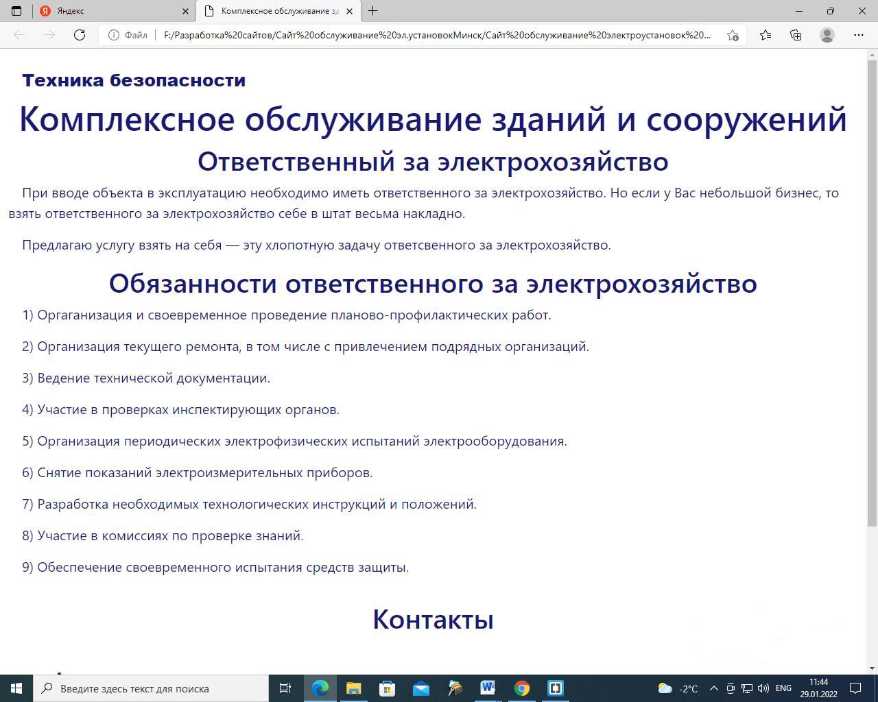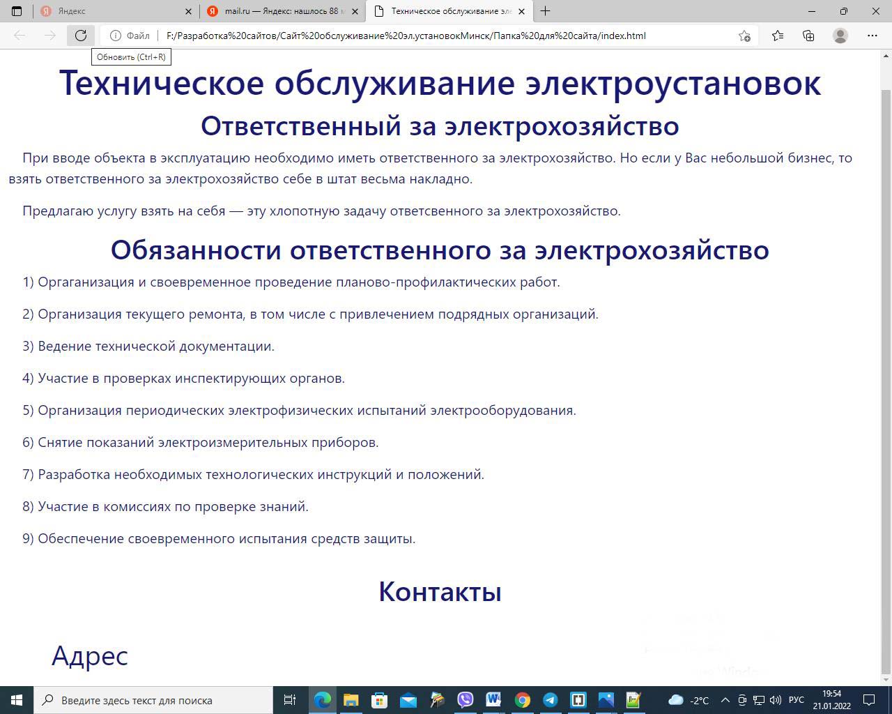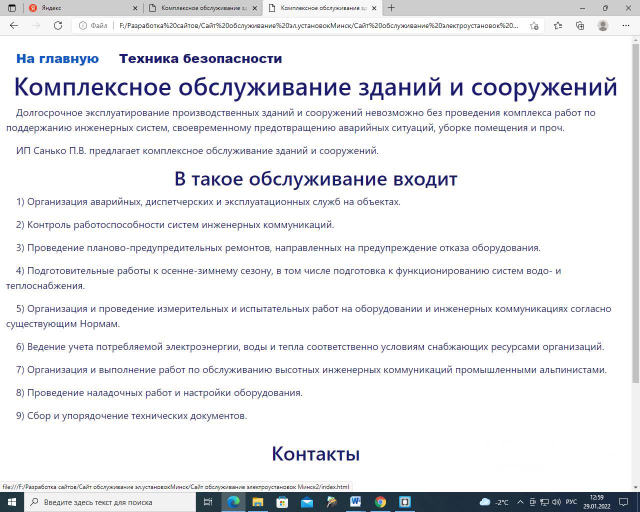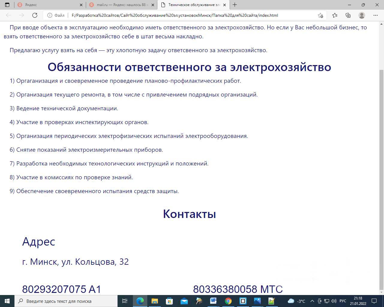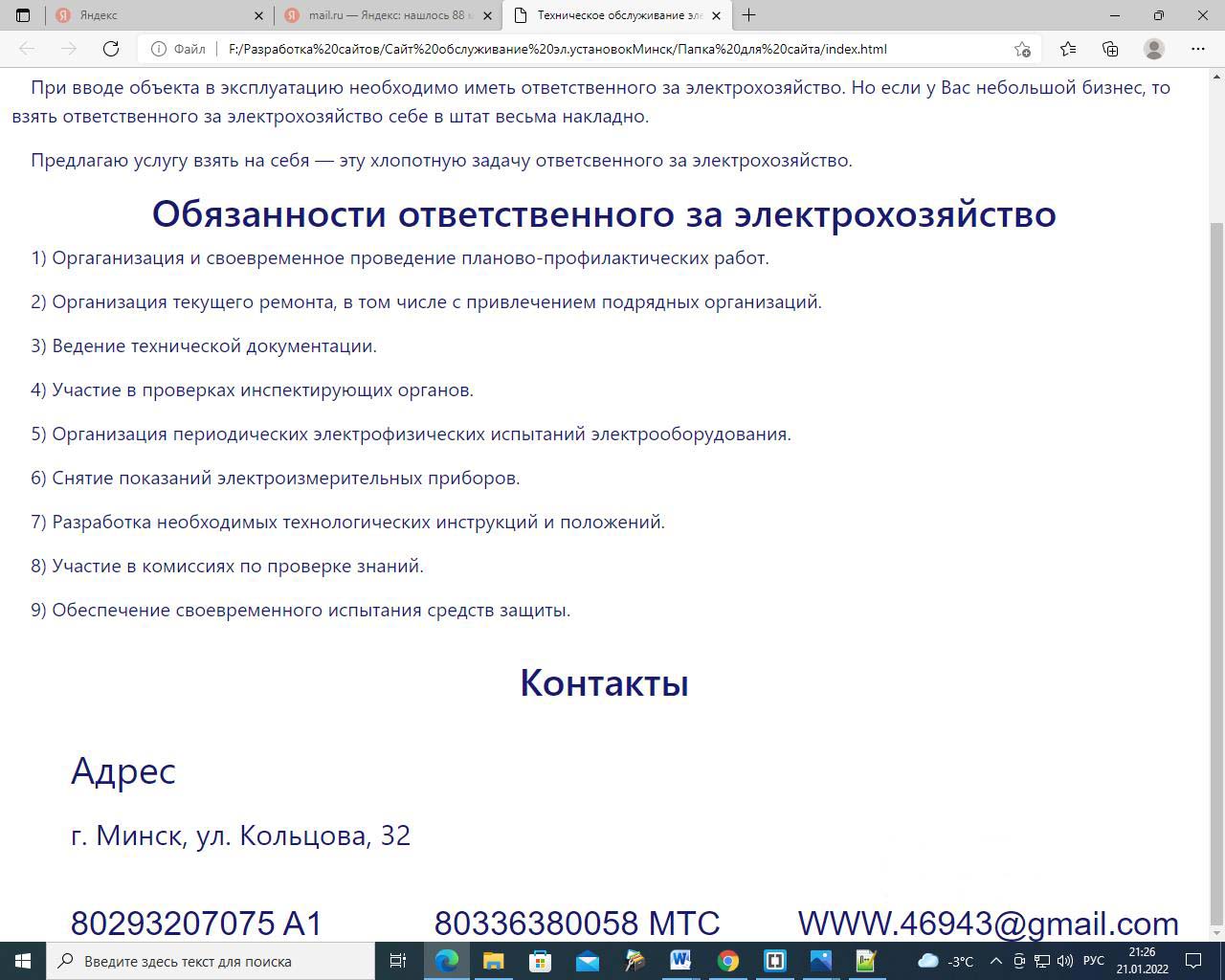 Между тегами title напишем более подходящий заголовок для поисковой выдачи "Техническое обслуживание электроустановок в Минске".