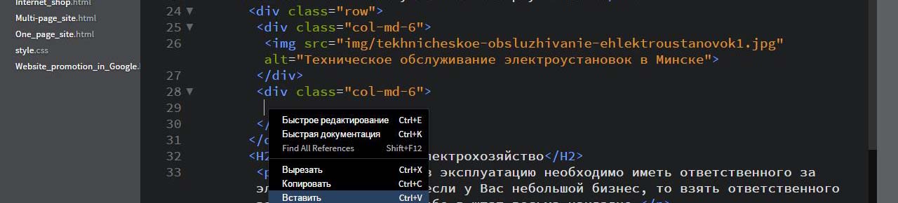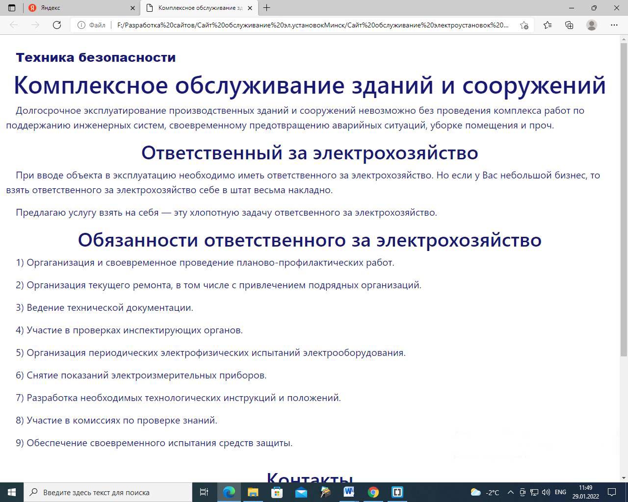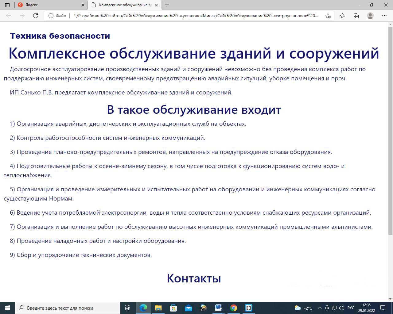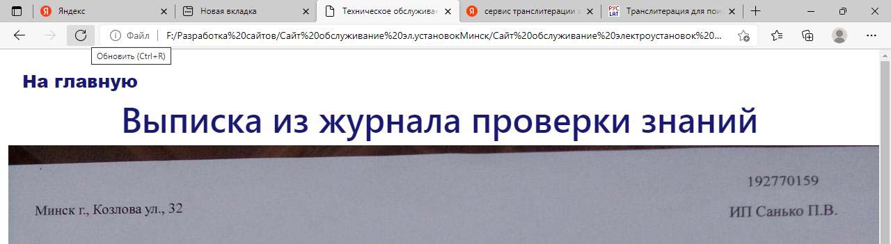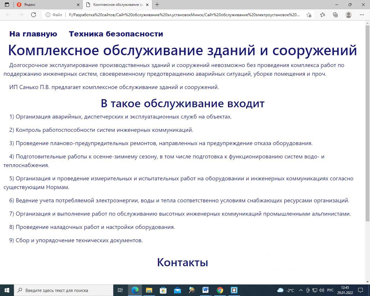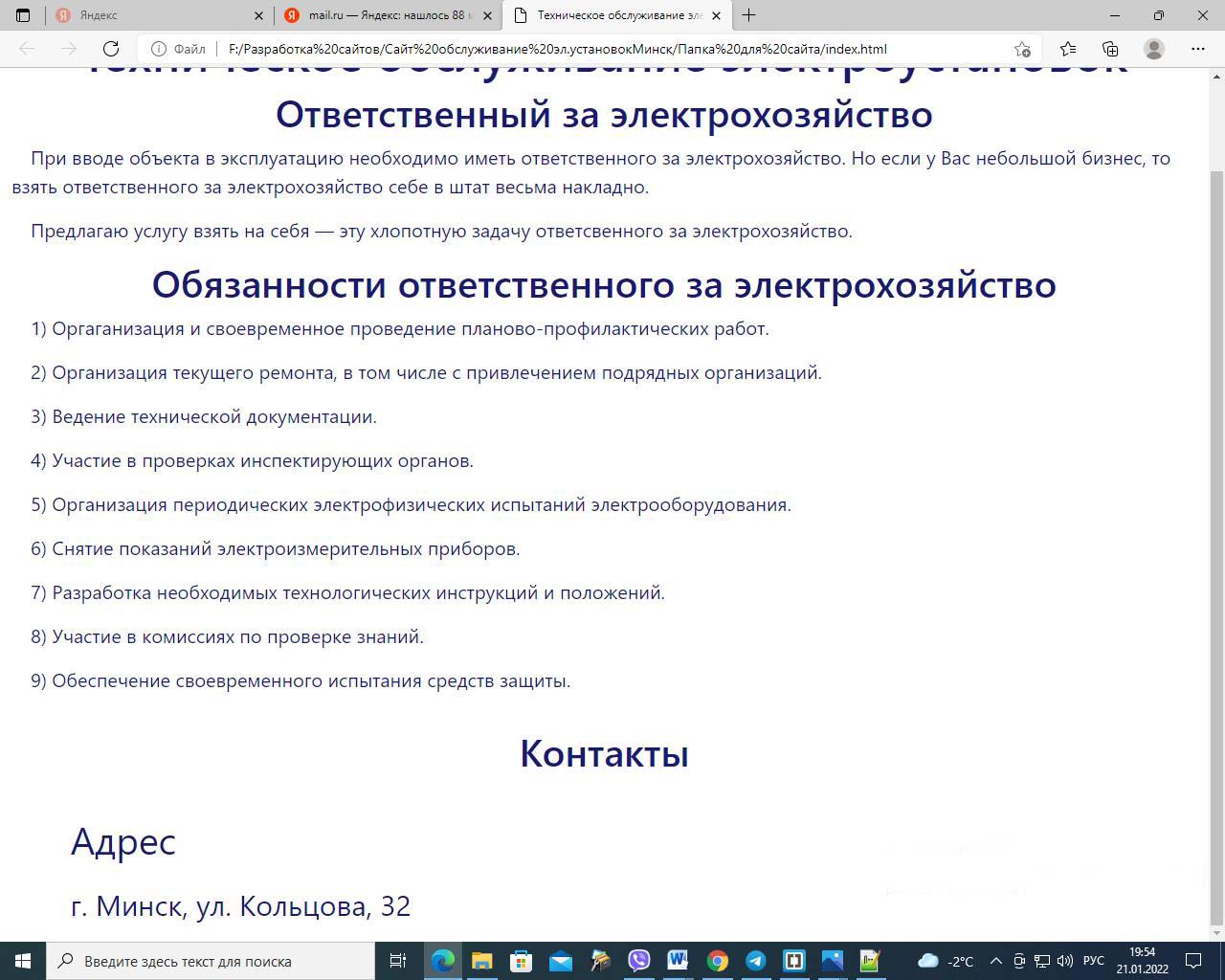 Между тегами title напишем более подходящий заголовок для поисковой выдачи "Техническое обслуживание электроустановок в Минске".