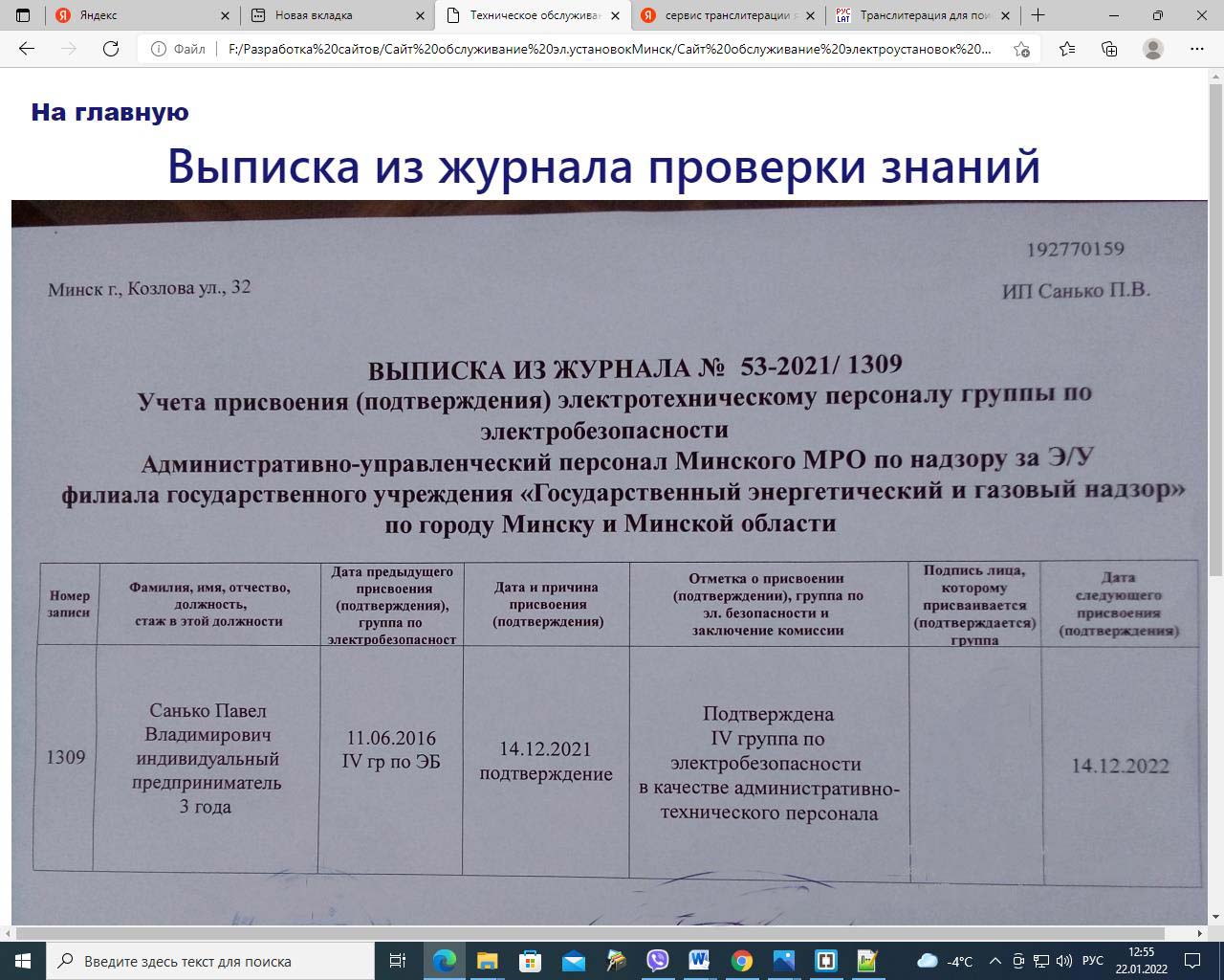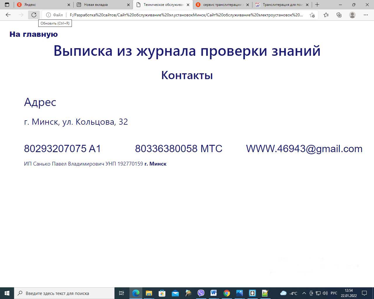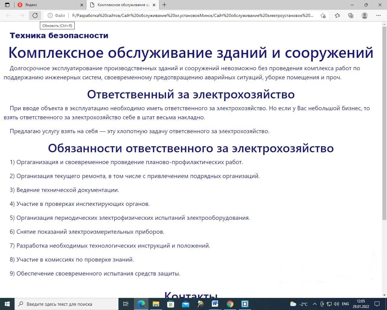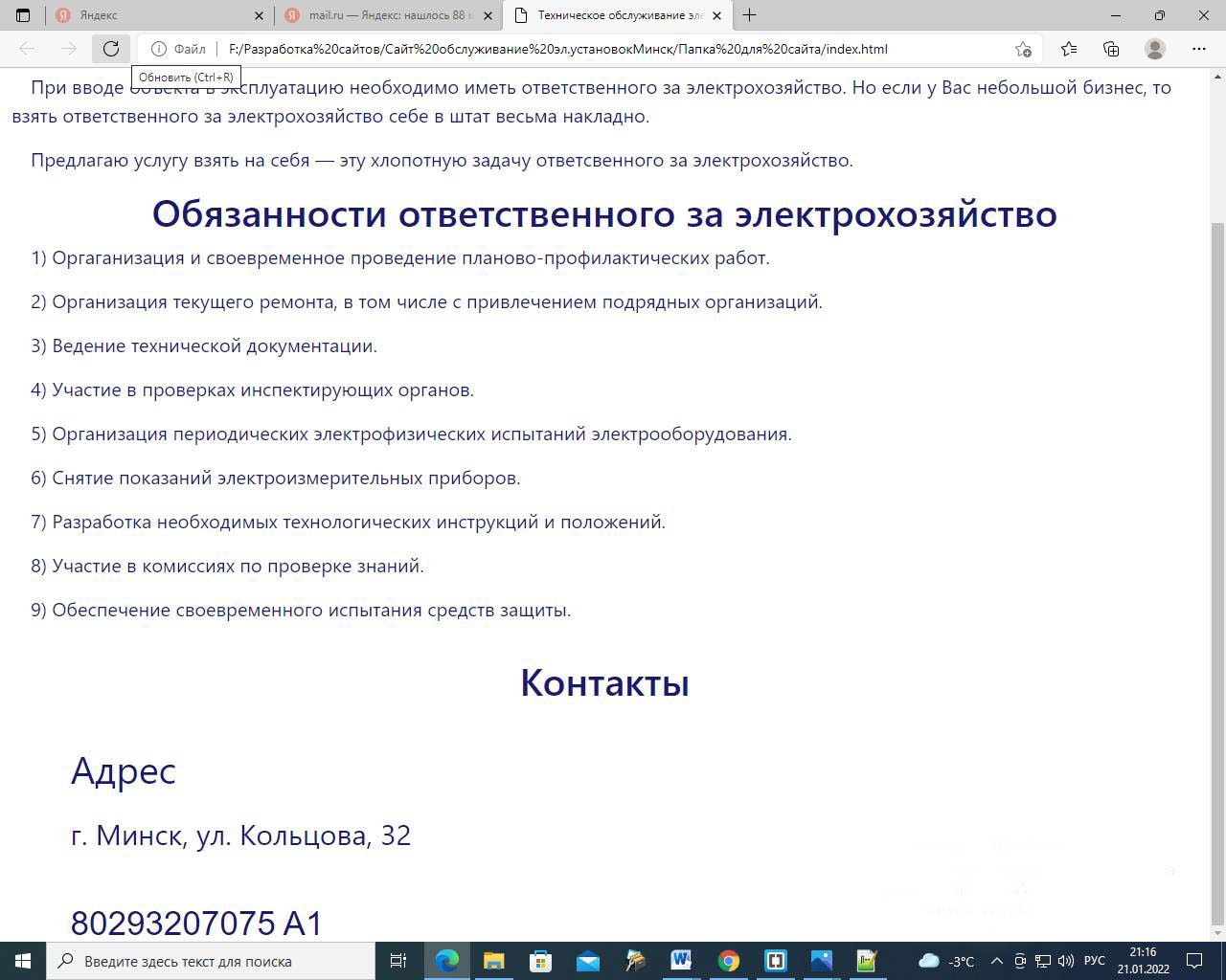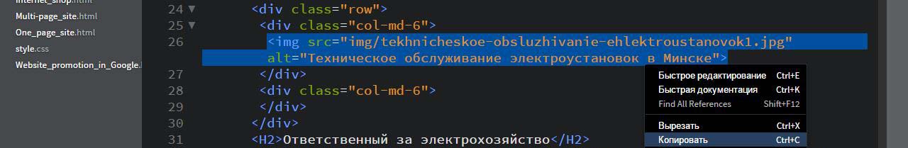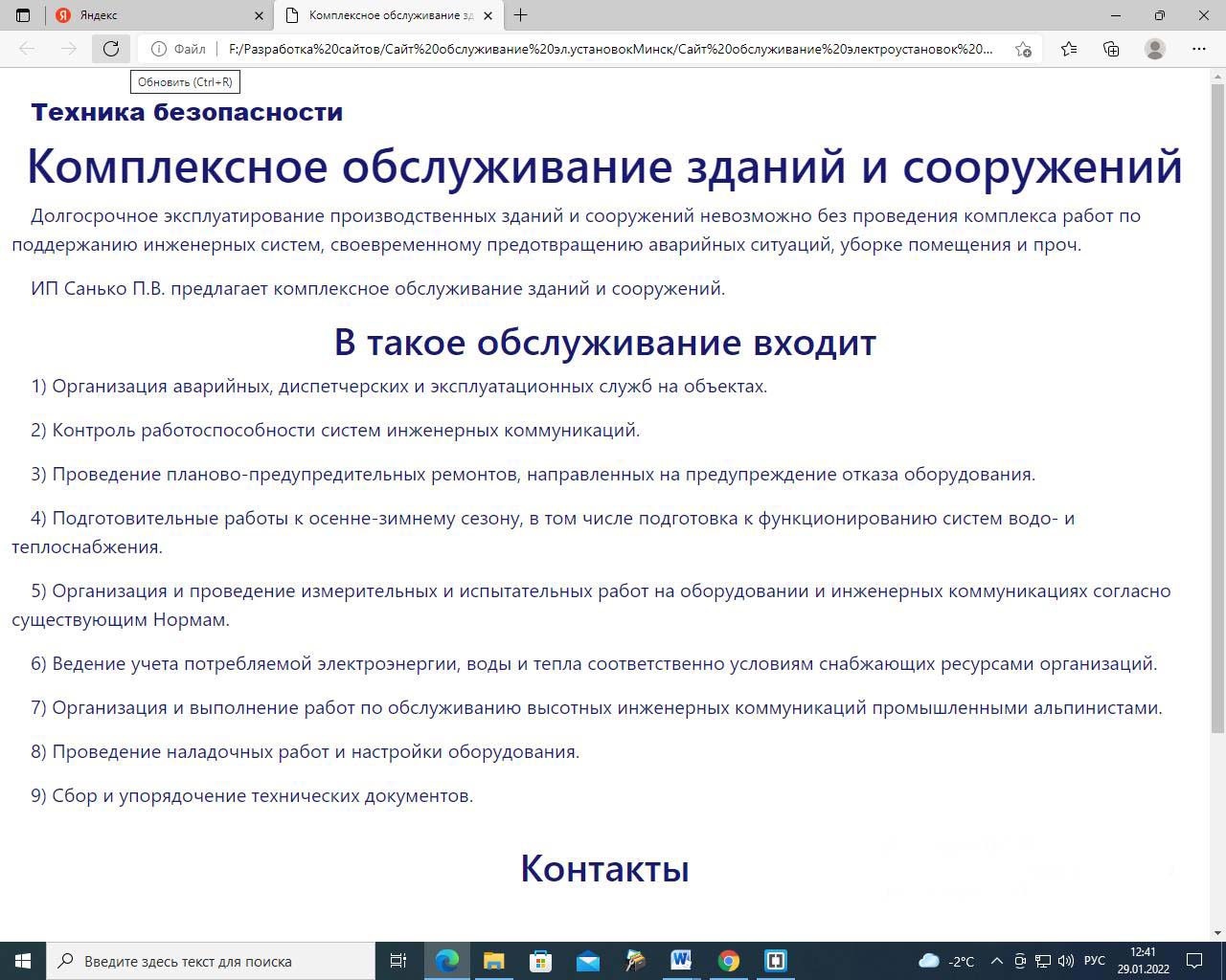 Между тегами title напишем более подходящий заголовок для поисковой выдачи "Техническое обслуживание электроустановок в Минске".