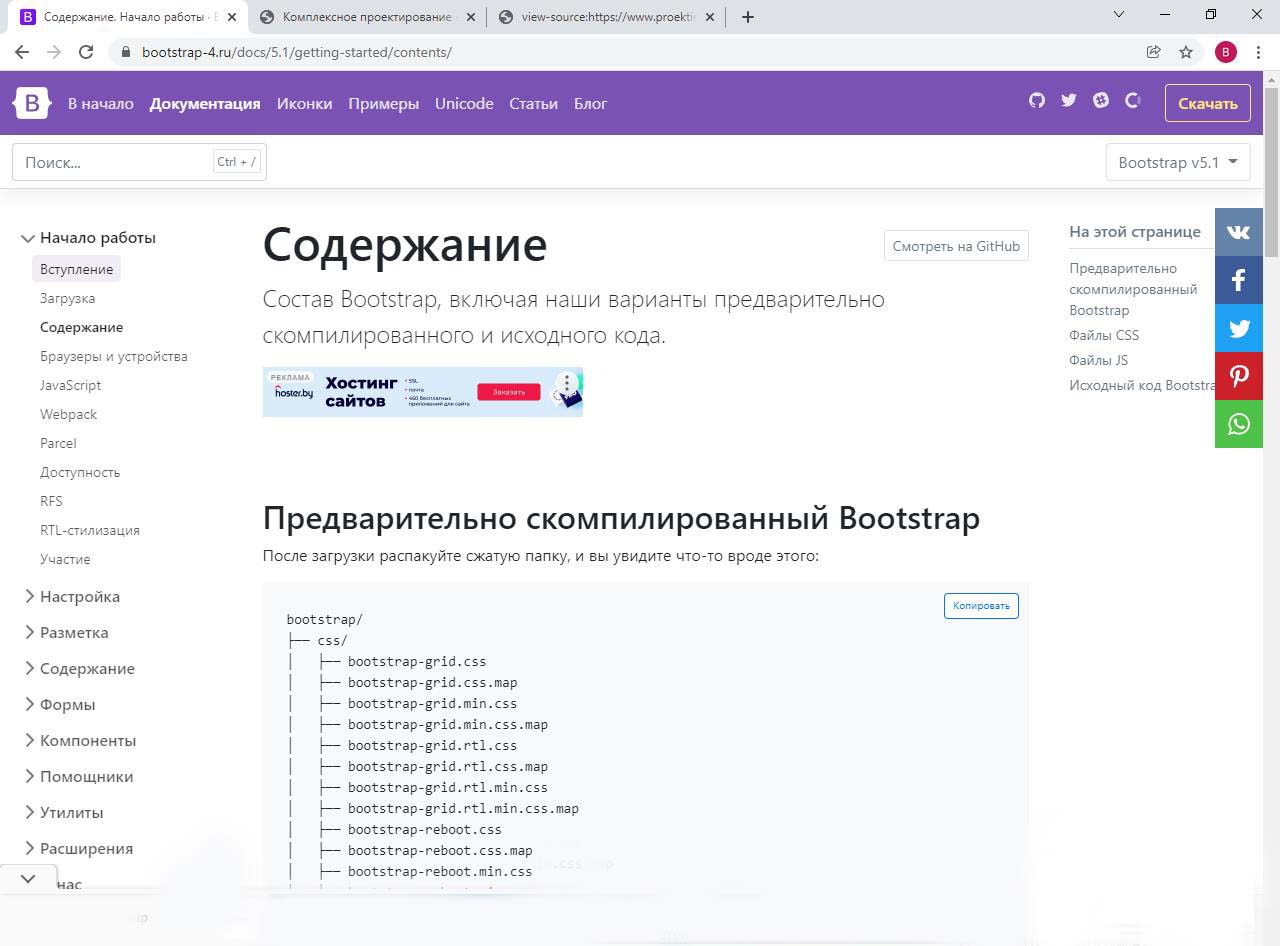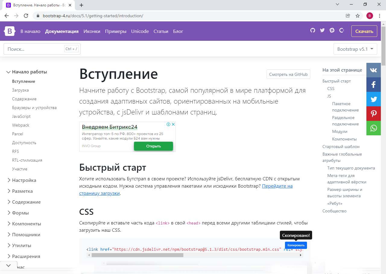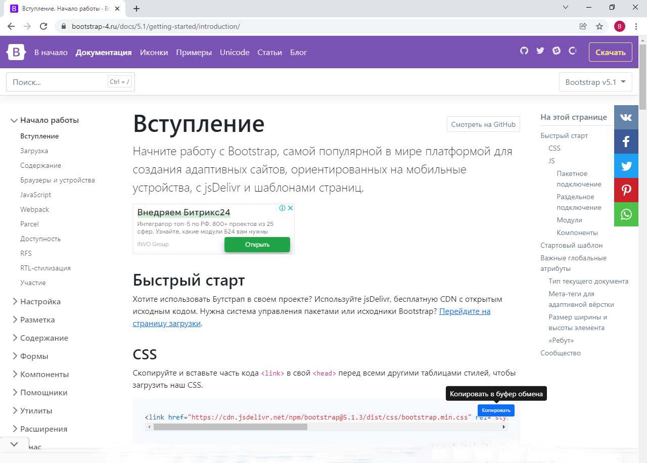 Перед подключением CSS в теге linc подключим бутстрап (Bootstrap) 4