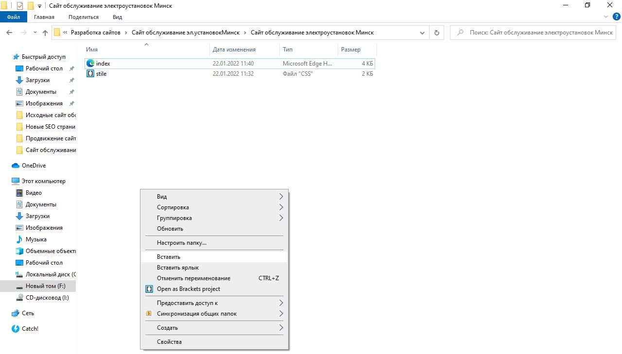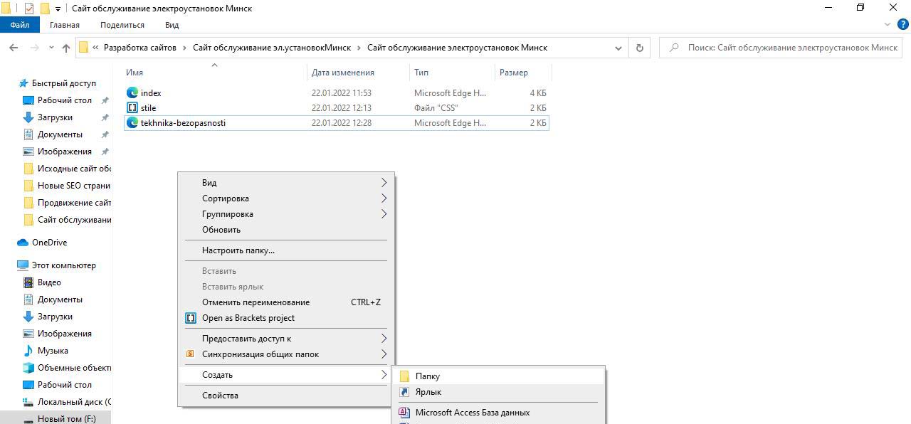 Cделаем верстку сайта с нуля. Создадим на компьютере или ноутбуке папку для сайта.