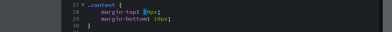 В файле со стилями пропишем начальные стили css для контентной части сайта: отступ сверху 10px, отступ снизу 10px.