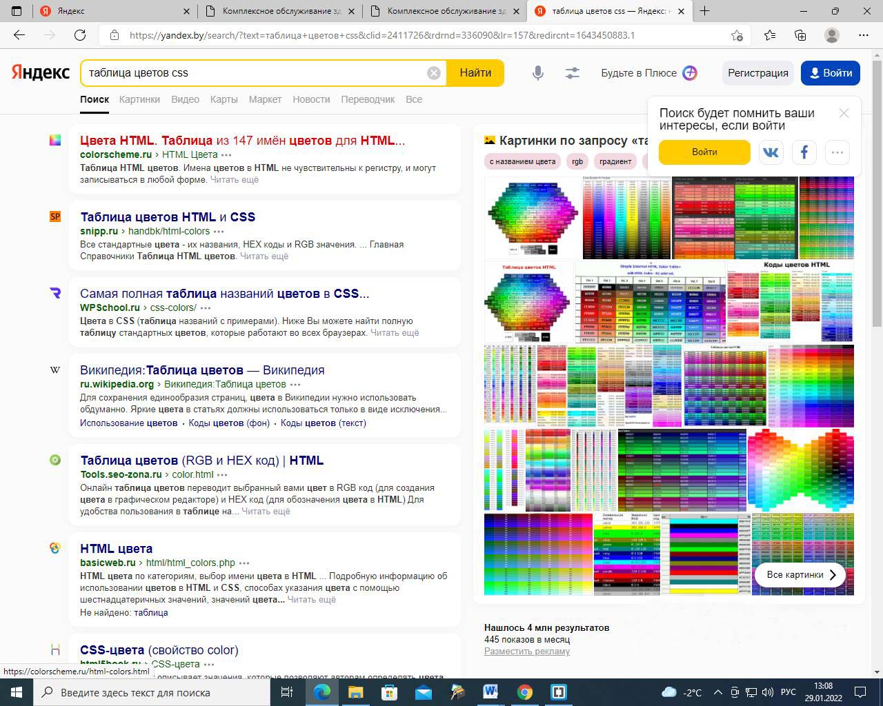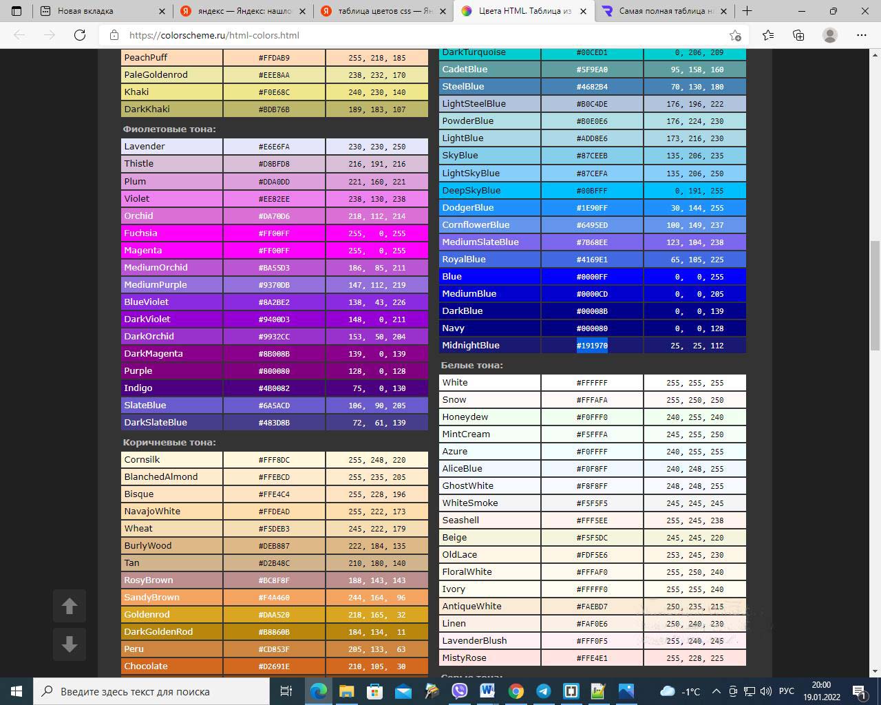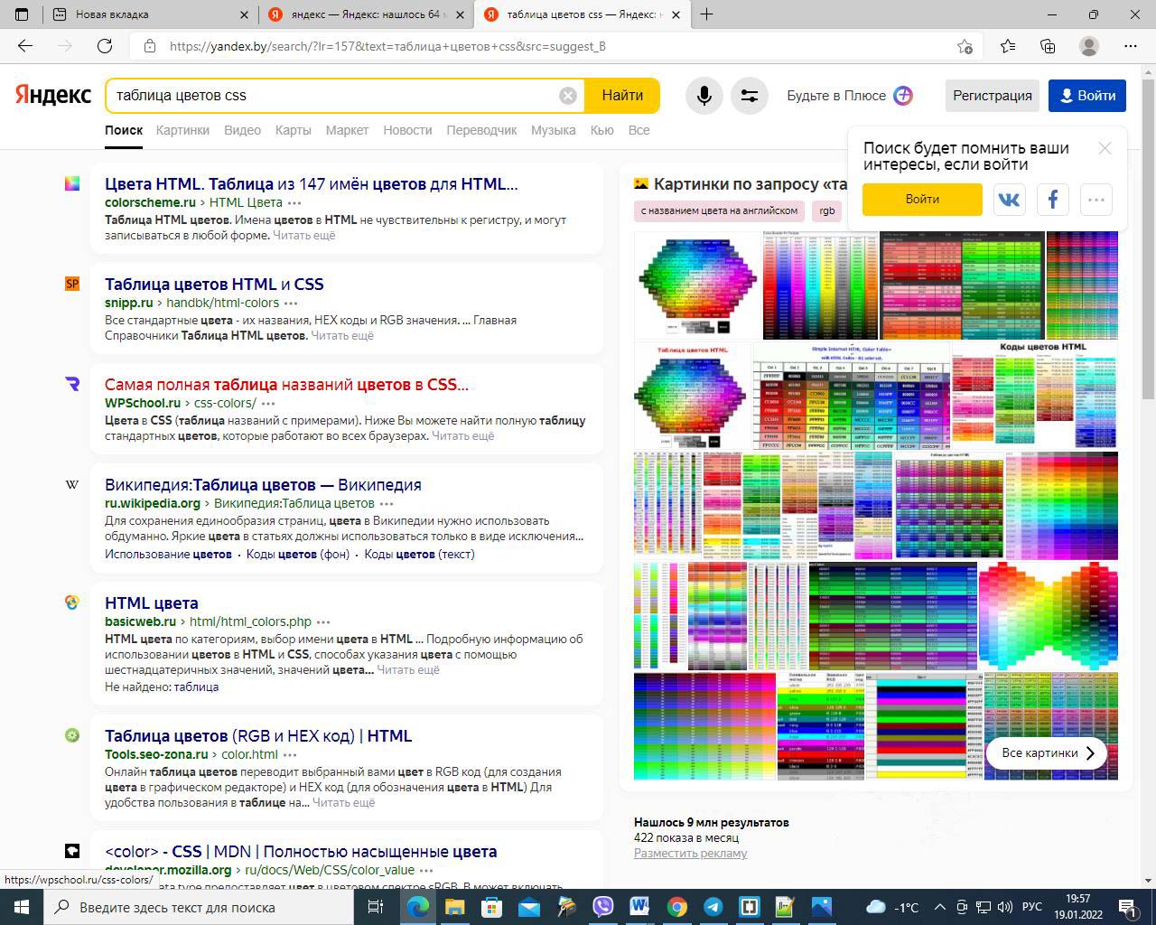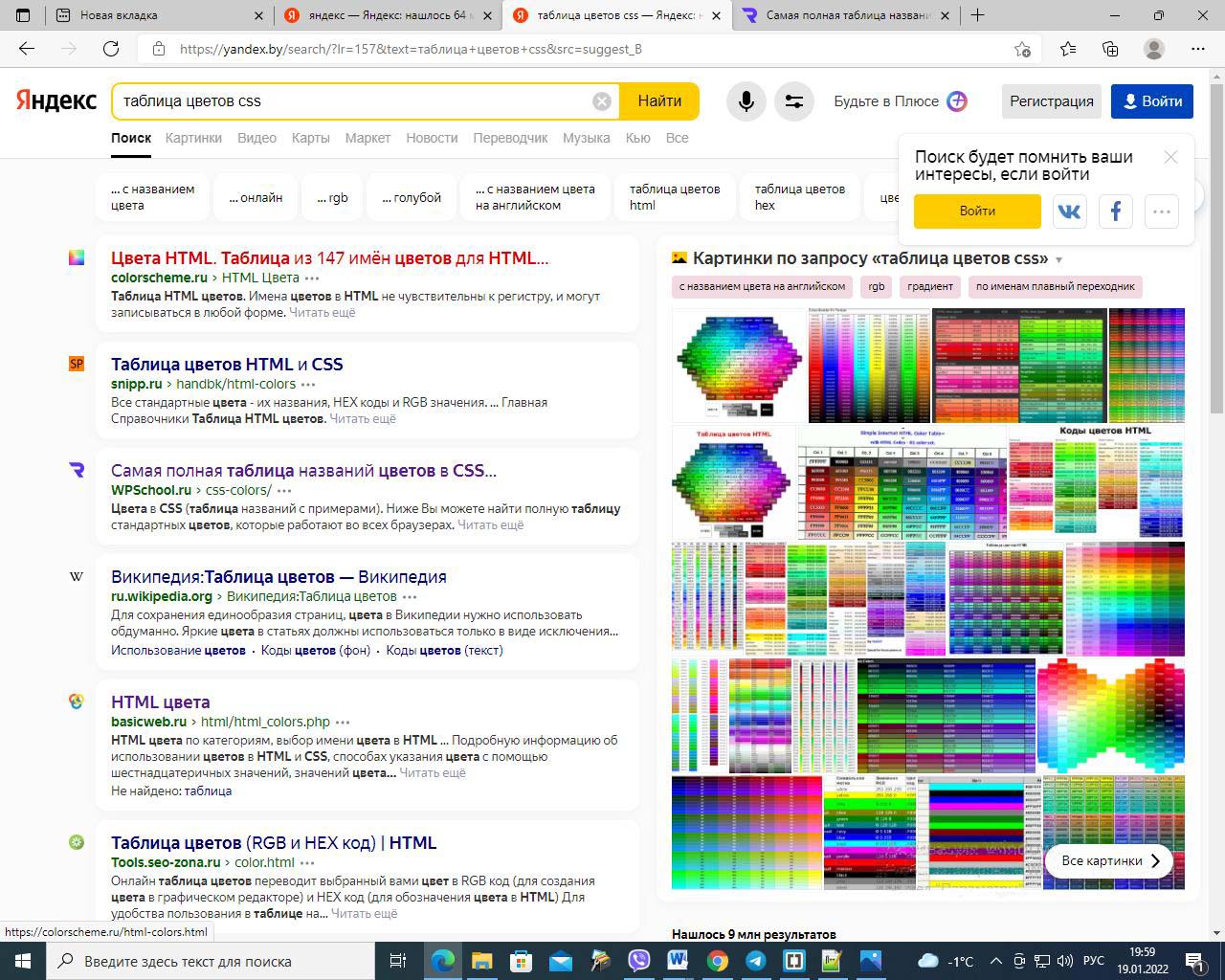 Подключим цвета css. В Яндексе набираем таблица цветов css.