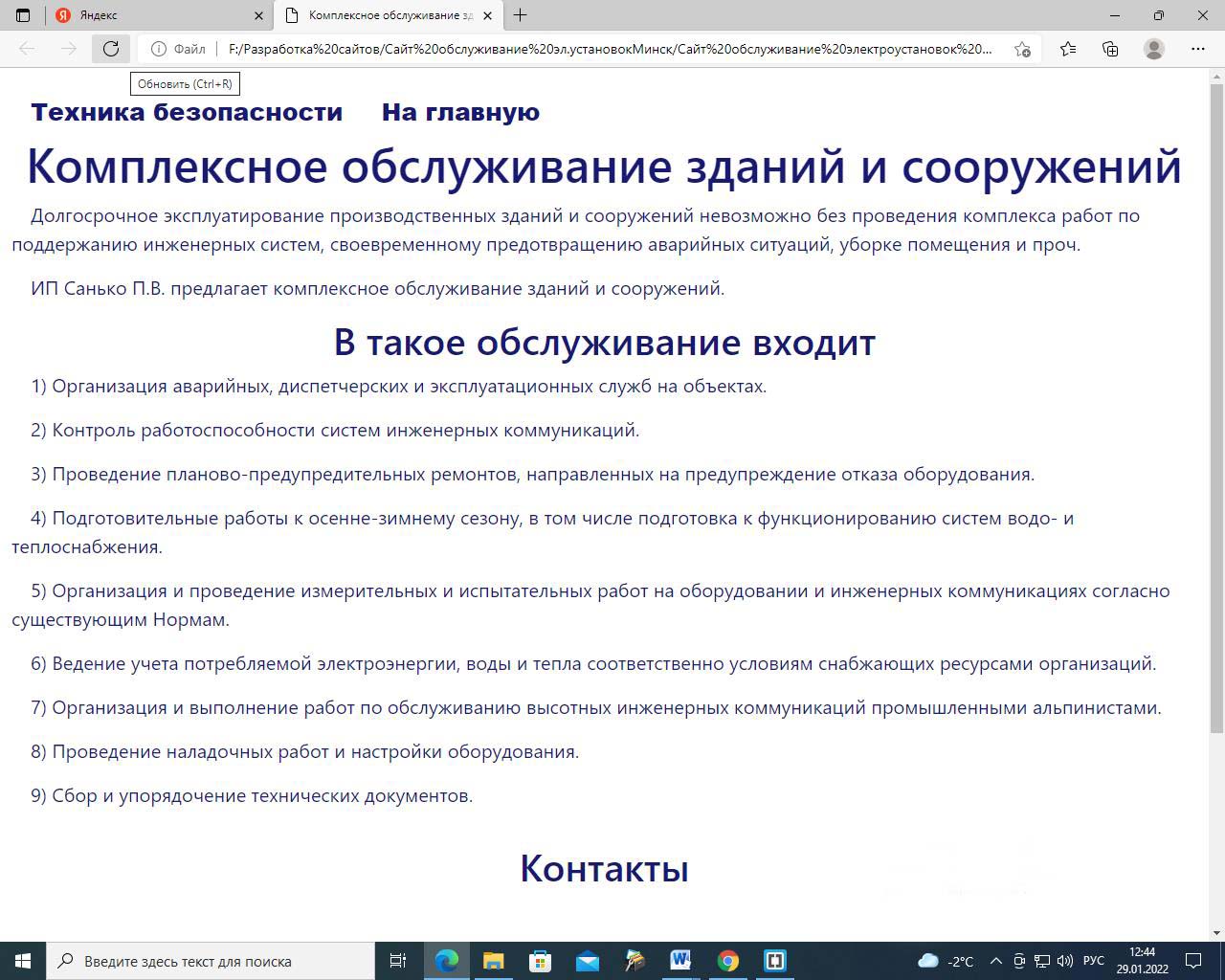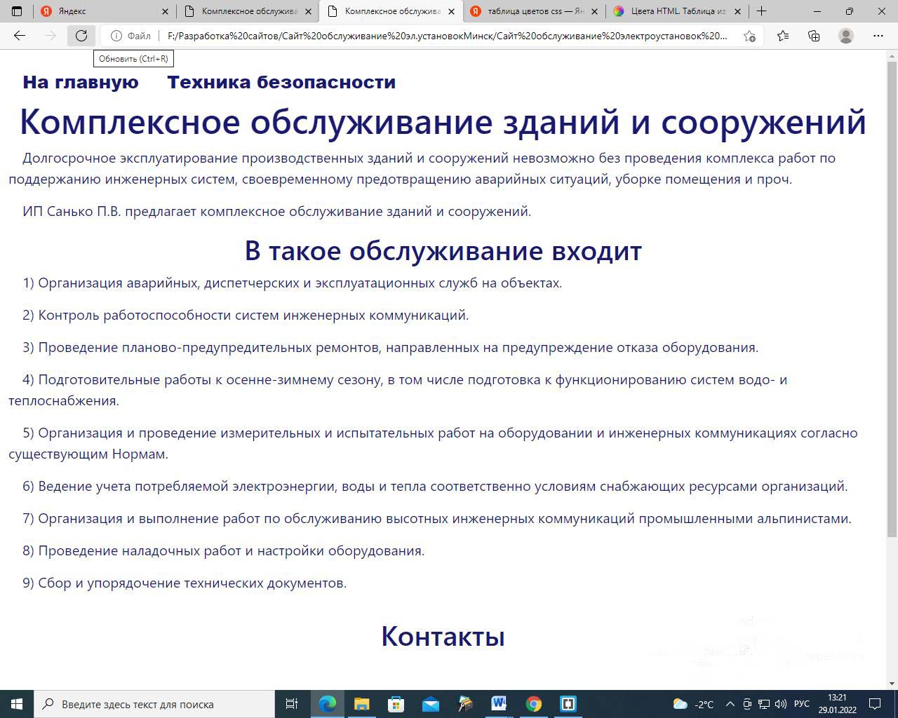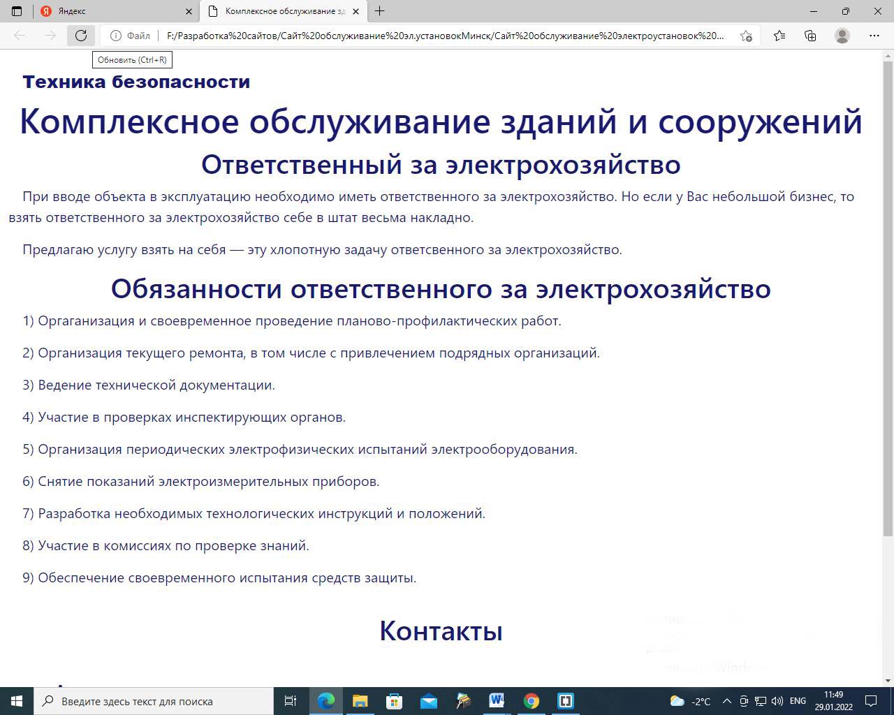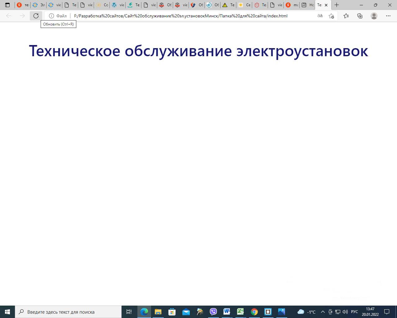 Он откроется в браузере по умолчанию и мы увидим на экране заголовок страницы техническое обслуживание электроустановок с отступом сверху, высотой текста 50px и выравниванием текста по центру заданными в файле css.