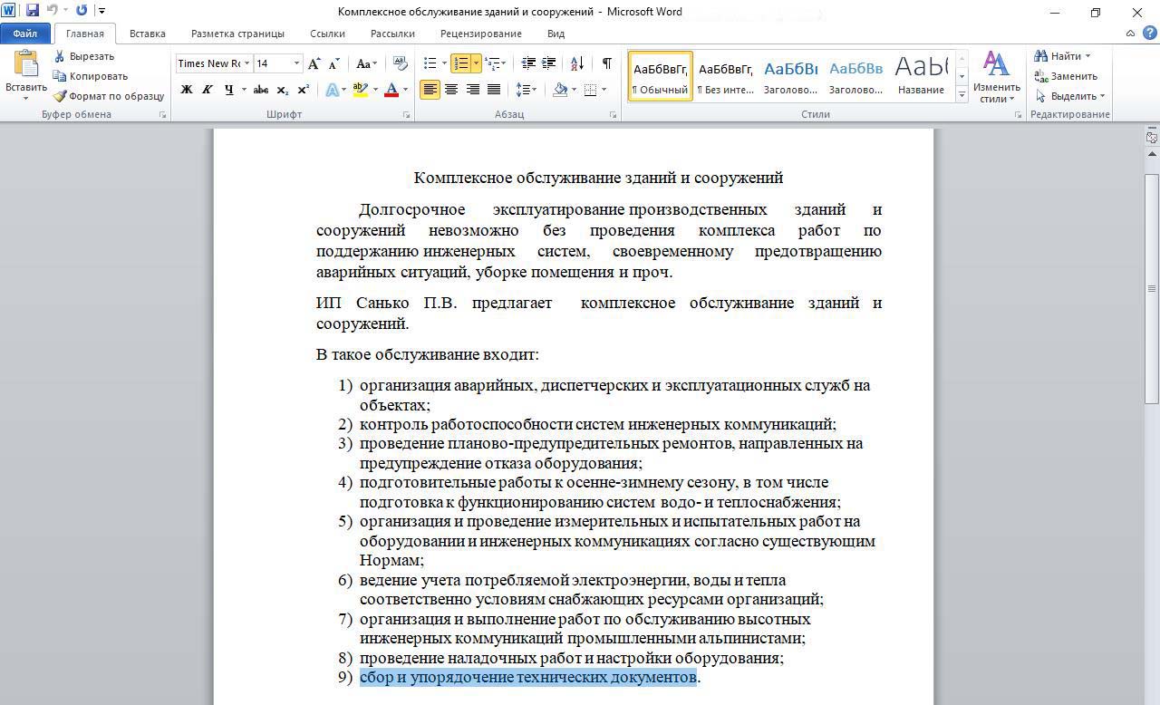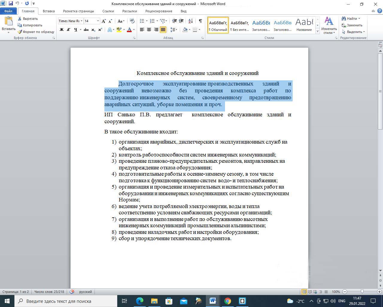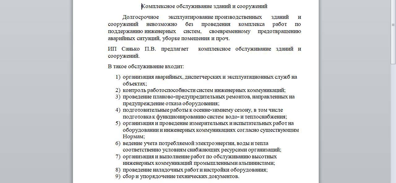 Внутри которого поместим заранее заготовленный текст из ворд.