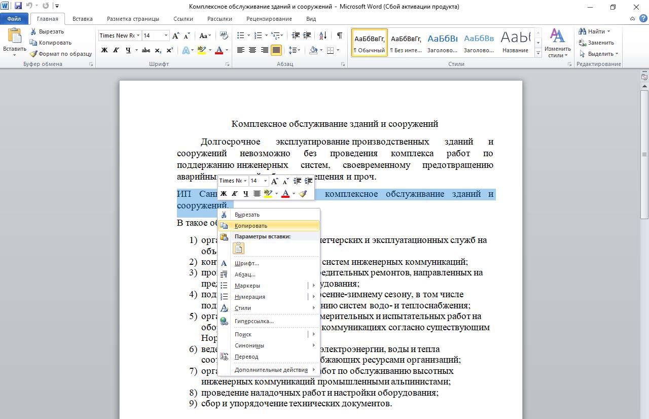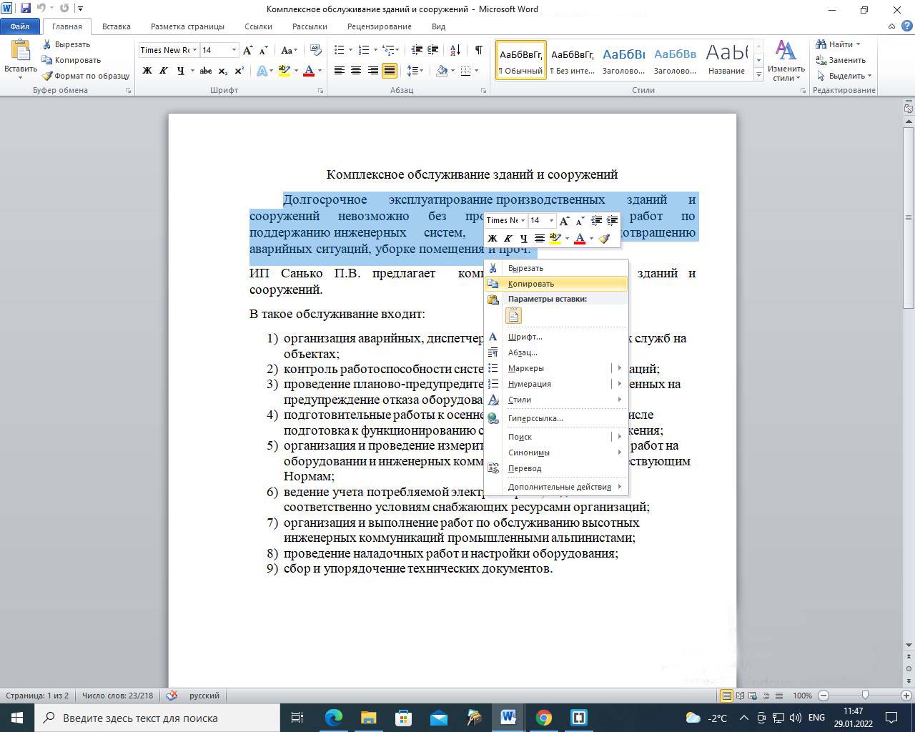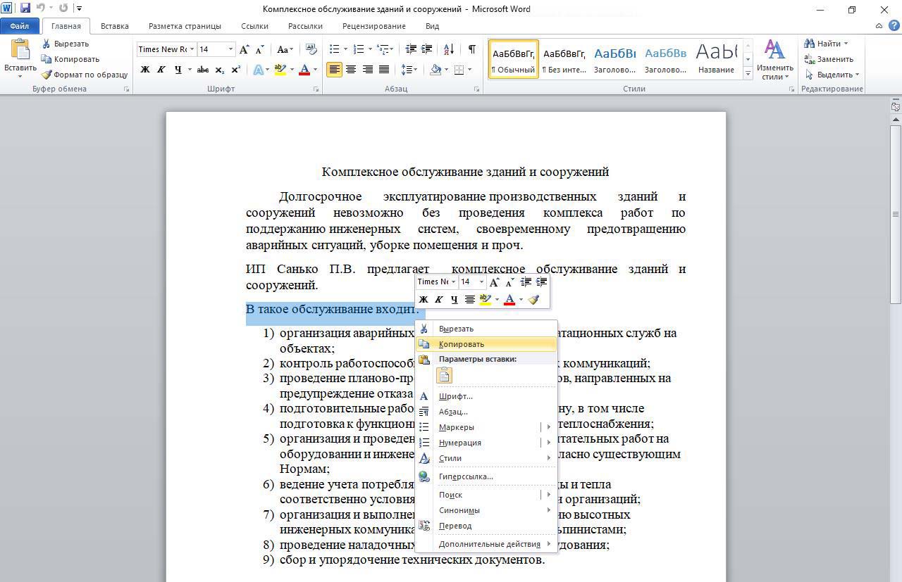 Внутри которого поместим заранее заготовленный текст из ворд.