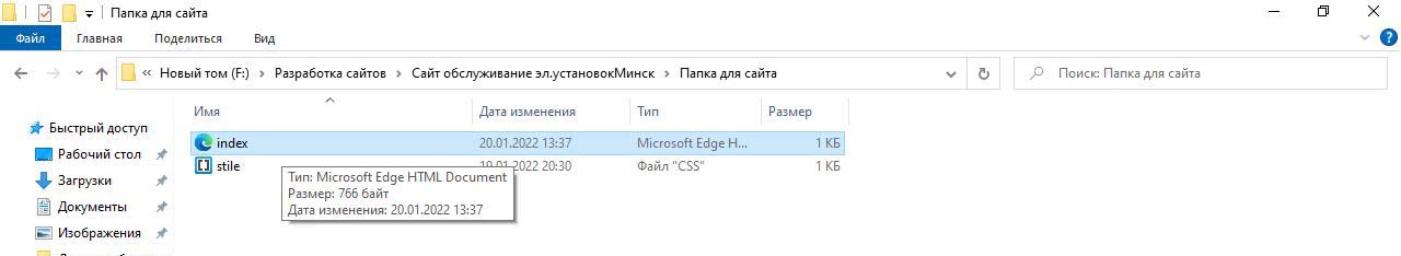 Зайдем в папку сайтом и двойным щелчком левой кнопкой мыши запустим файл index.html.