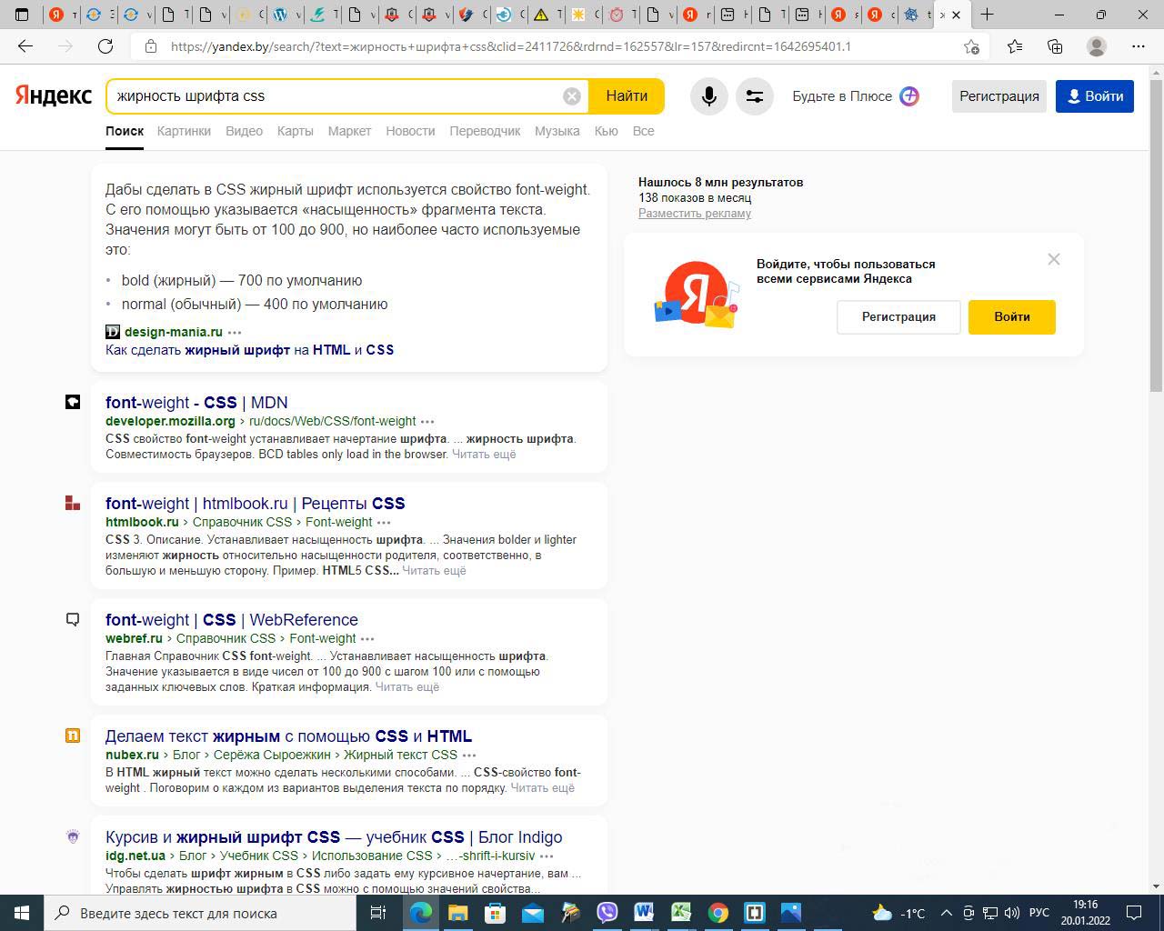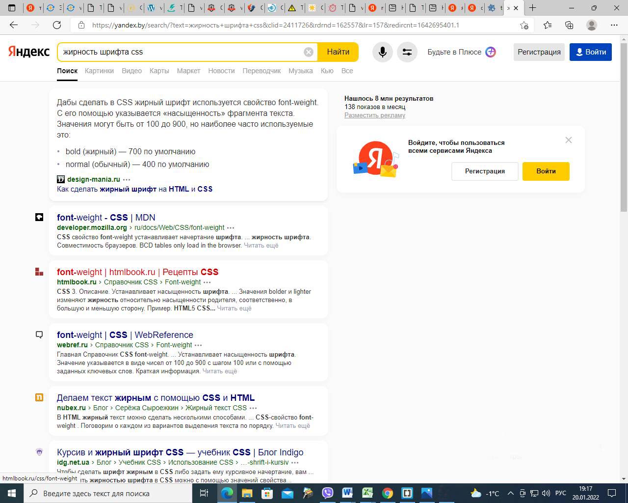 Сделаем шрифт пожирнее. Набираем в Яндекс жирность шрифта css.