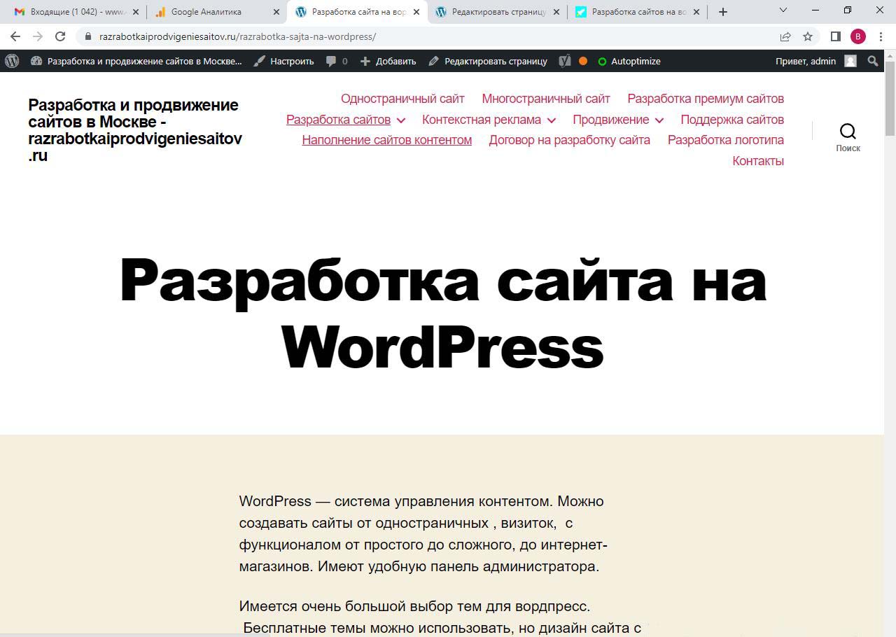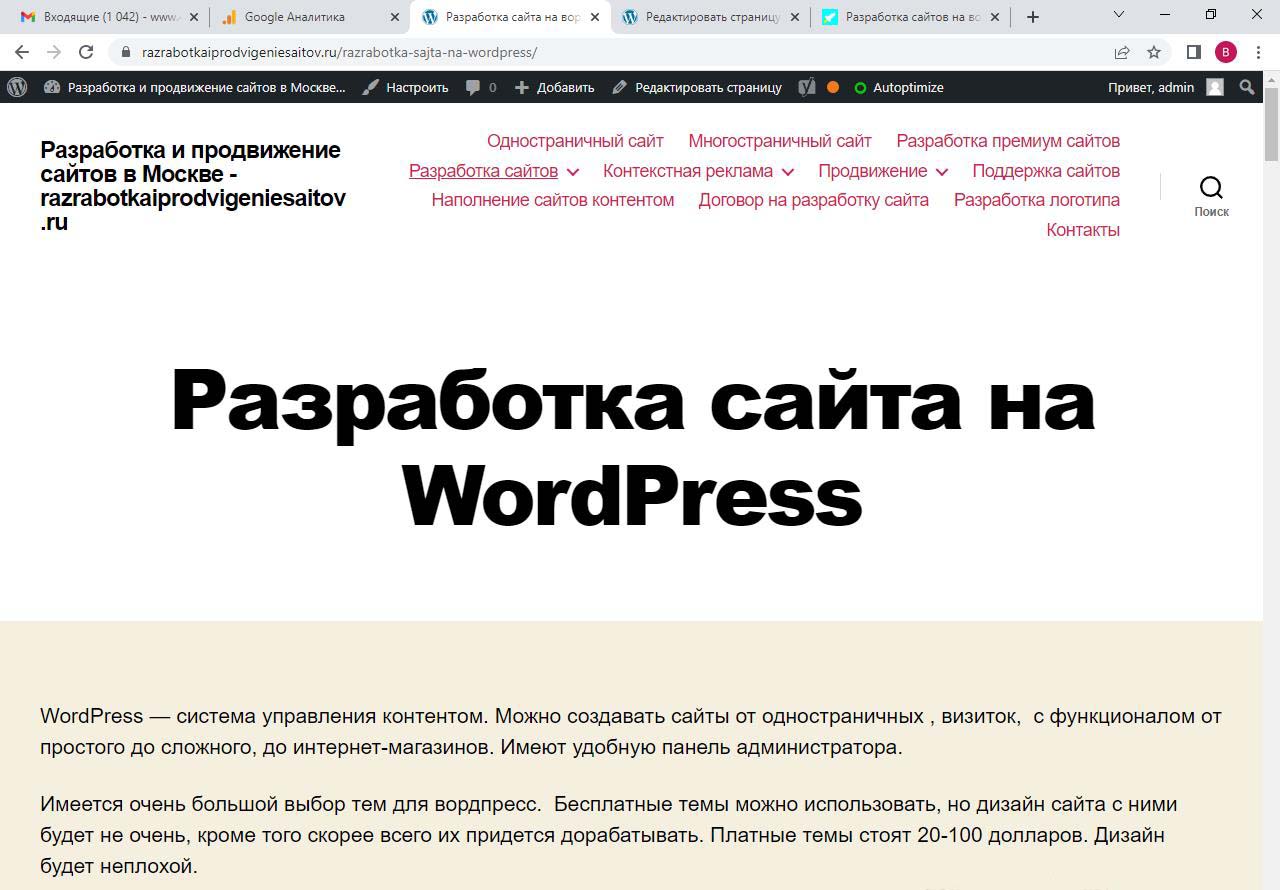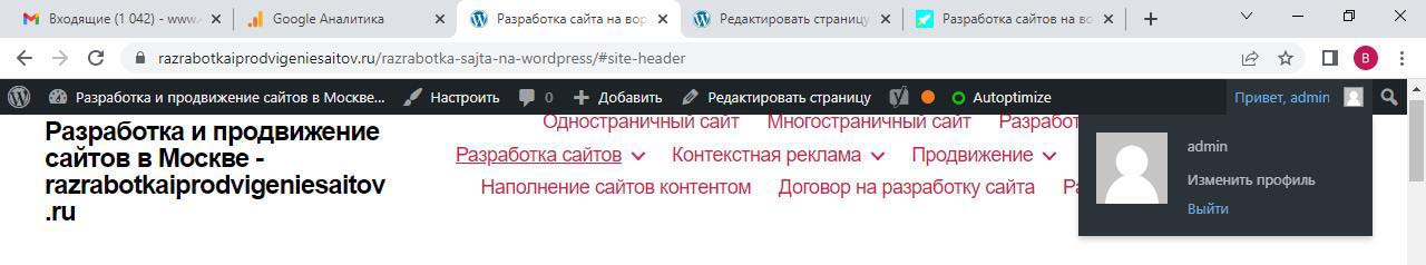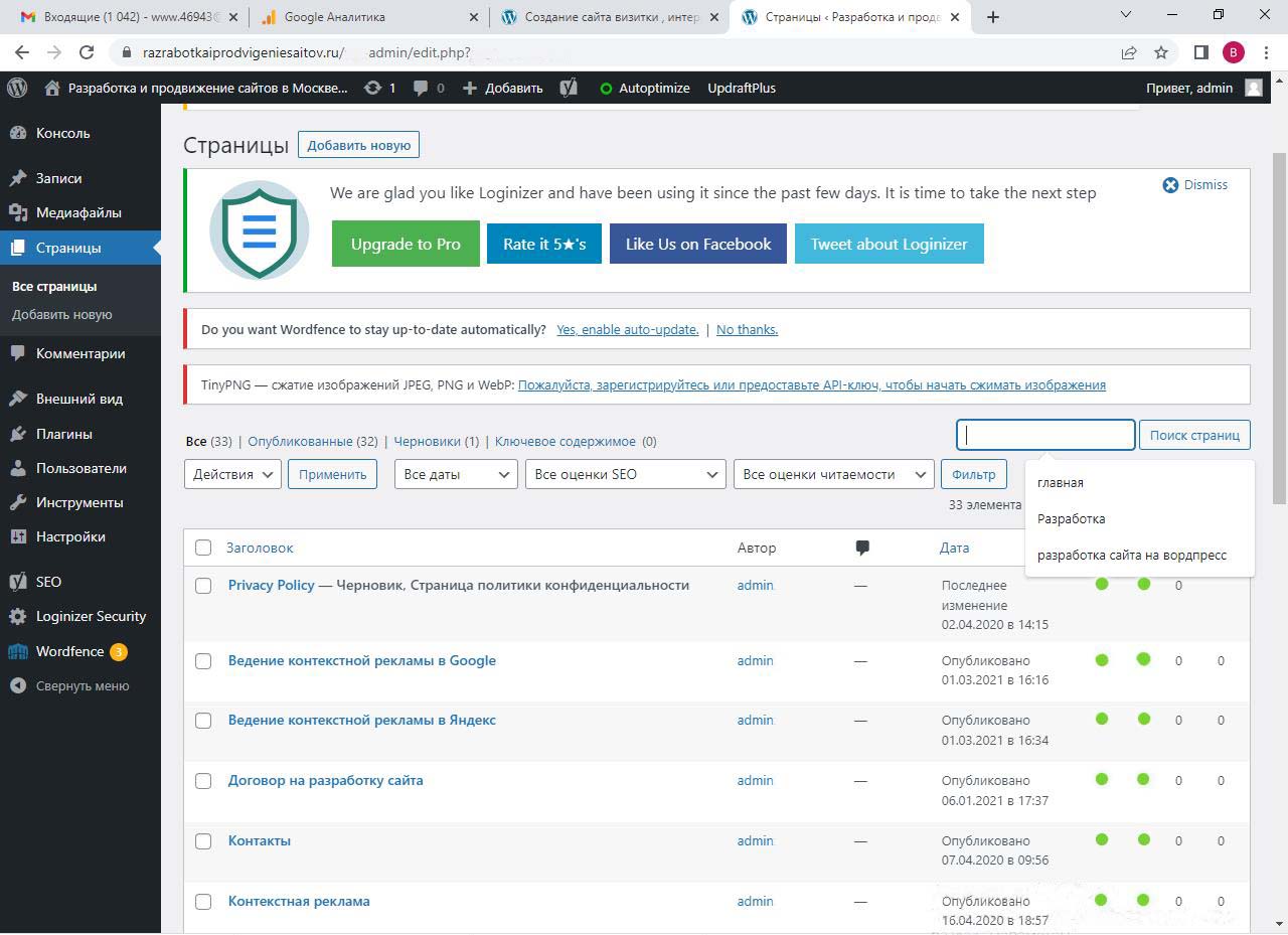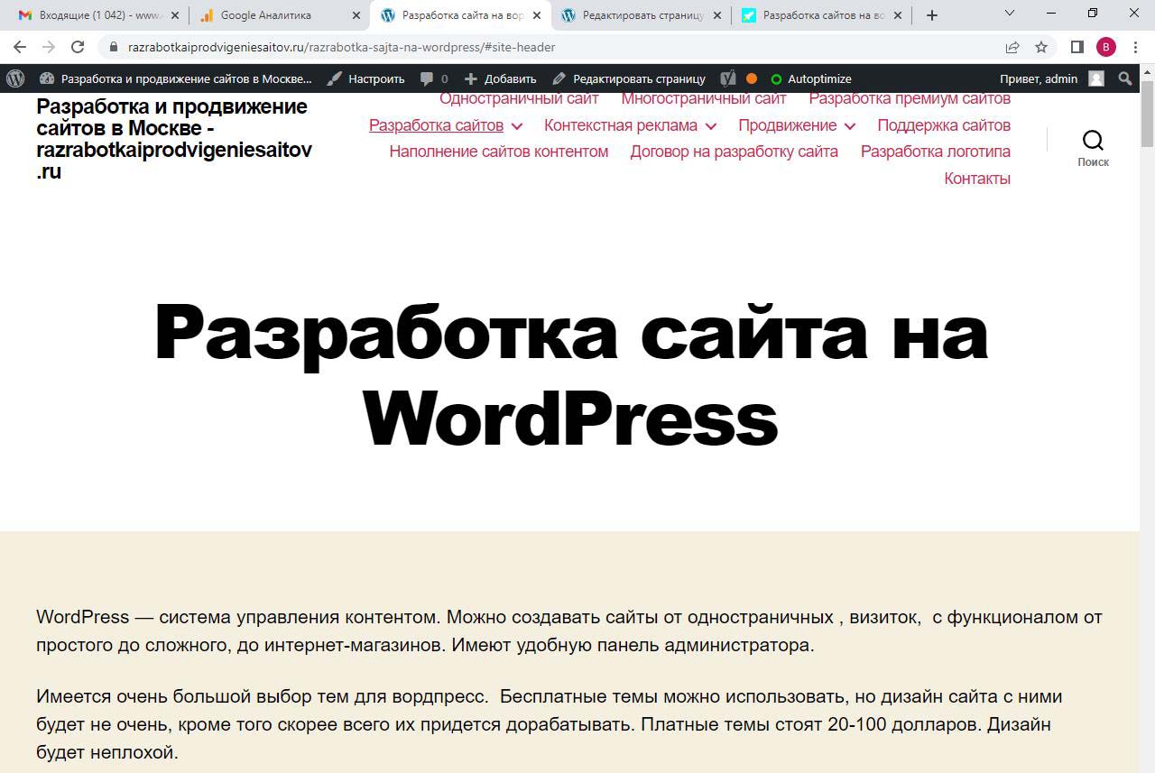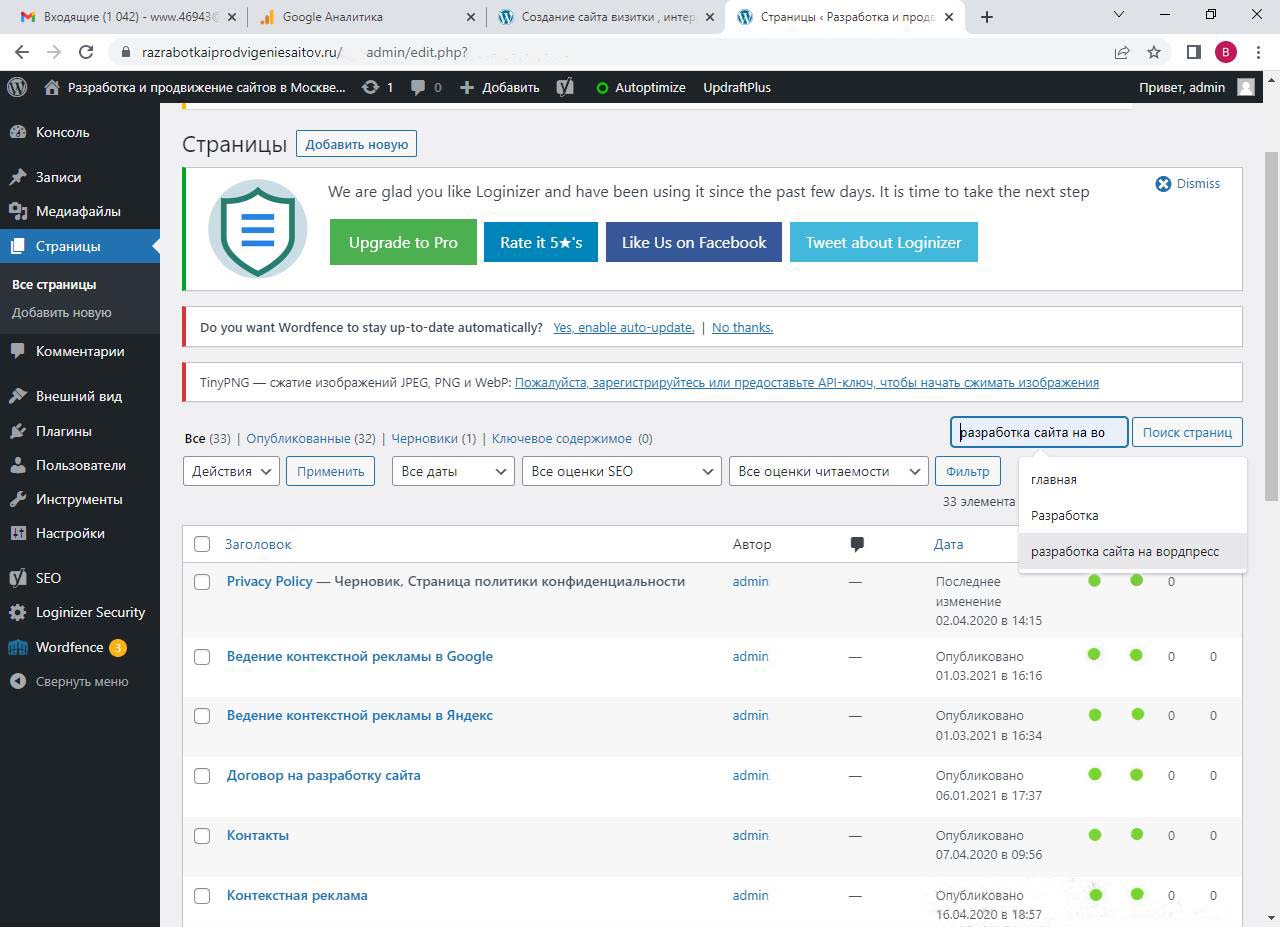 Страницу удобно найти через поиск. Найдем страницу Разработка сайта на вордпресс.
