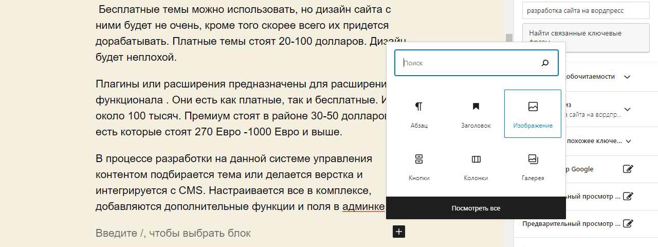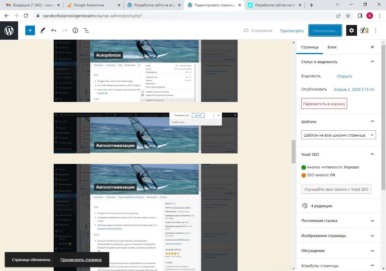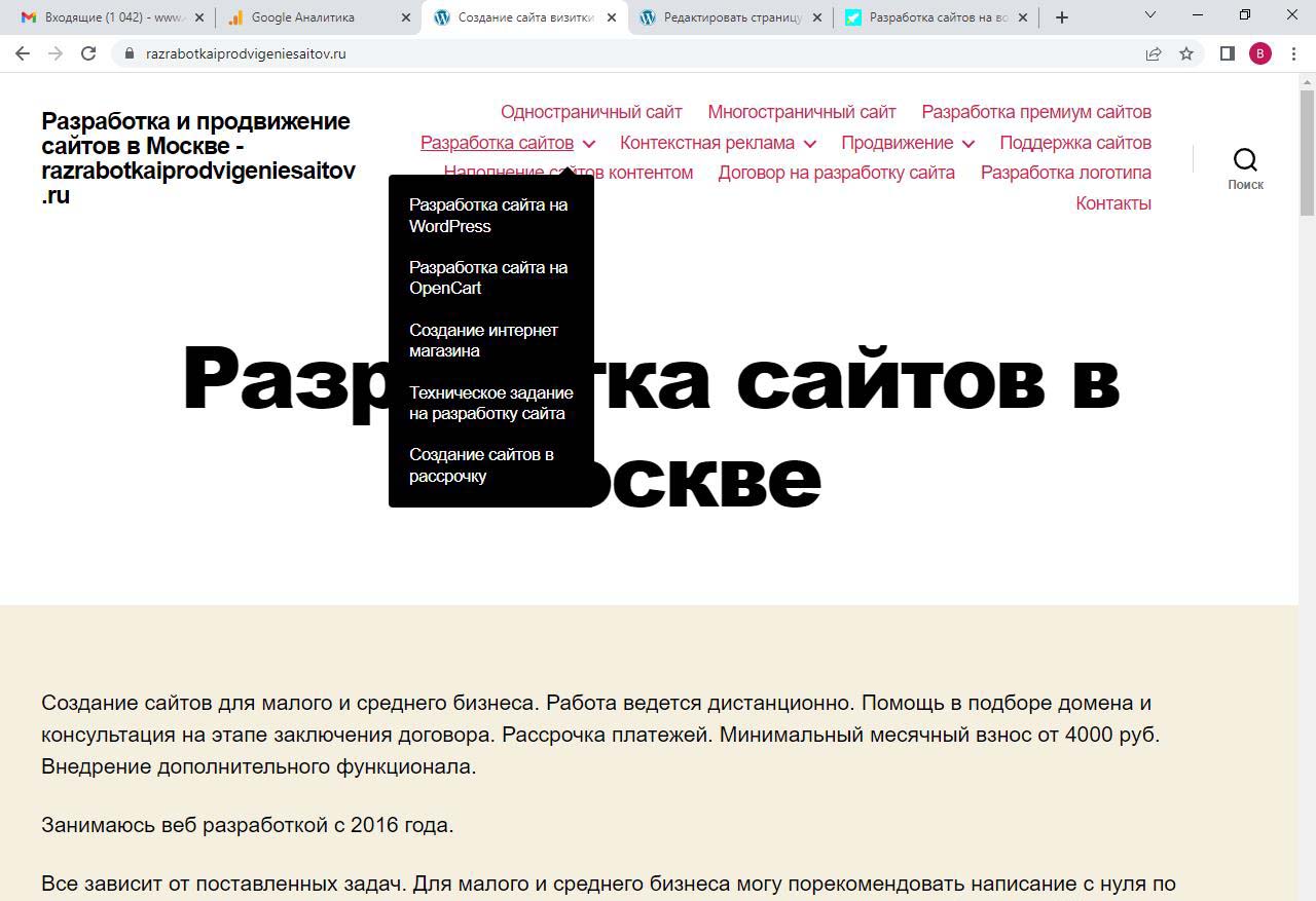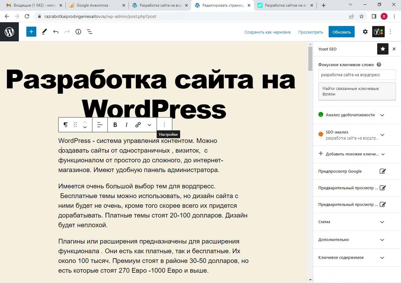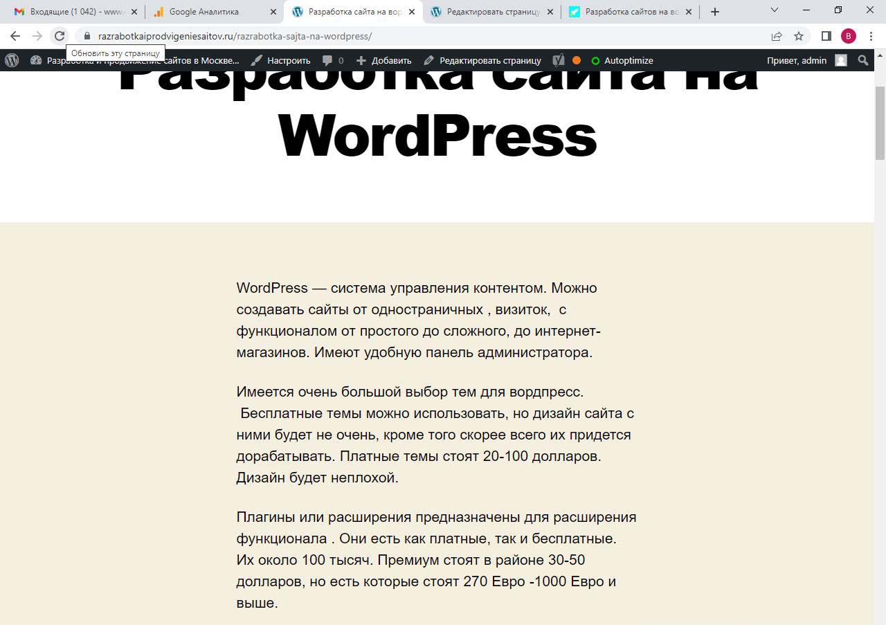 Страницу удобно найти через поиск. Найдем страницу Разработка сайта на вордпресс.