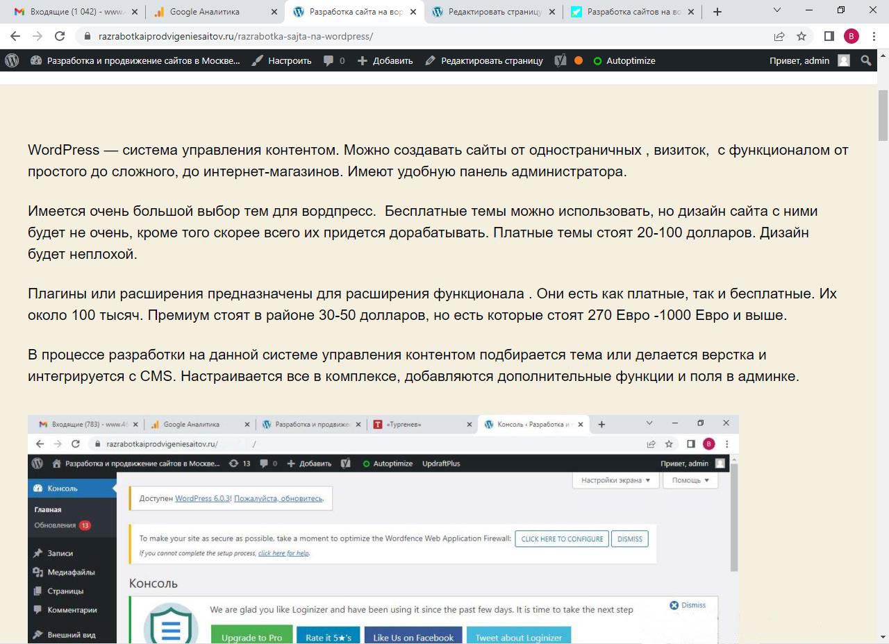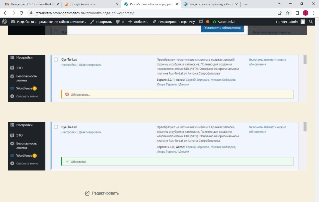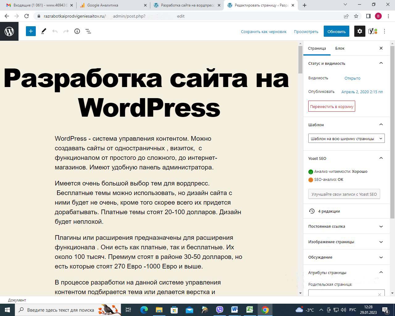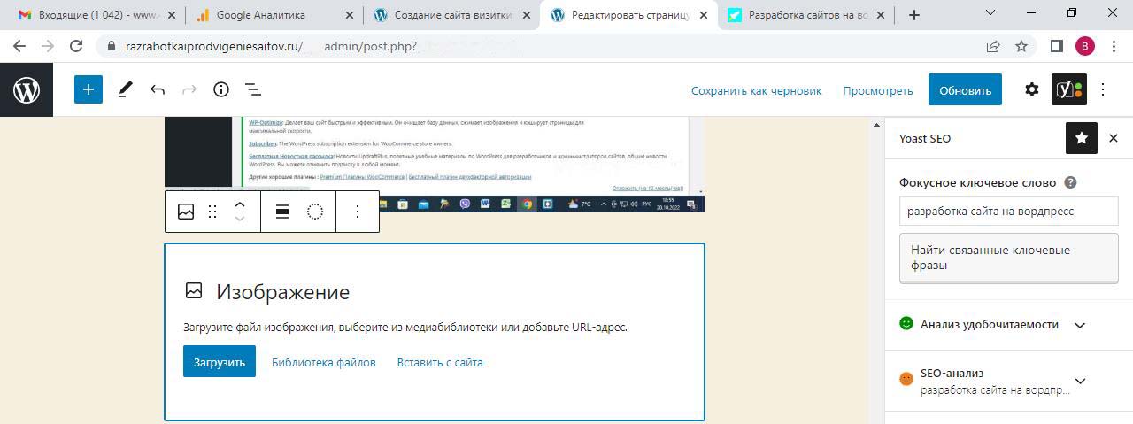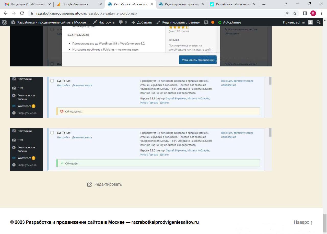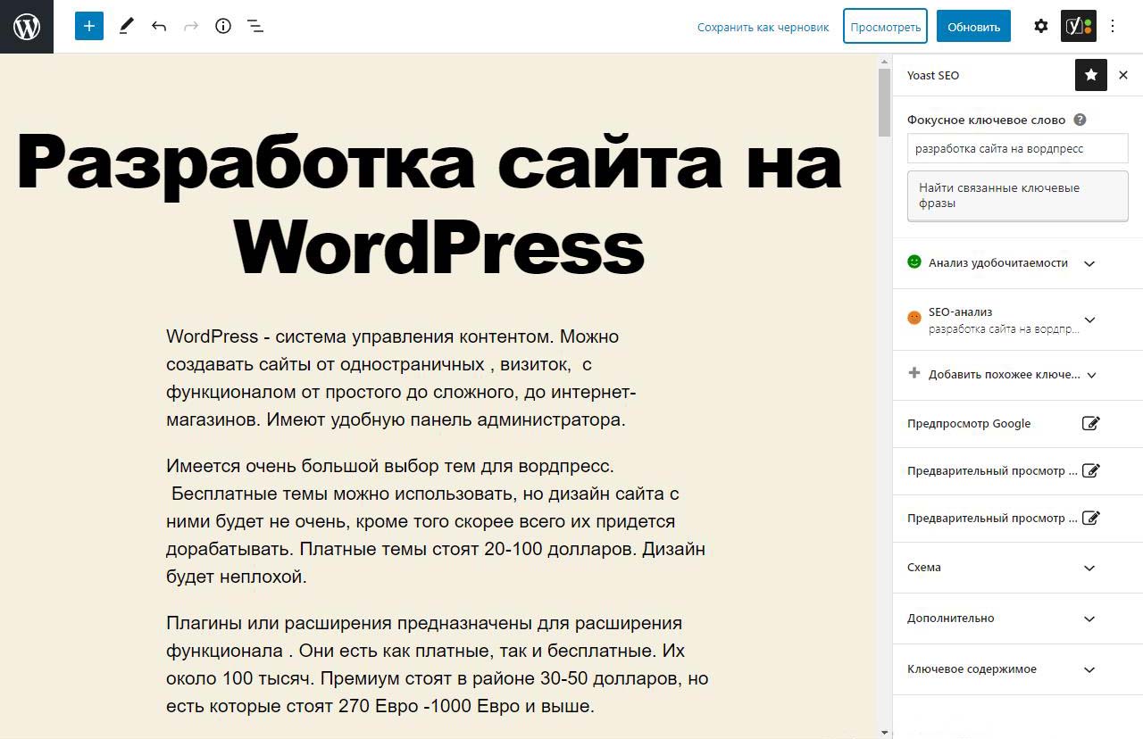 Страницу удобно найти через поиск. Найдем страницу Разработка сайта на вордпресс.