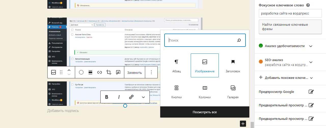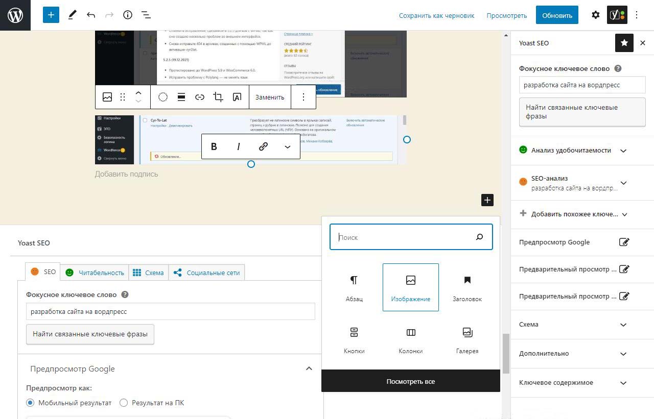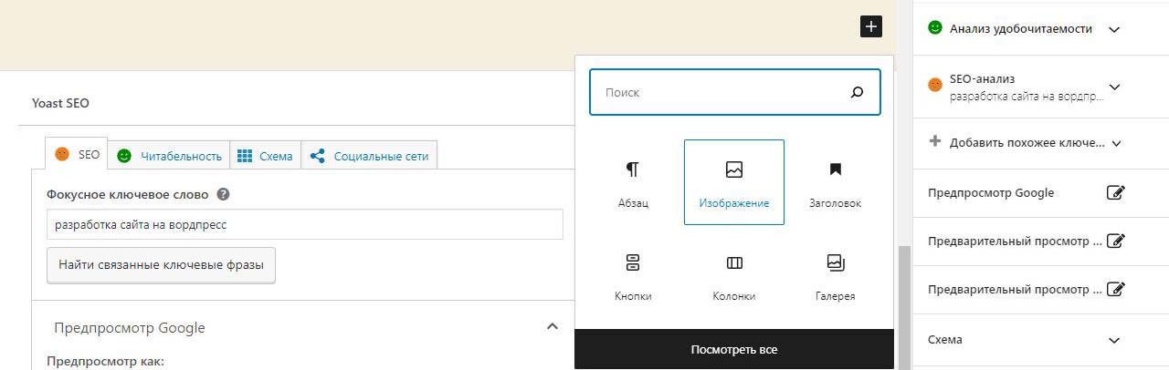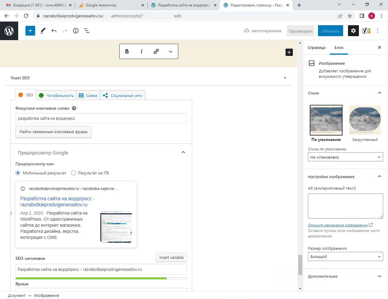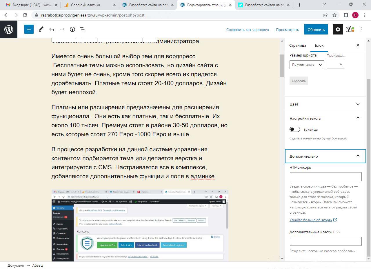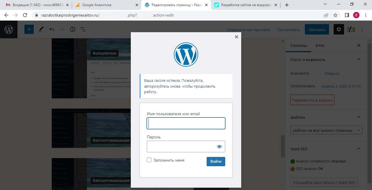 Страницу удобно найти через поиск. Найдем страницу Разработка сайта на вордпресс.