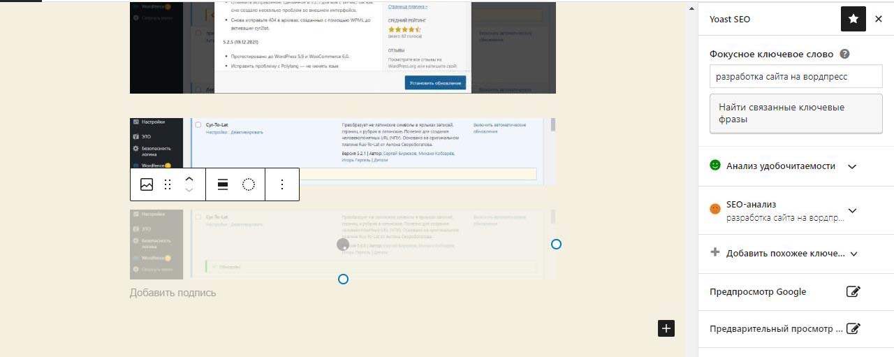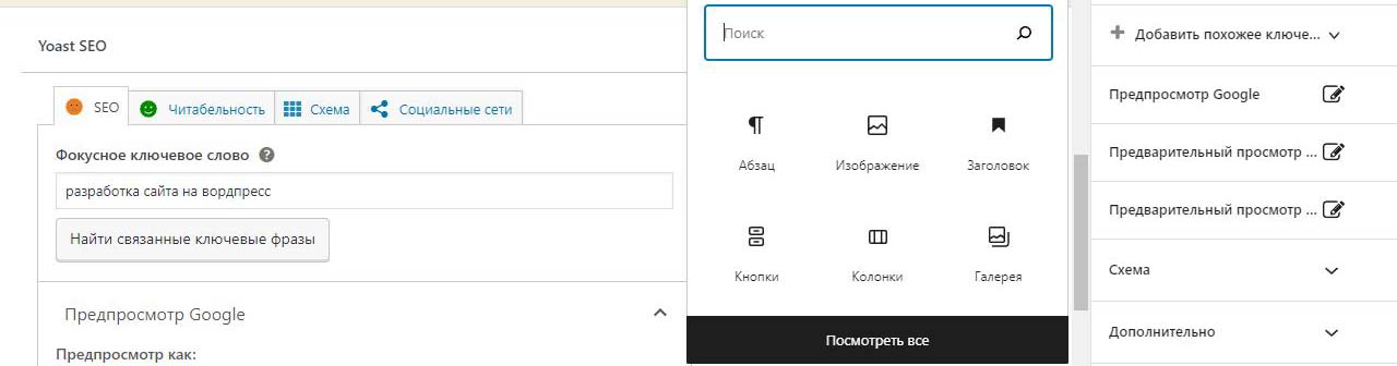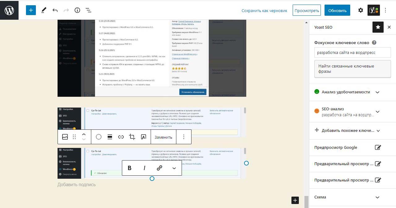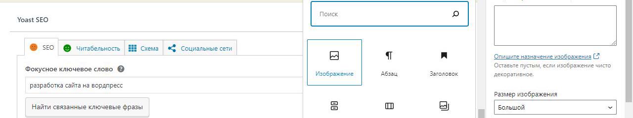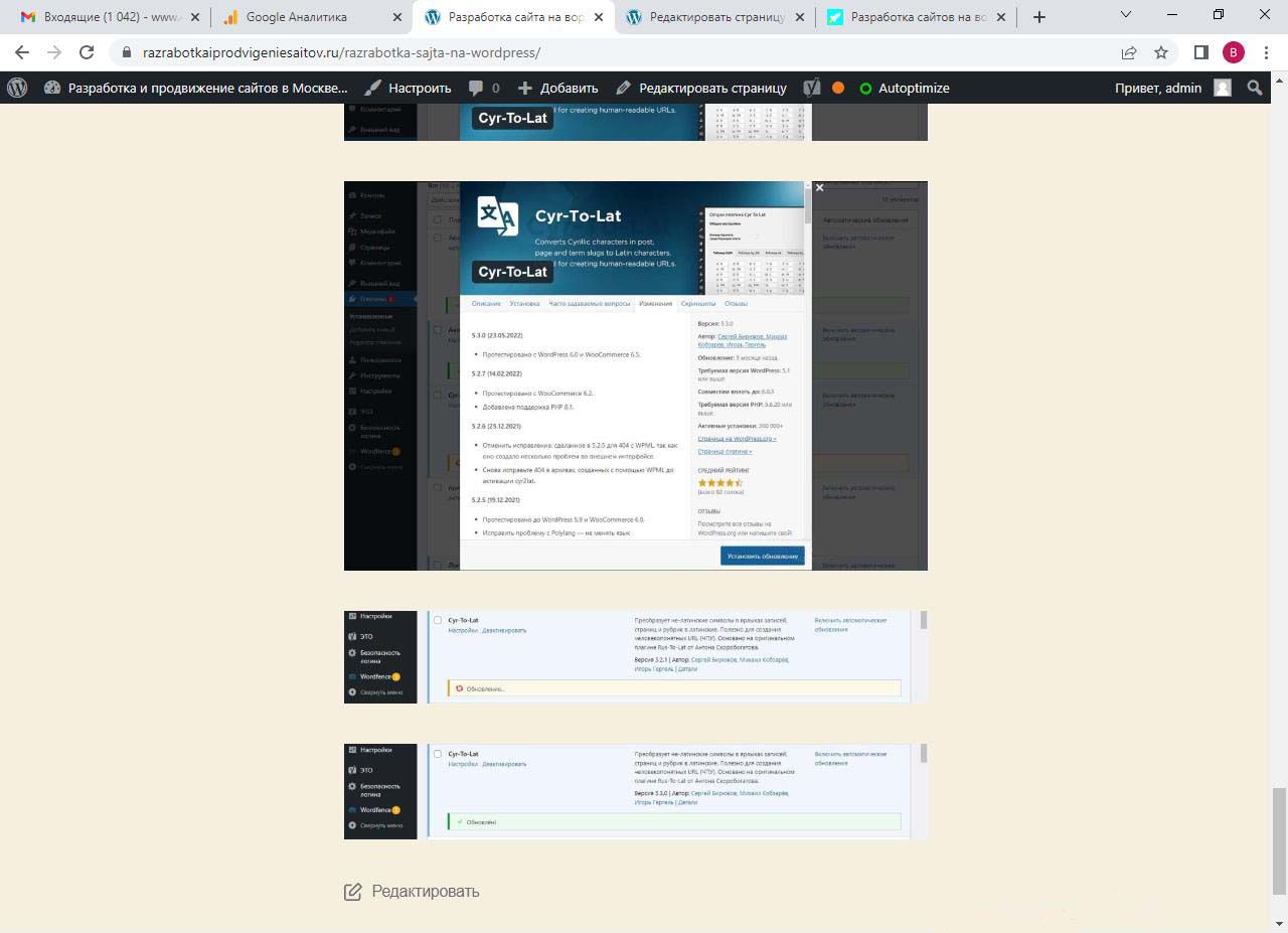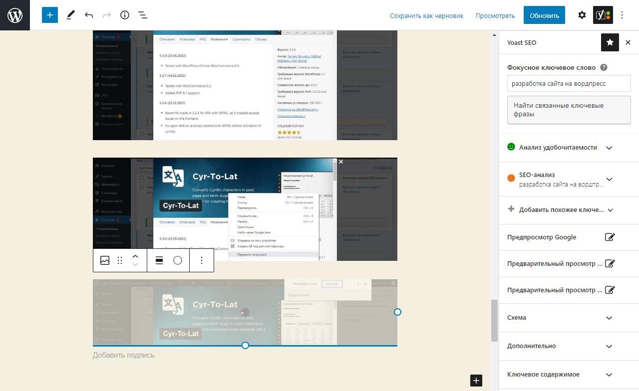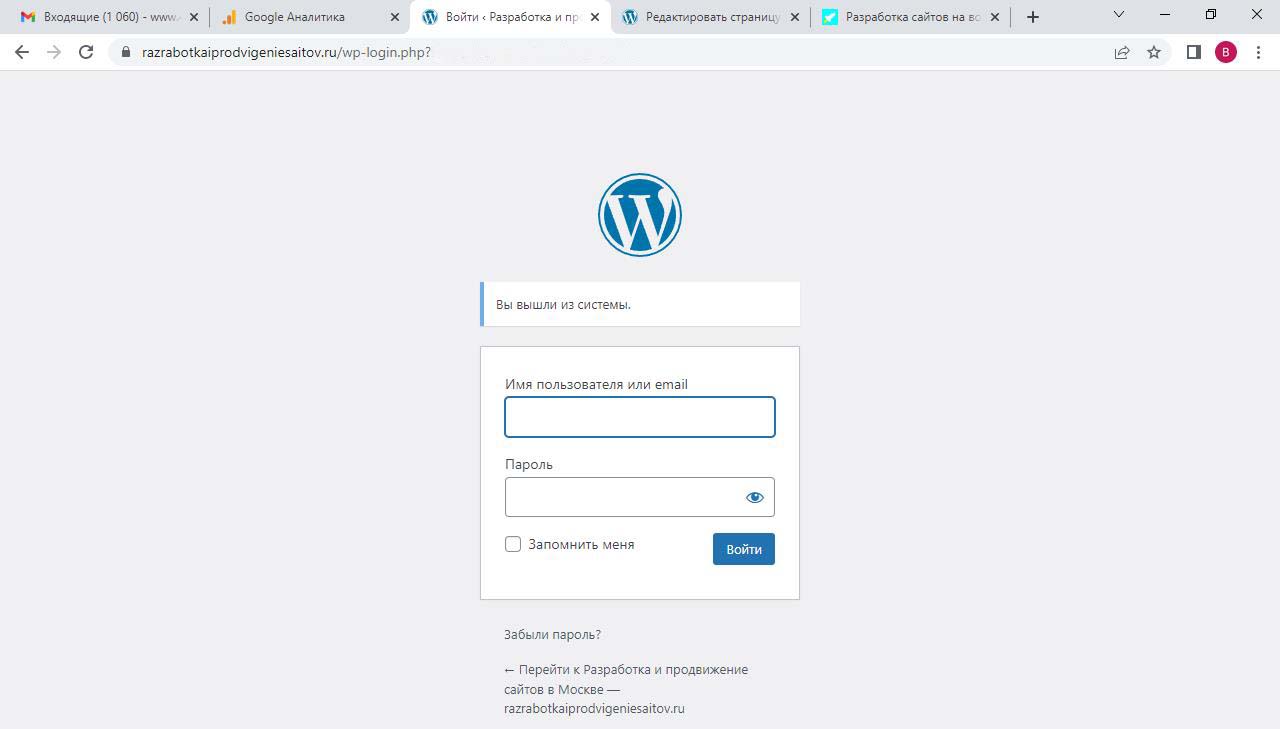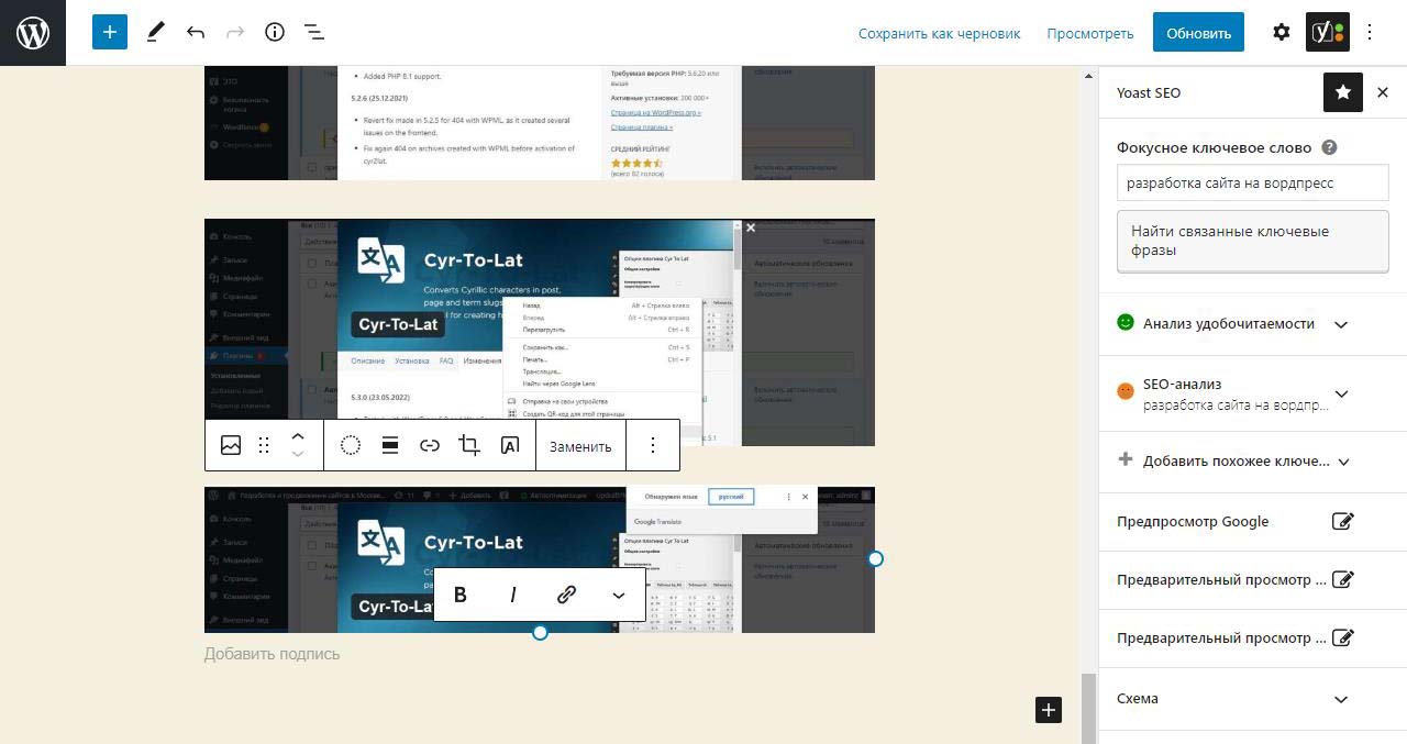 Страницу удобно найти через поиск. Найдем страницу Разработка сайта на вордпресс.