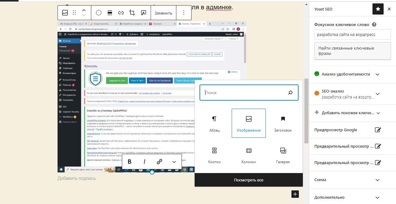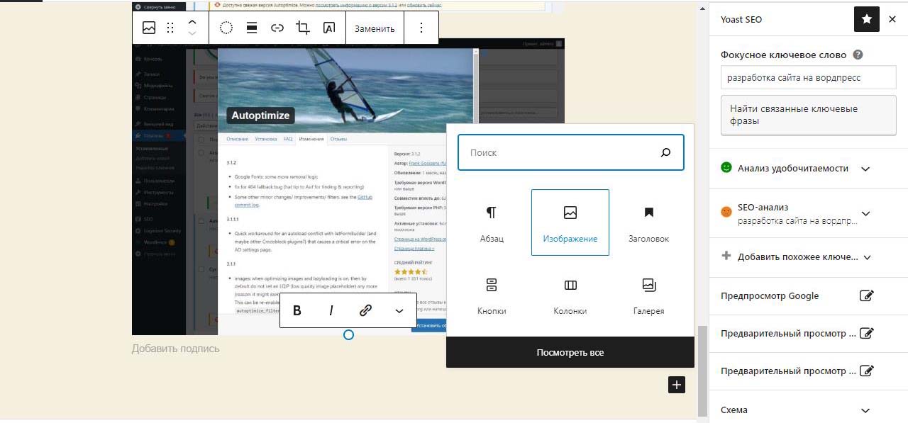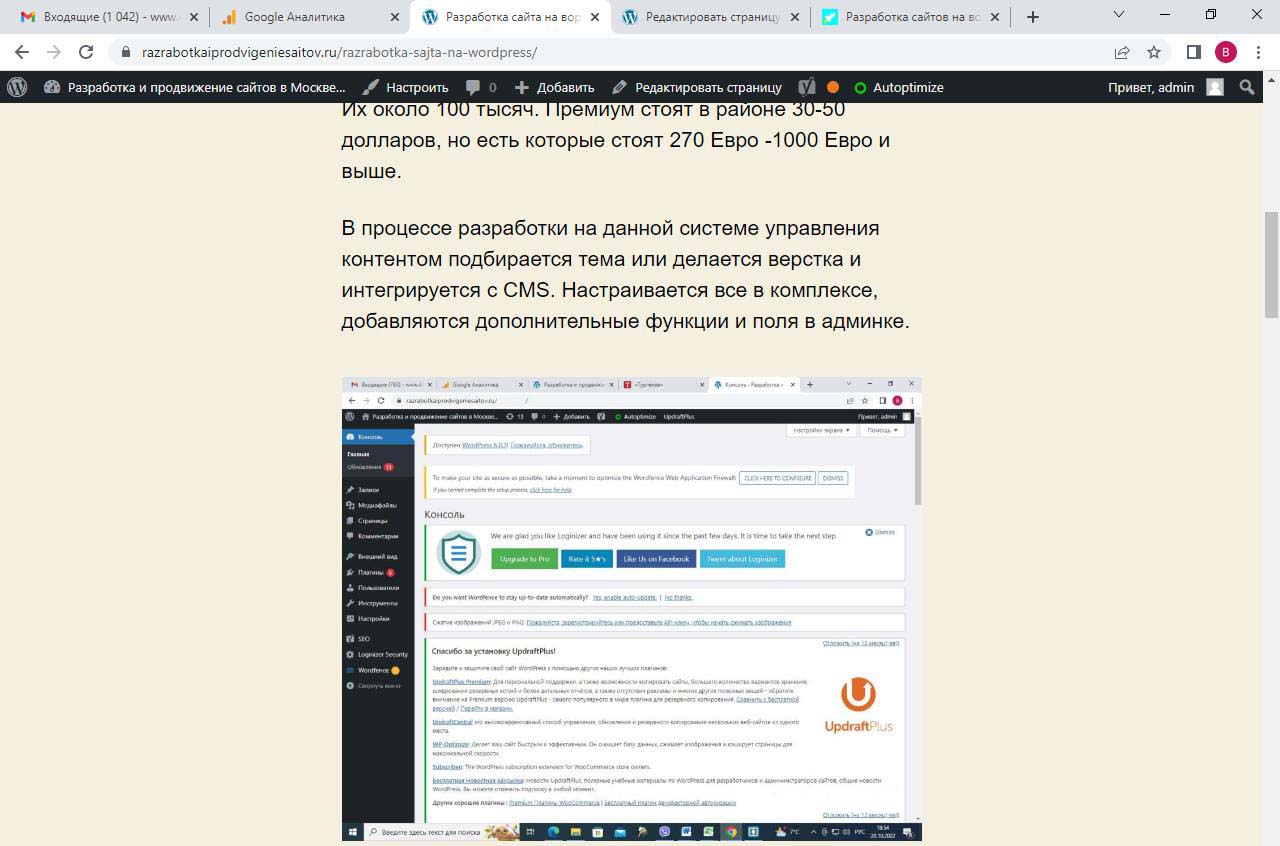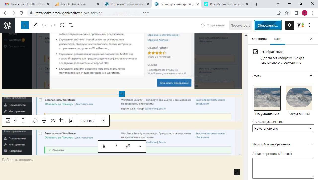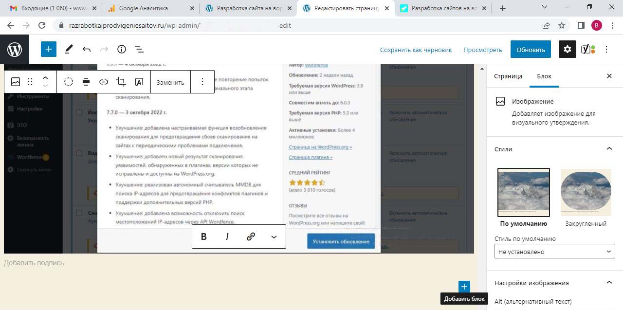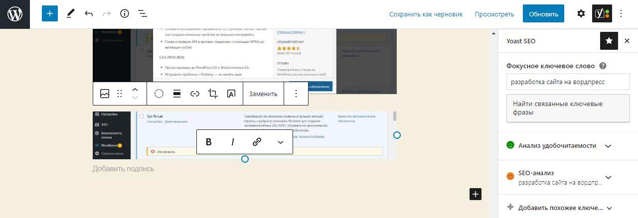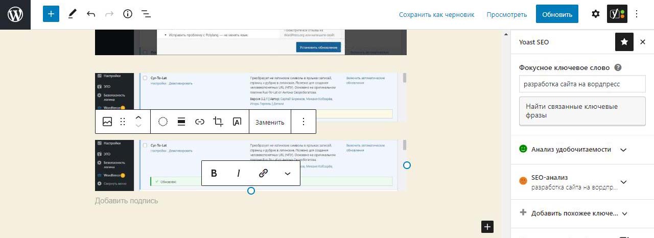 Страницу удобно найти через поиск. Найдем страницу Разработка сайта на вордпресс.