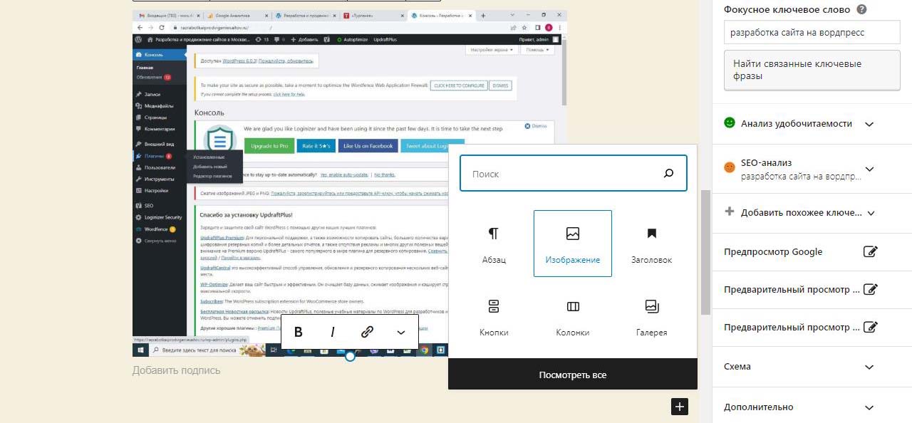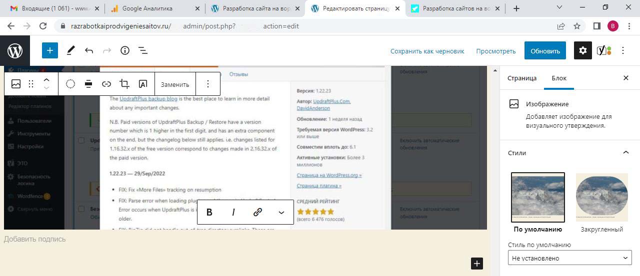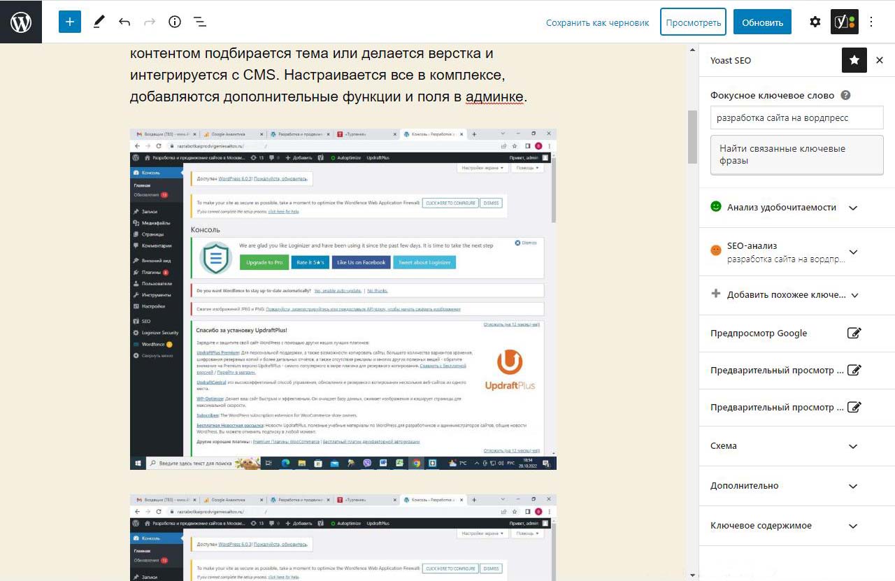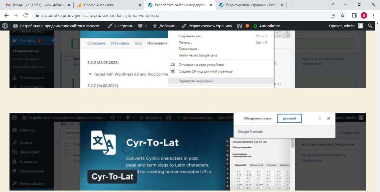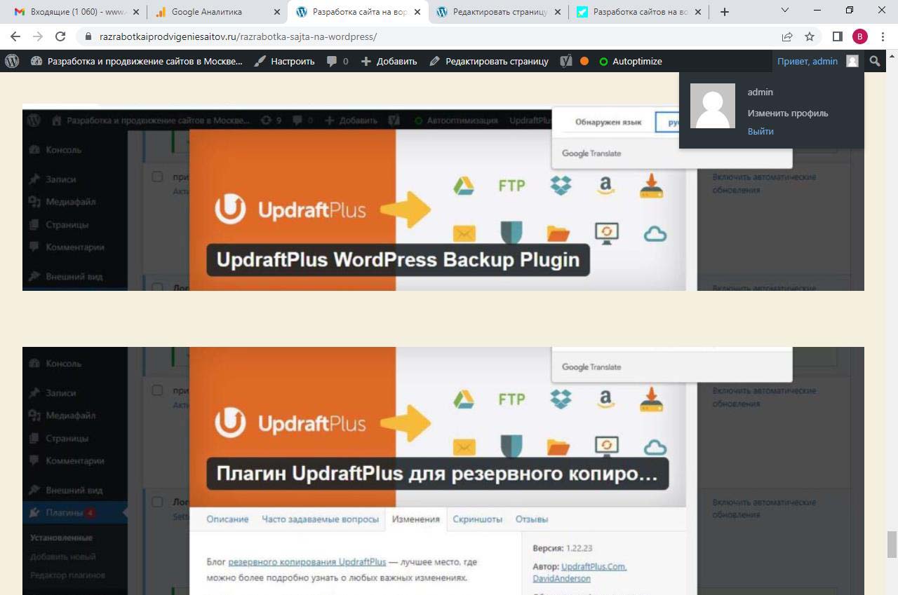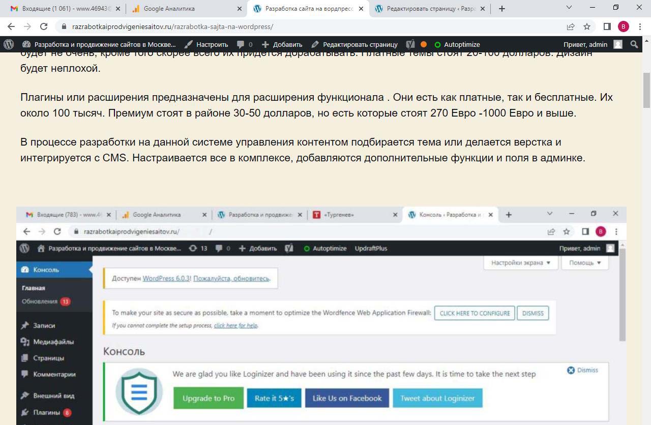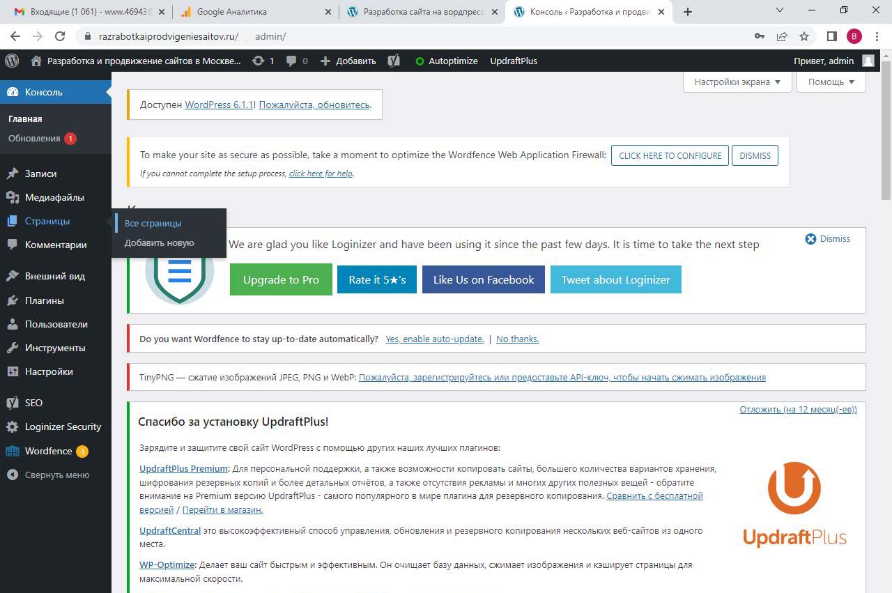 Страницу удобно найти через поиск. Найдем страницу Разработка сайта на вордпресс.