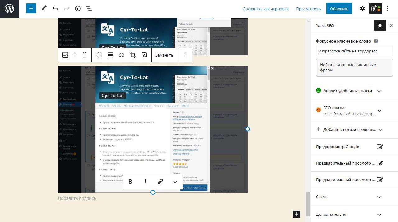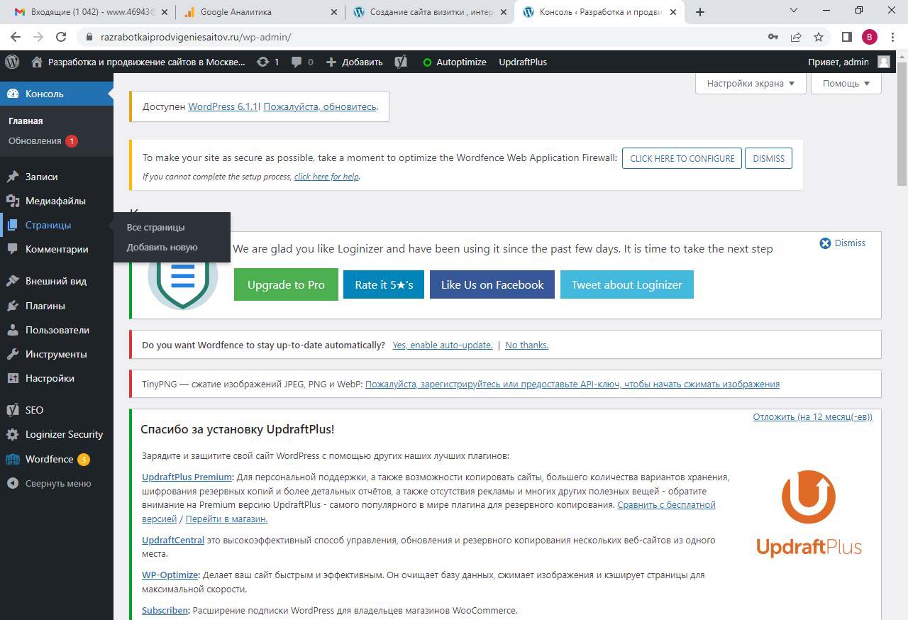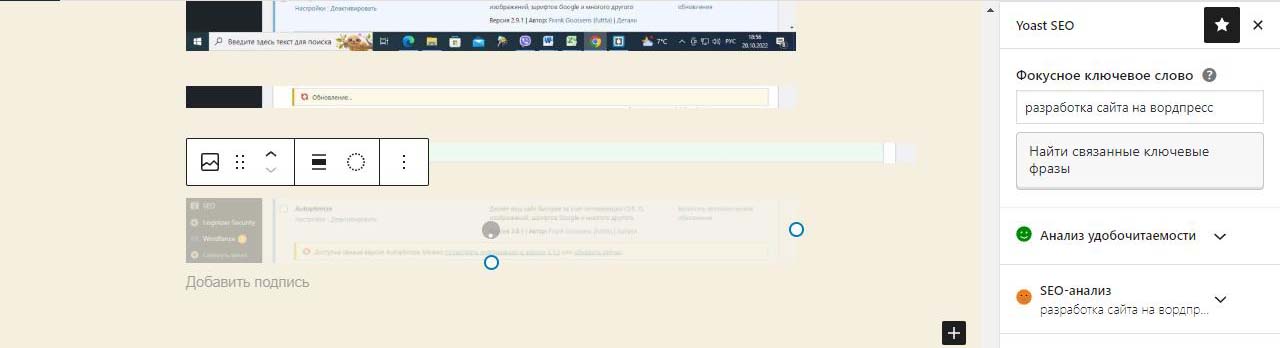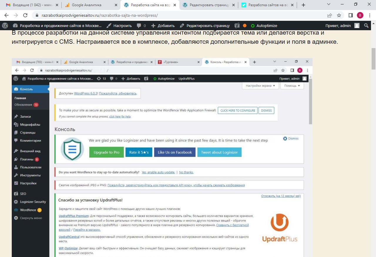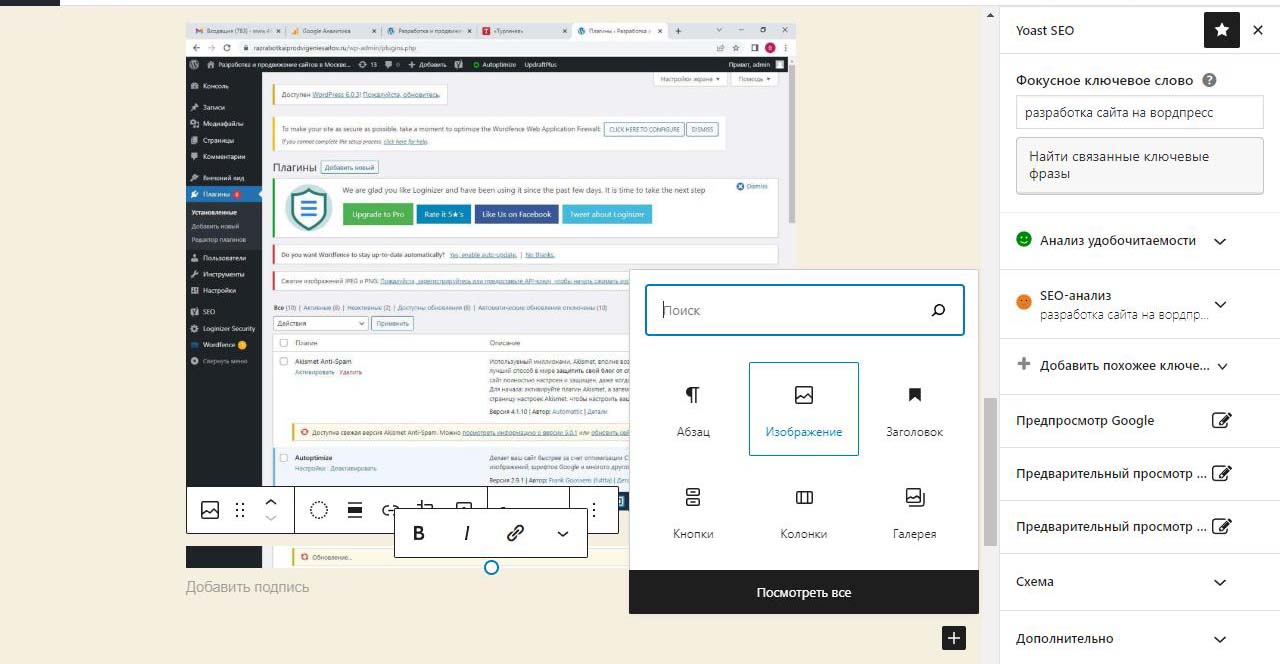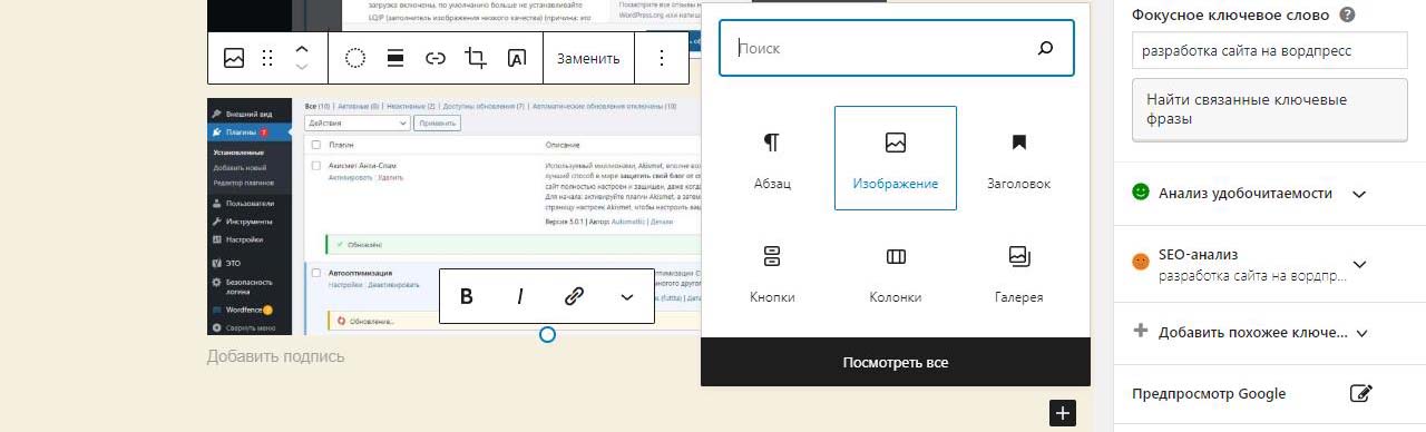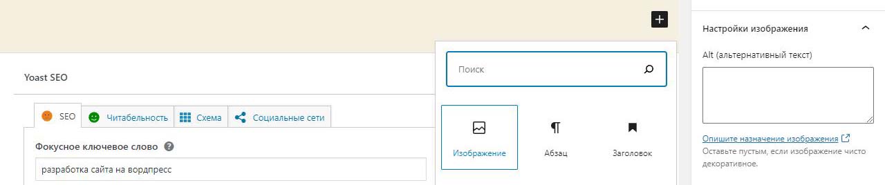 Страницу удобно найти через поиск. Найдем страницу Разработка сайта на вордпресс.