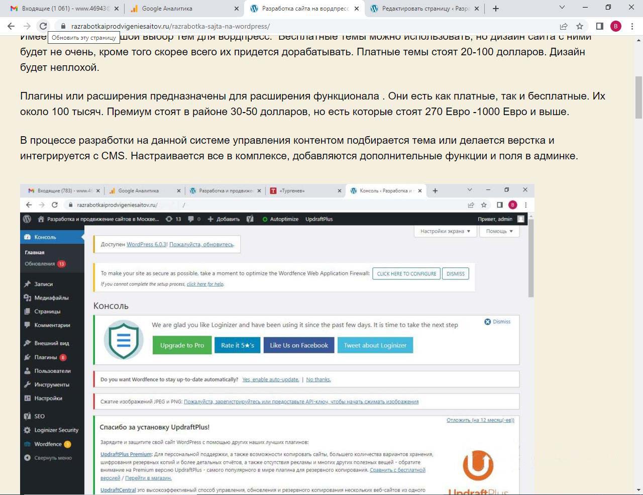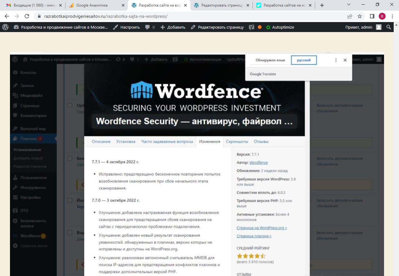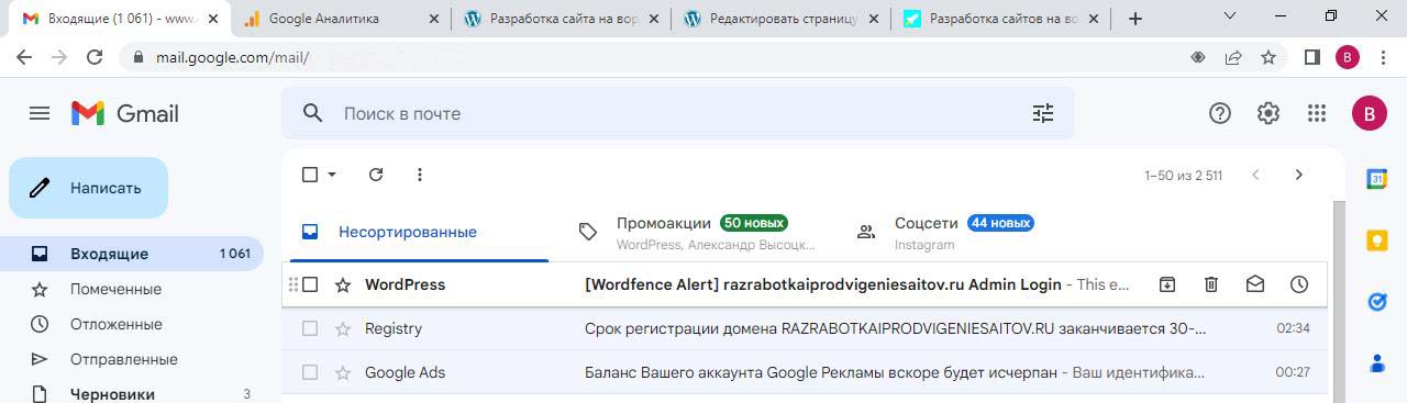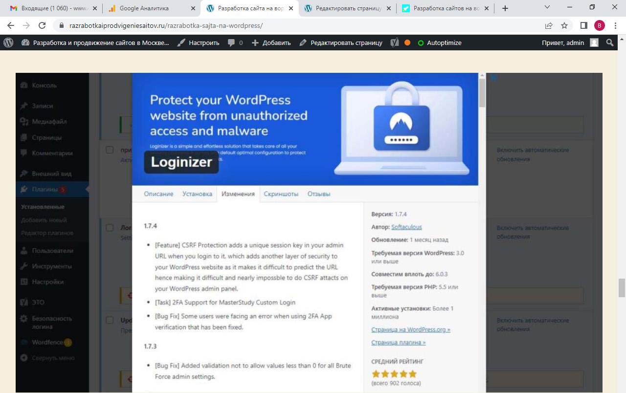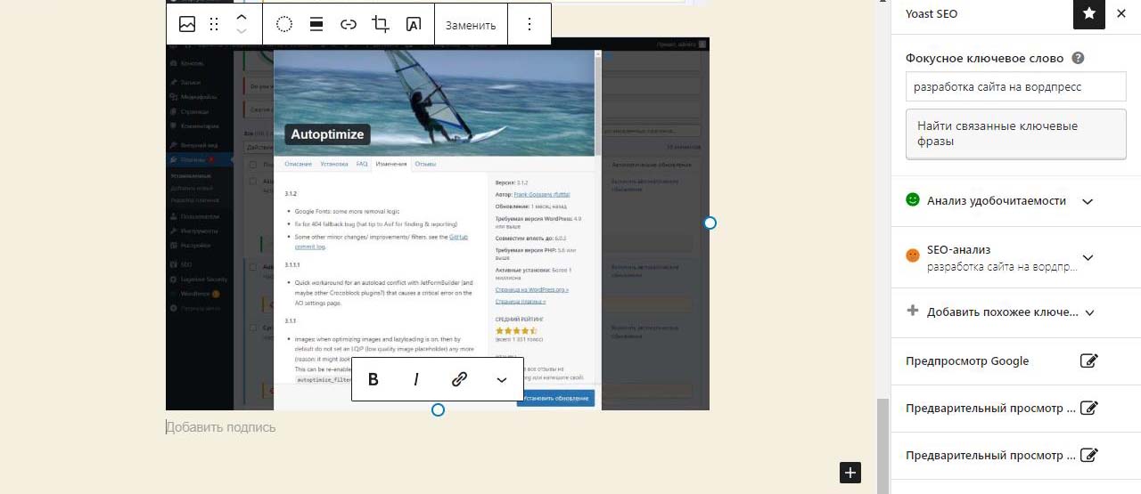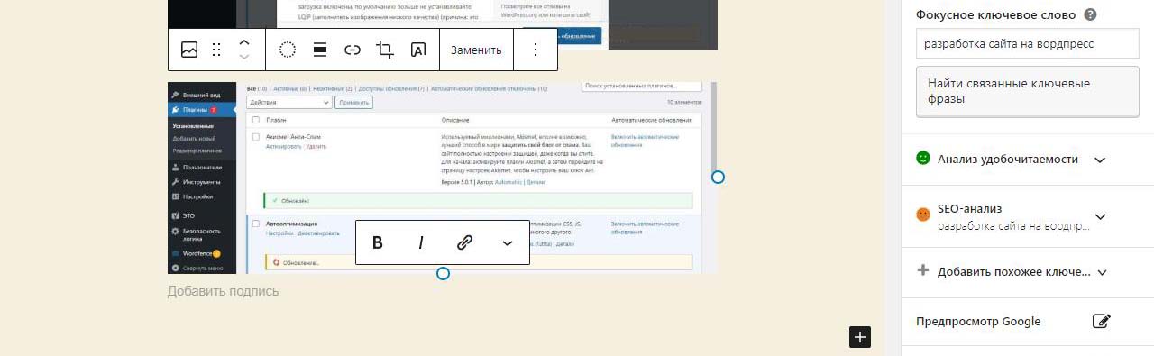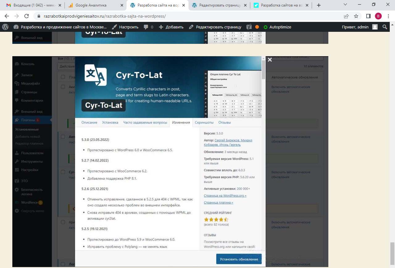 Страницу удобно найти через поиск. Найдем страницу Разработка сайта на вордпресс.