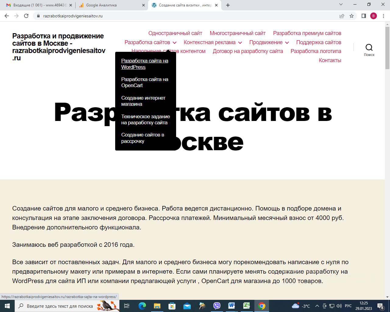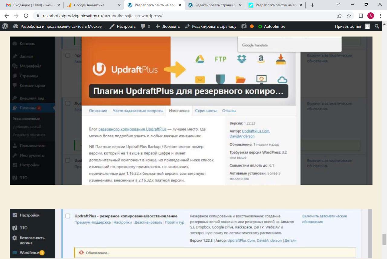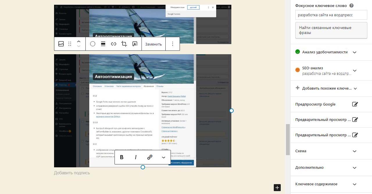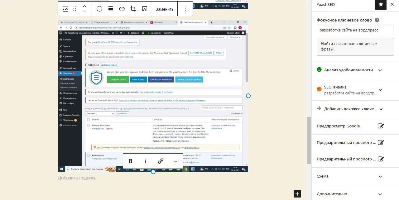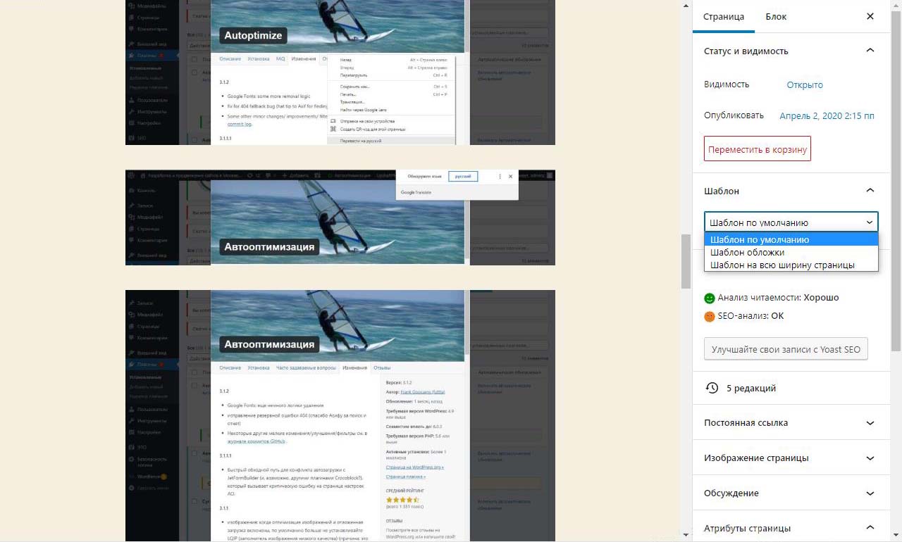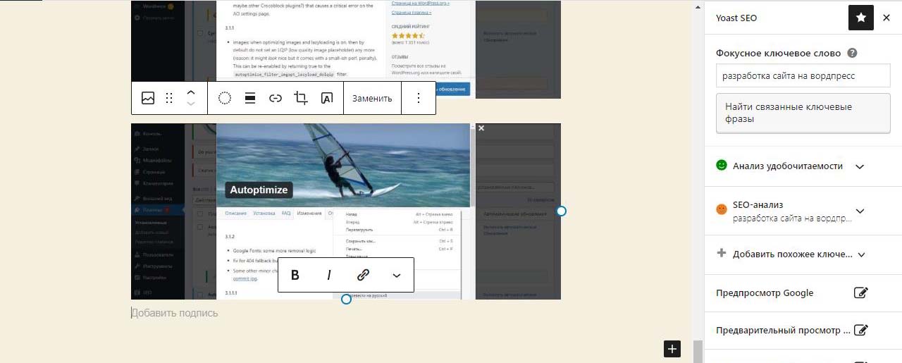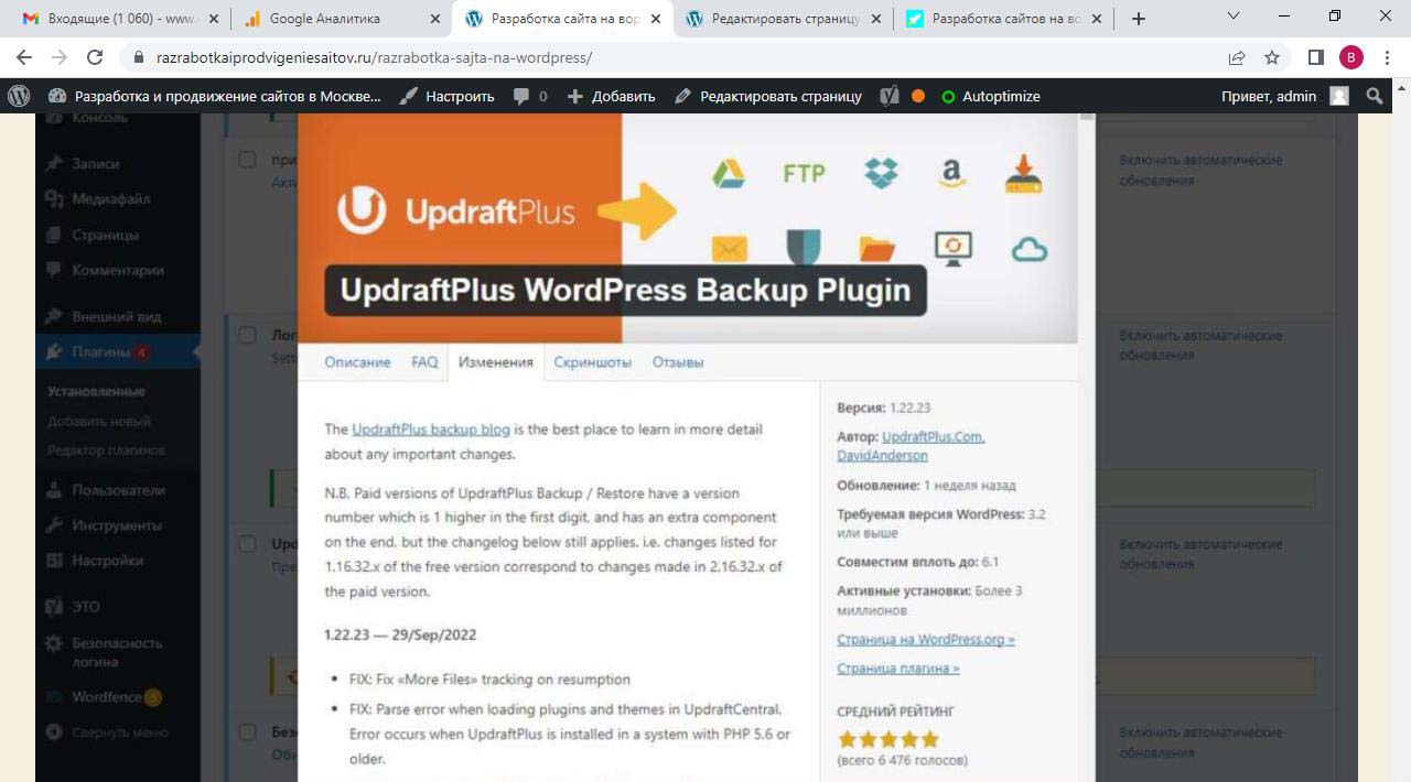 Страницу удобно найти через поиск. Найдем страницу Разработка сайта на вордпресс.