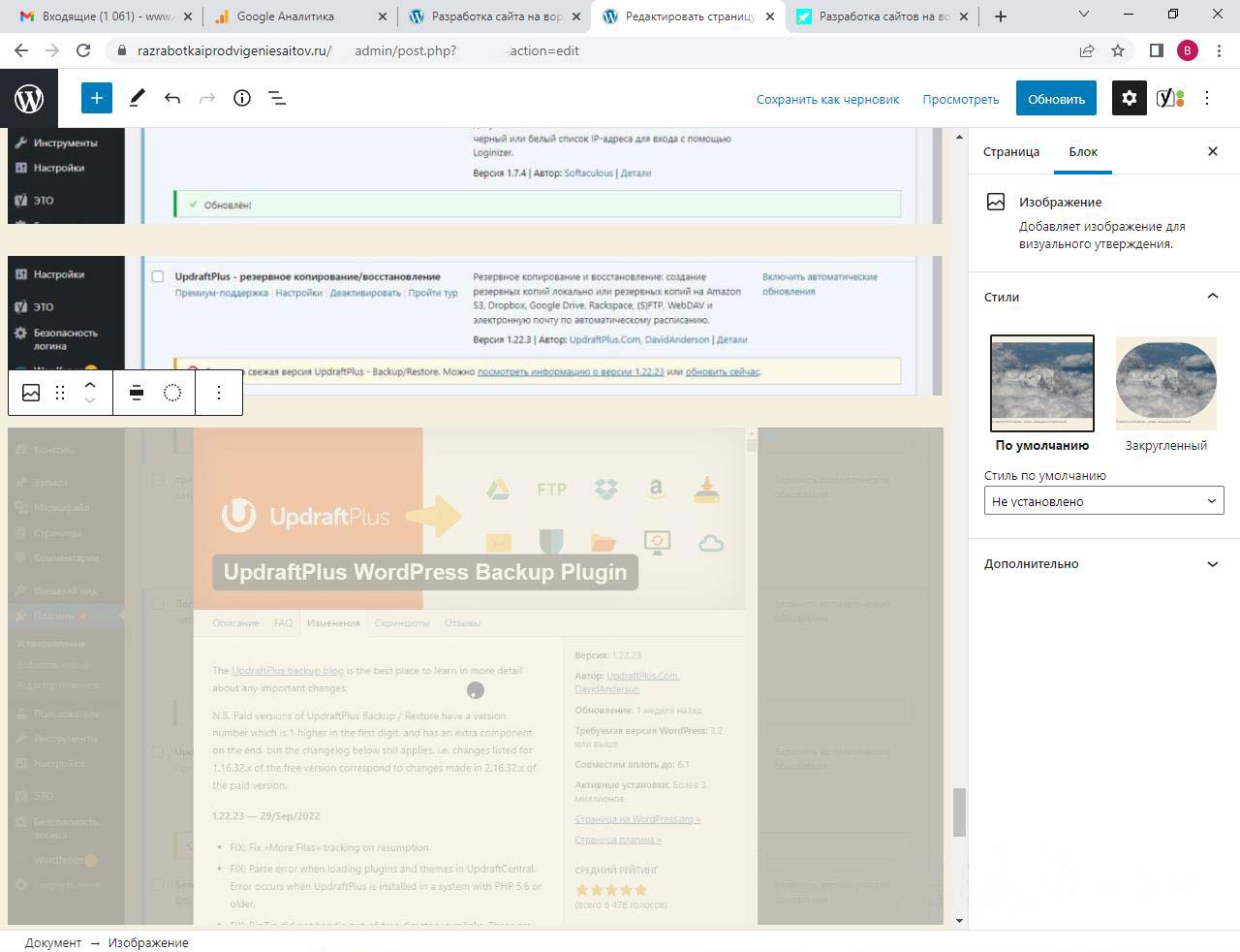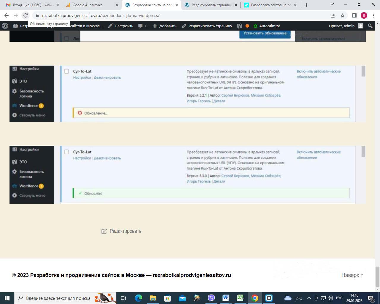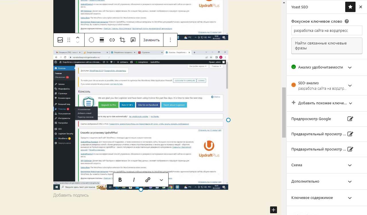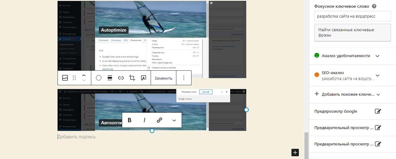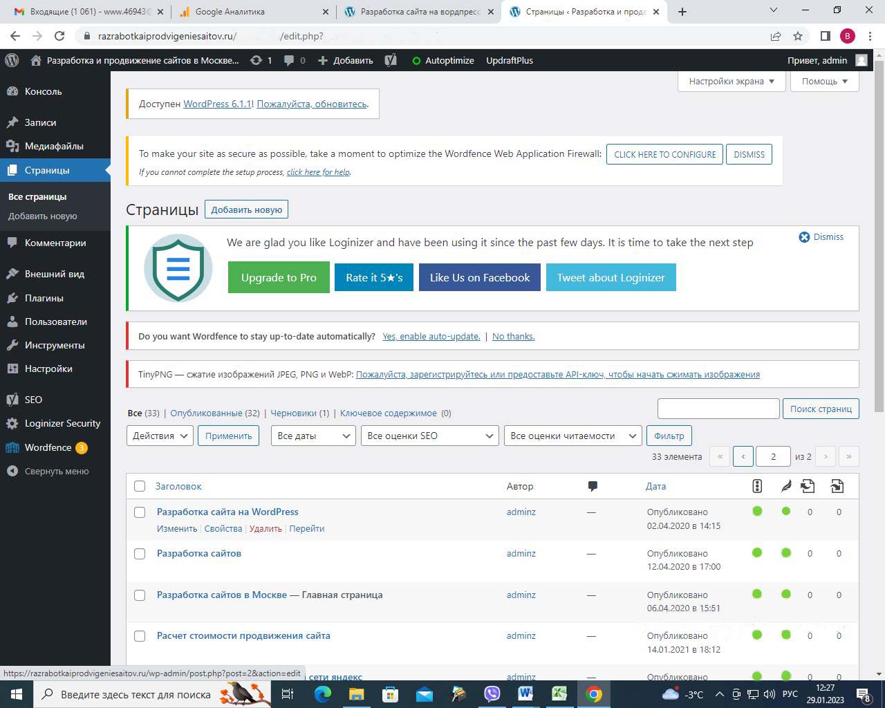 Страницу удобно найти через поиск. Найдем страницу Разработка сайта на вордпресс.