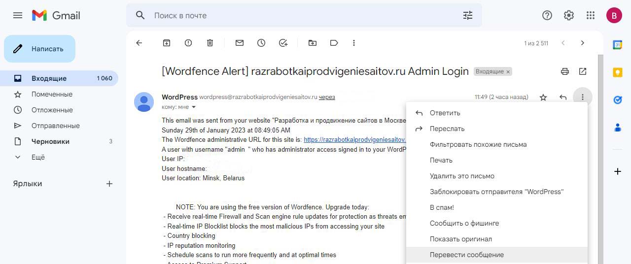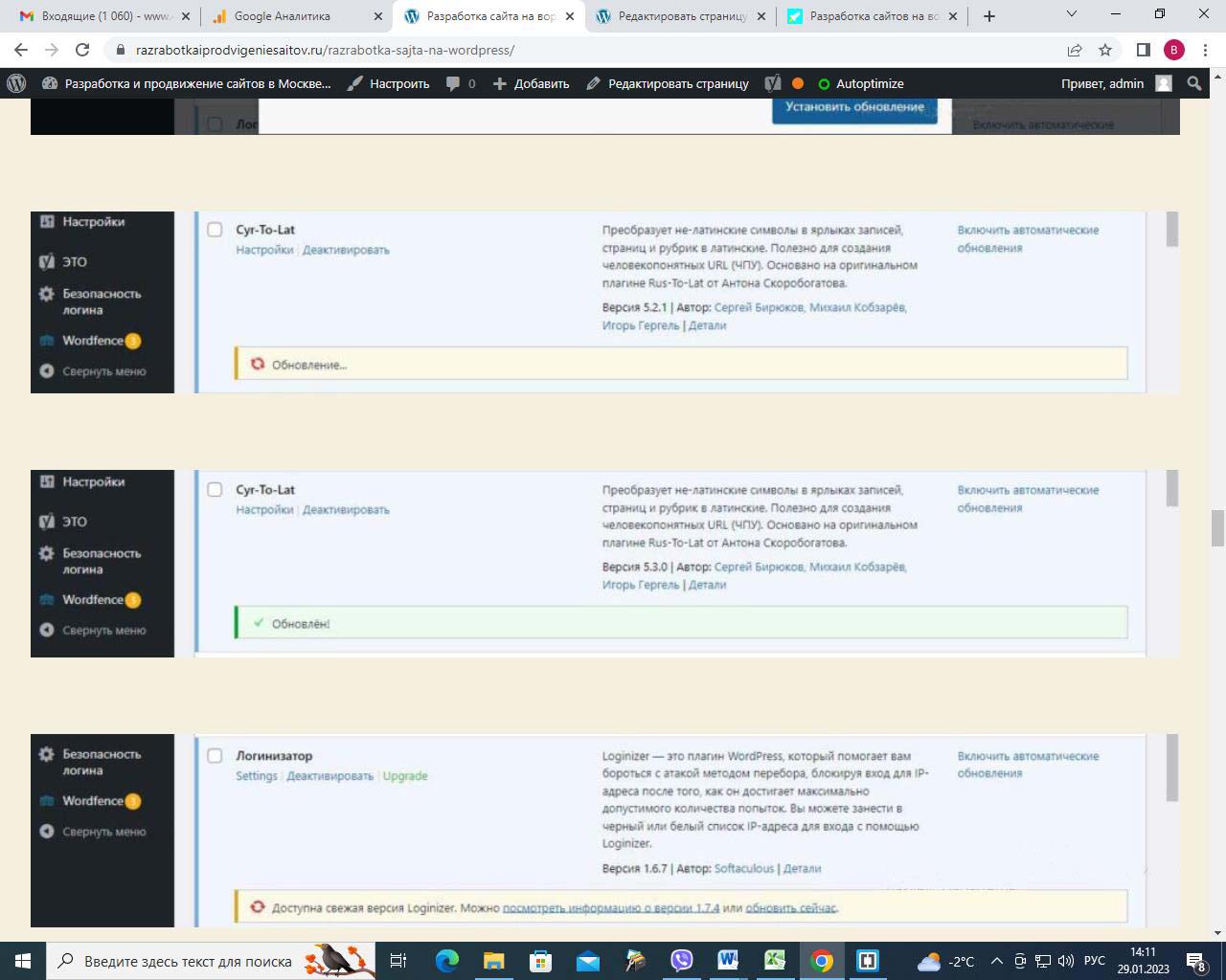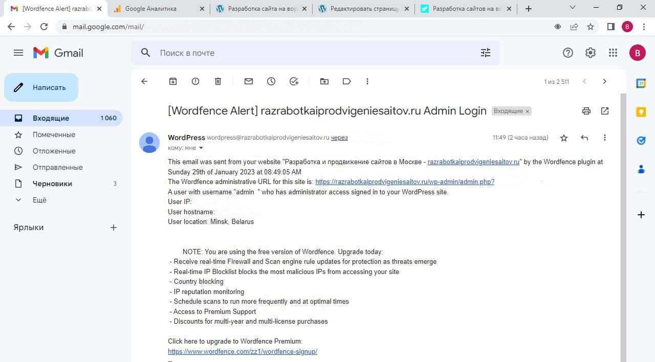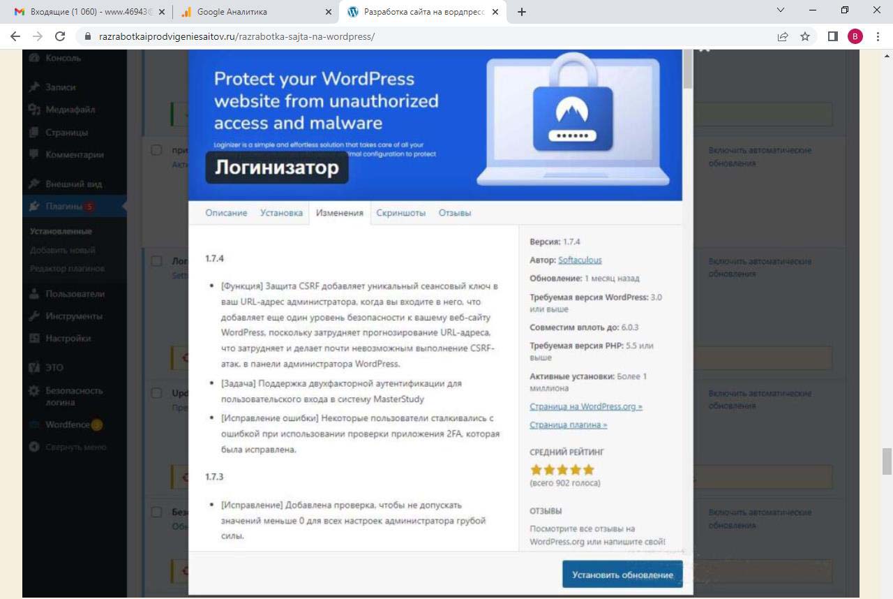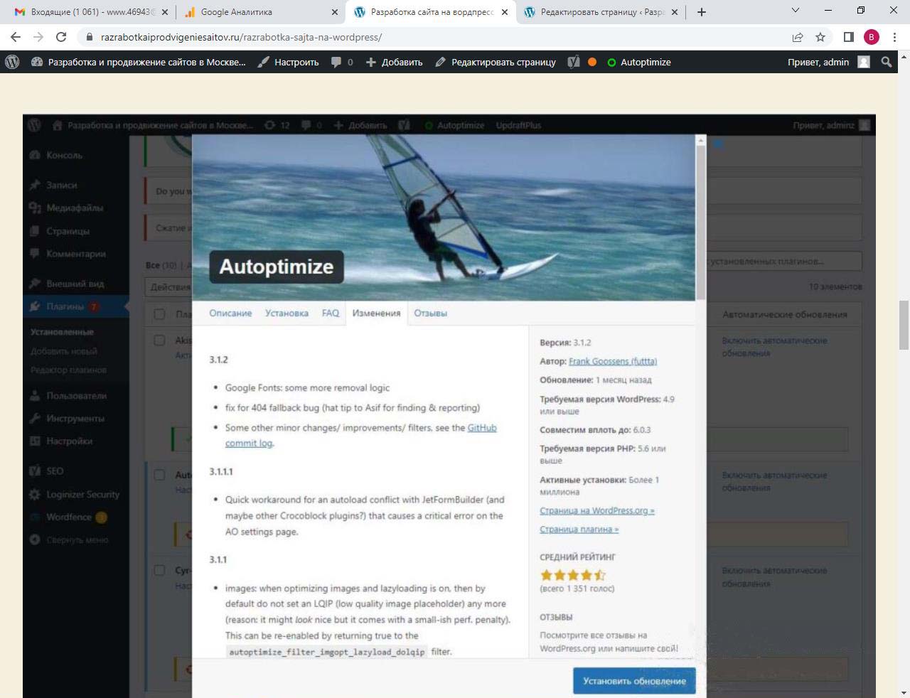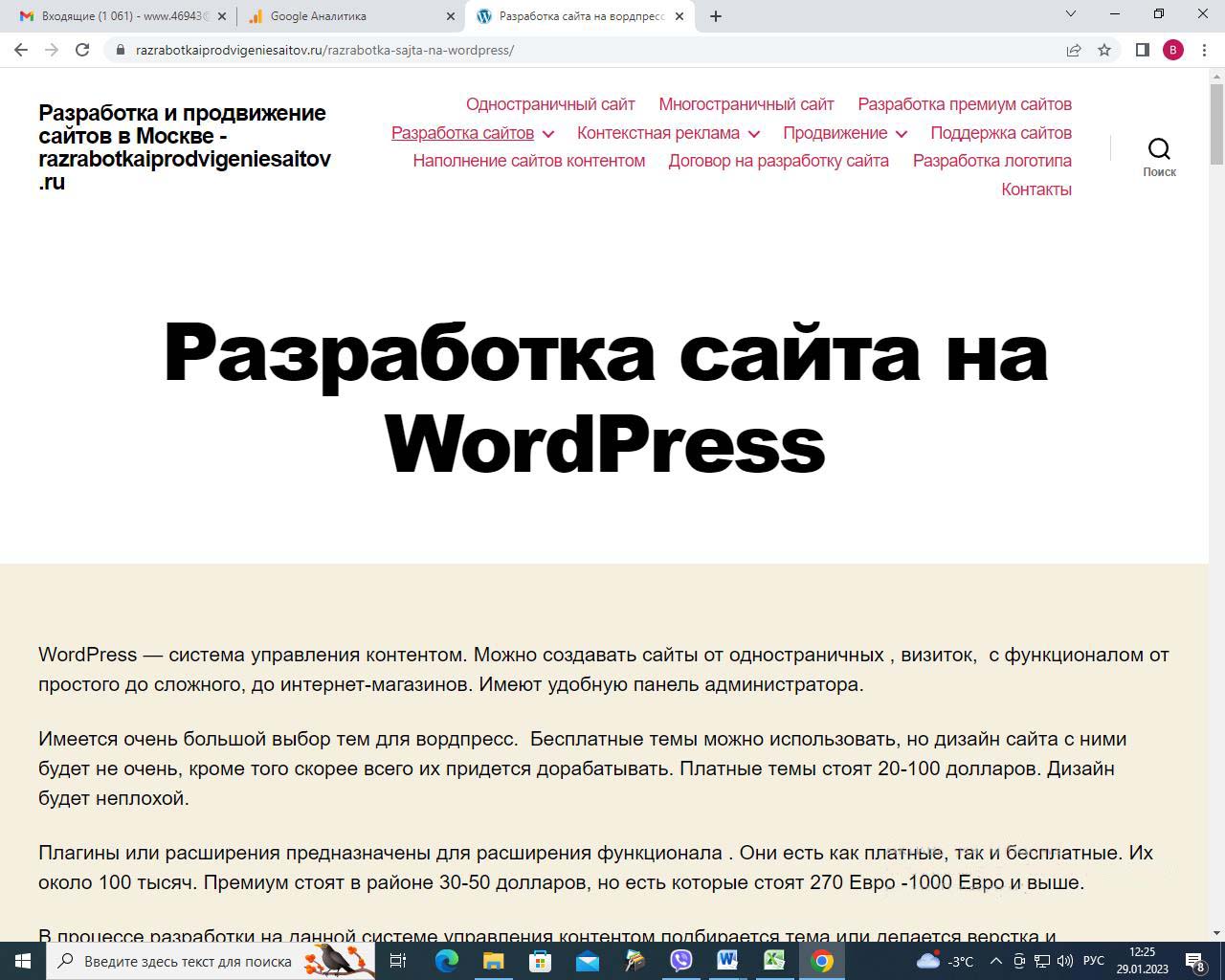 Страницу удобно найти через поиск. Найдем страницу Разработка сайта на вордпресс.