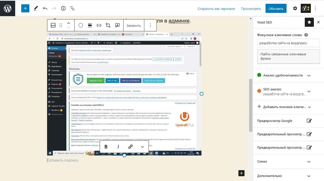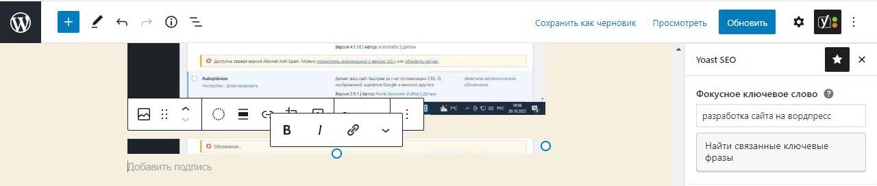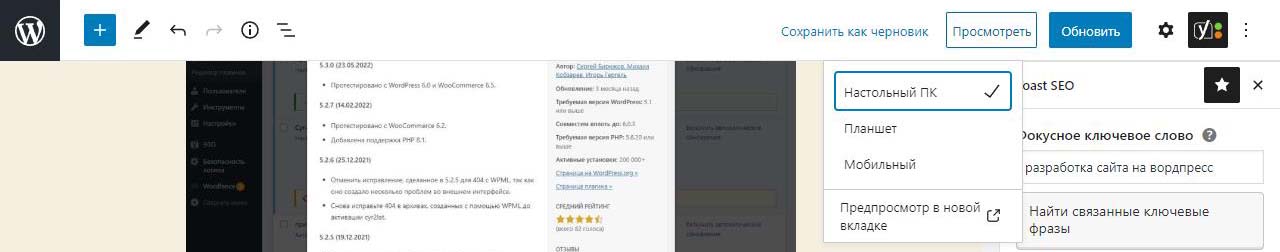 Вверху есть кнопки Сохранить как черновик, просмотреть, обновить.