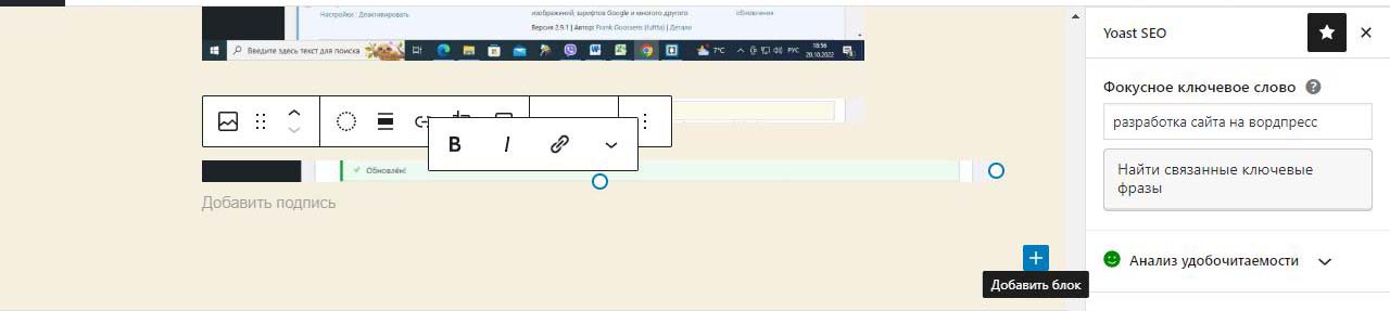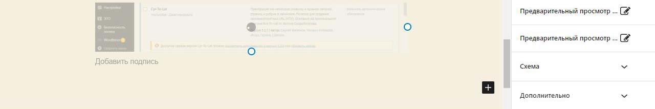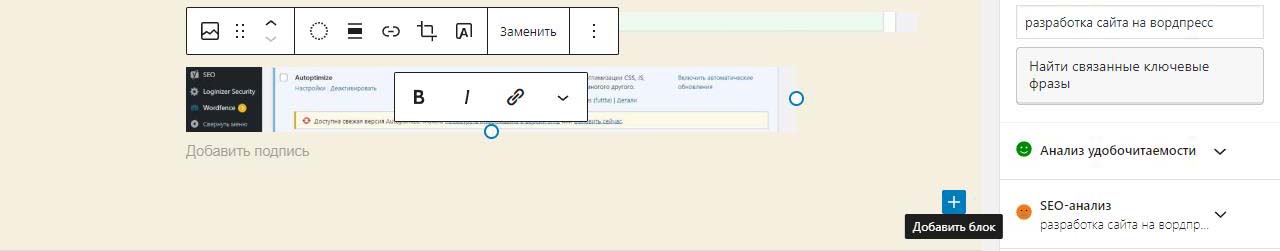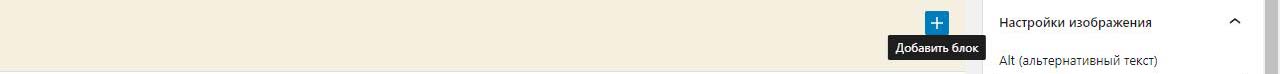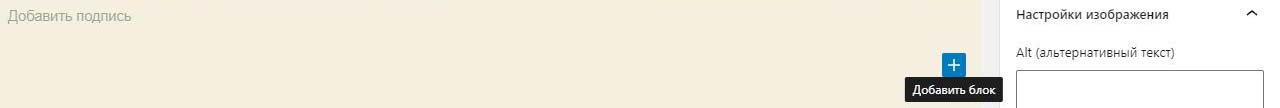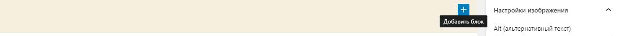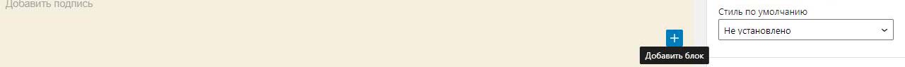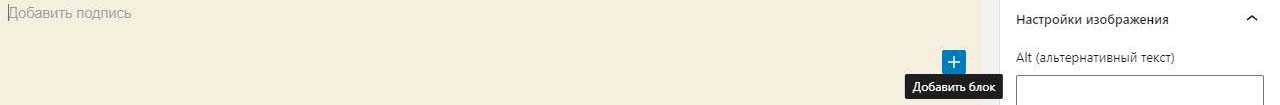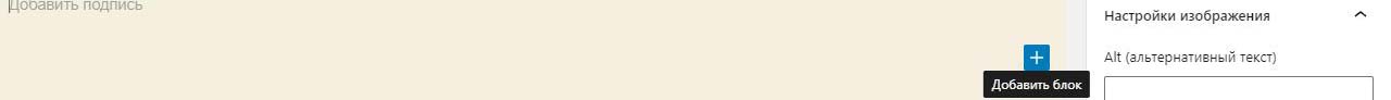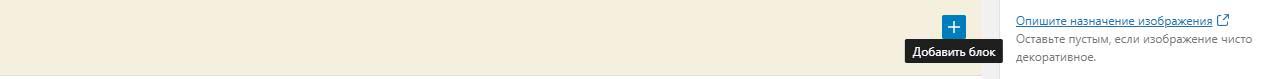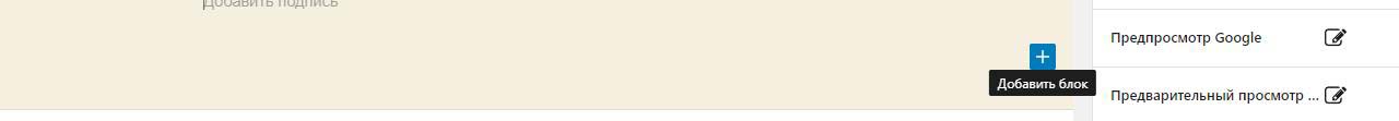 Внизу наводим на +. При этом он меняет цвет с черного на синий и внизу появлется подсказка добавить блок. Нажимаем.