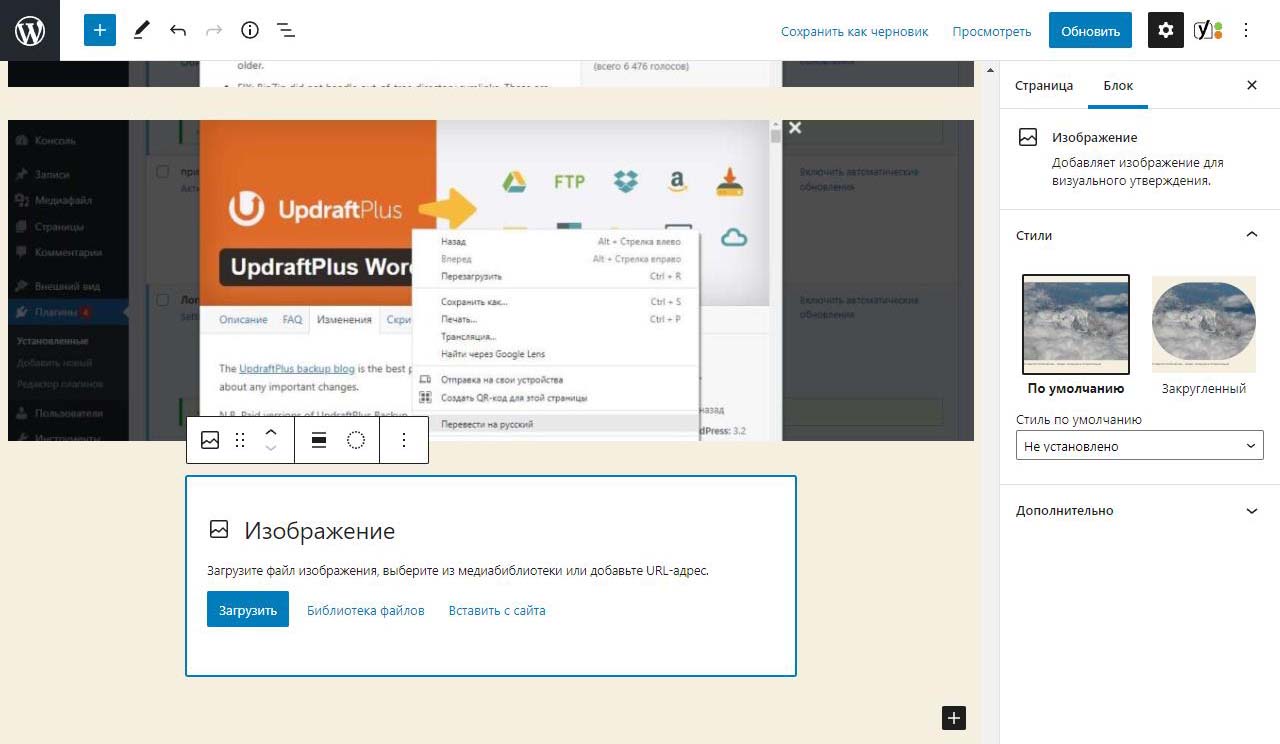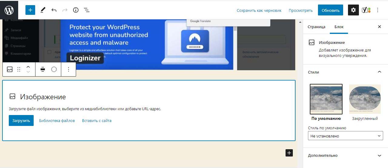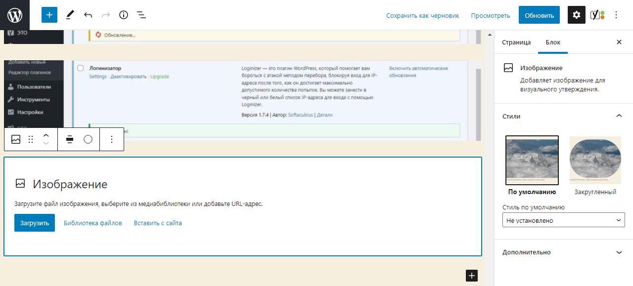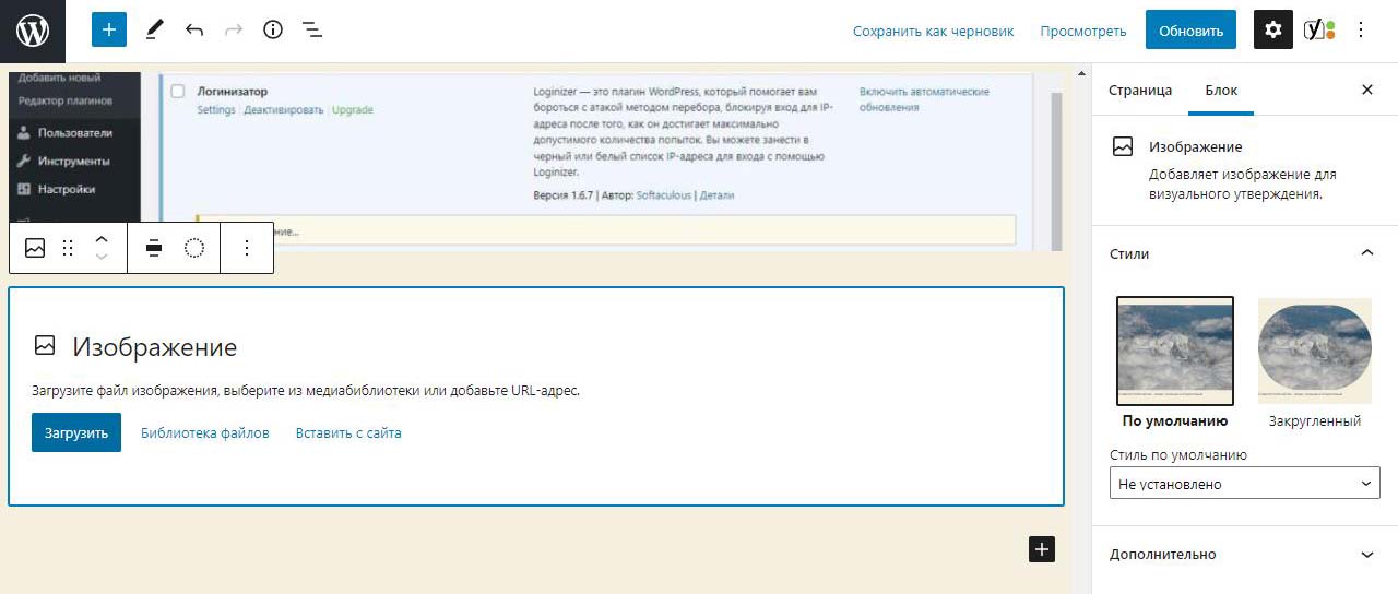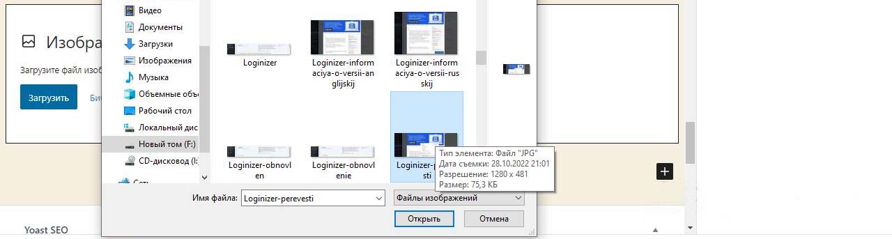 Загрузка изображений в панели администратора Вордпресс