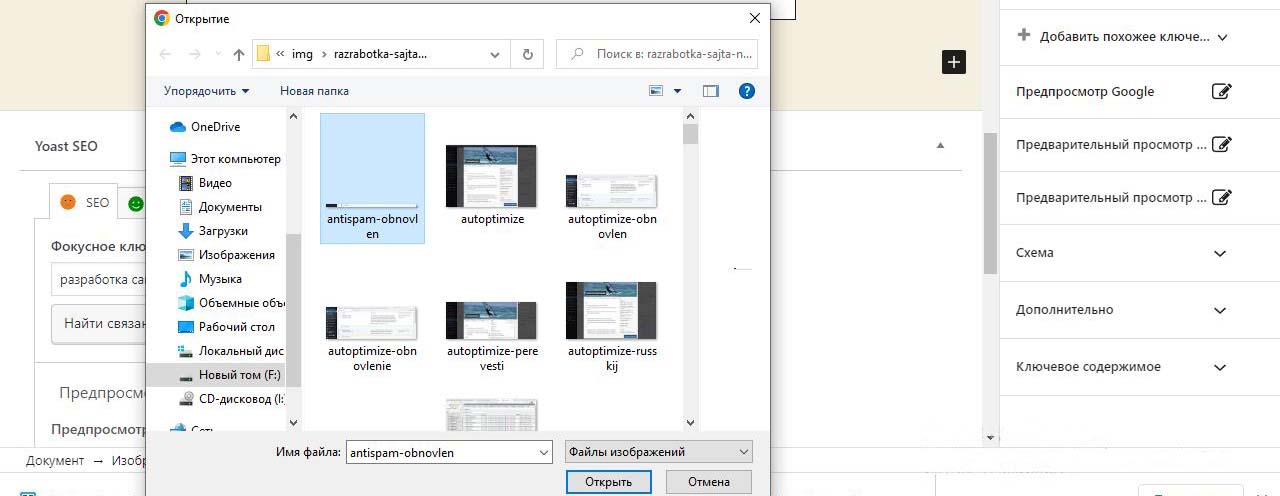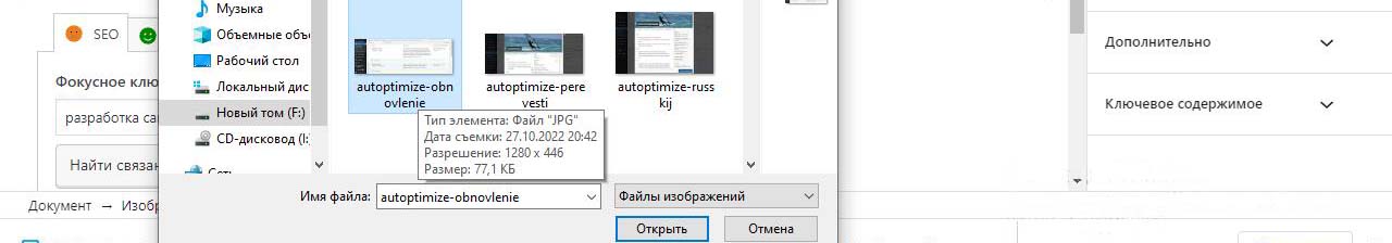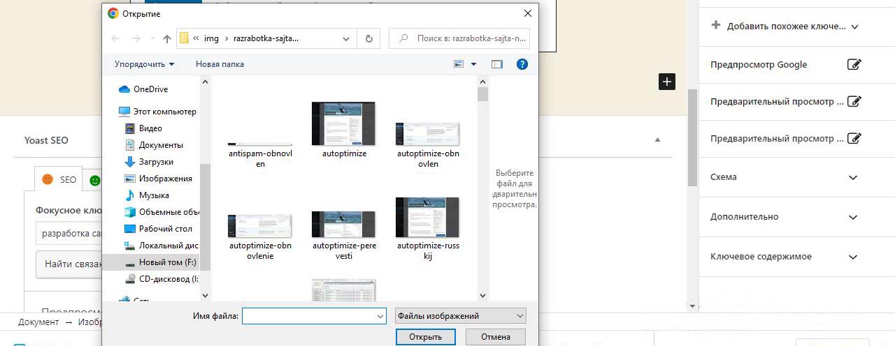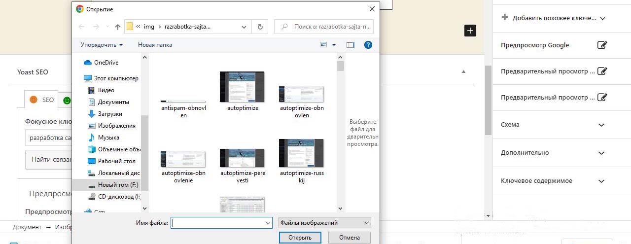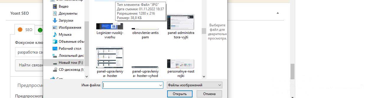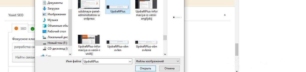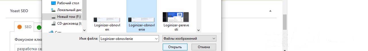 Картинки на сайт Wordpress будем загружать из папки с картинками на компьютере, которые лучше предварительно подготовить.