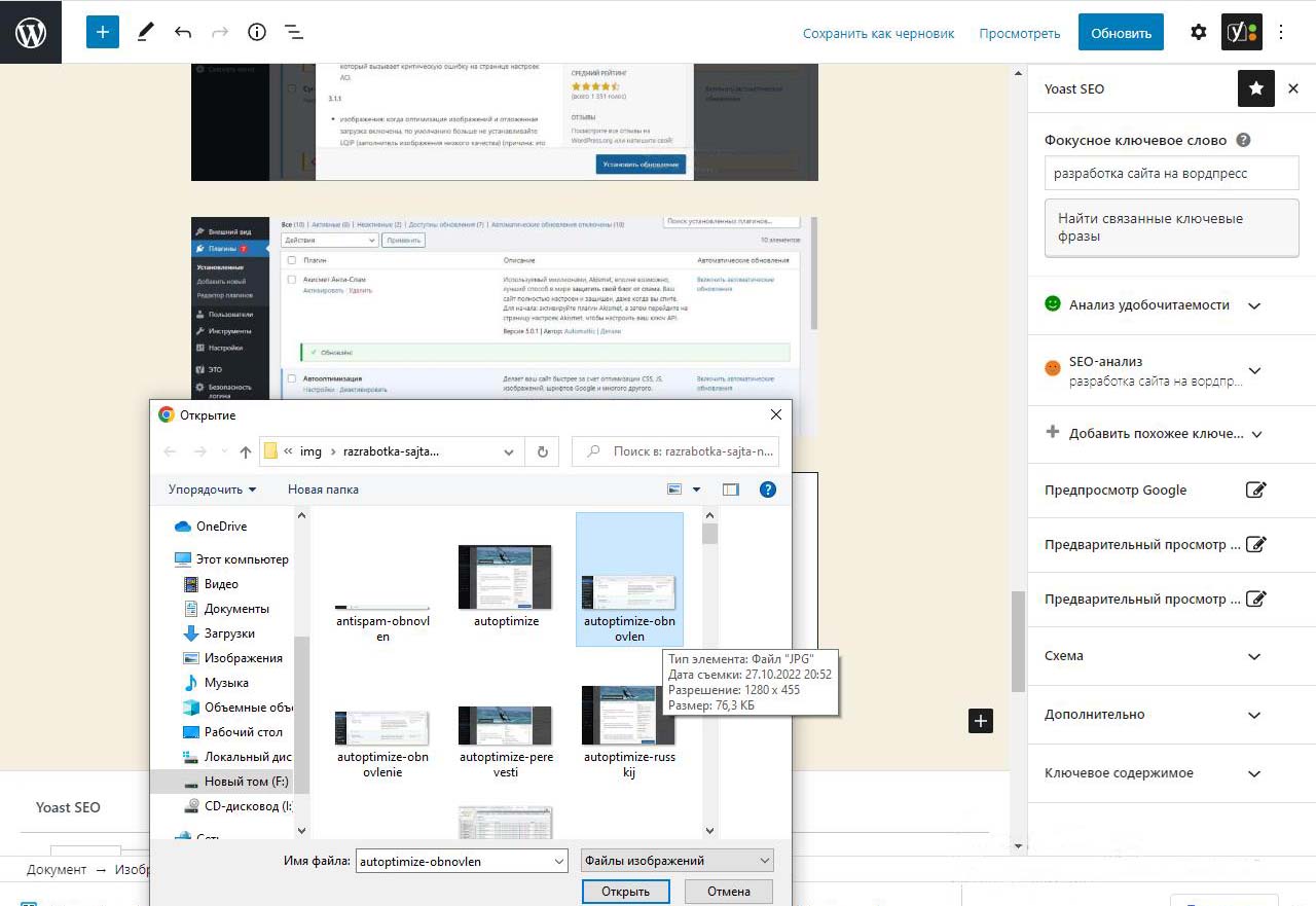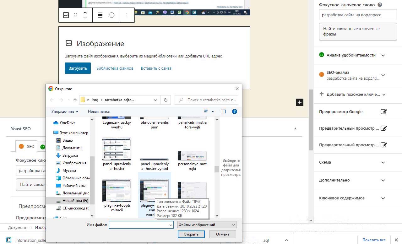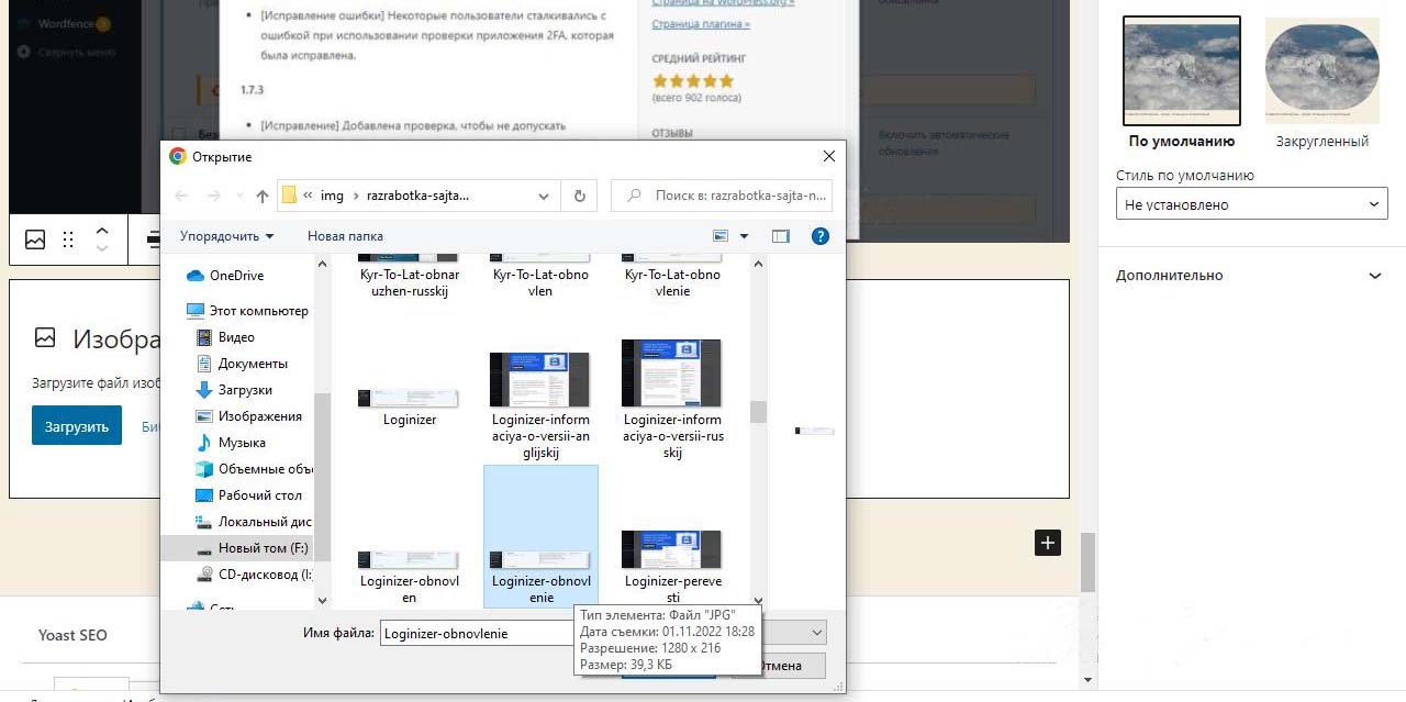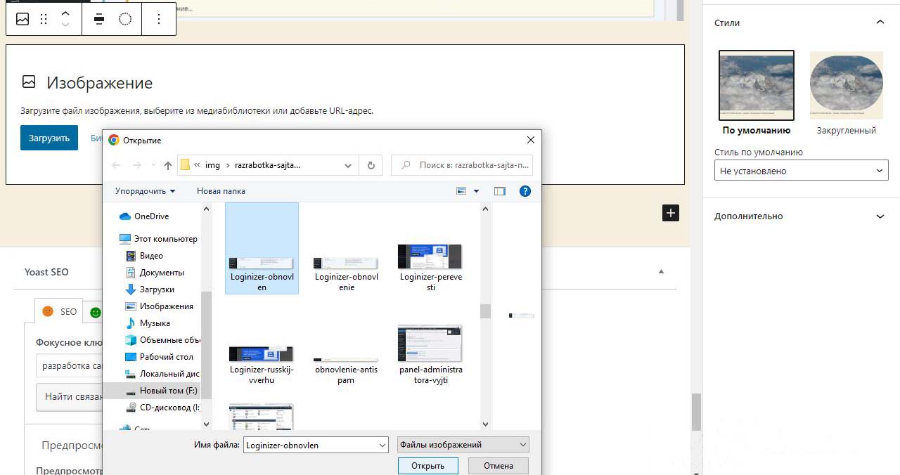Картинки на сайт Wordpress будем загружать из папки с картинками на компьютере, которые лучше предварительно подготовить.